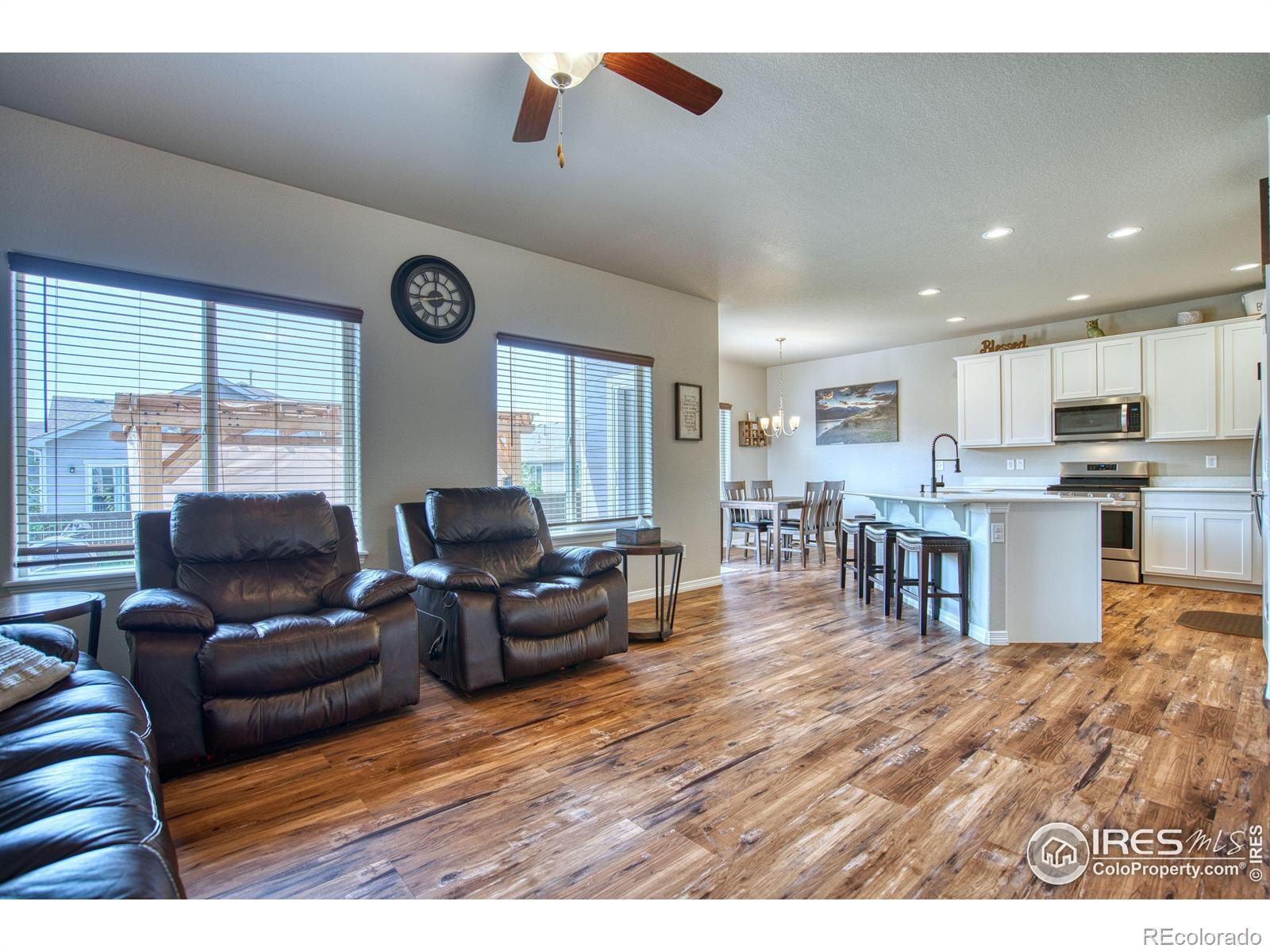 Welcome to this nearly new and beautifully maintained home with 4 bedrooms, 3 bathrooms and a 4-car garage! Includes an additional main level flexible room ideal for an office, formal dining room, or playroom. New LVP flooring on the main level. The kitchen features quartz counters, stainless appliances, gas stove, pantry, and updated sink and faucet. Upstairs enjoy a spacious primary suite with a 5-piece bath, convenient laundry room, and new ceiling fans. The unfinished basement provides excellent storage or future expansion. Outside, the fully fenced yard includes a sprinkler system, garden area, and expanded patio with pergola and lights-perfect for relaxing or entertaining. The insulated and drywalled 4-car garage offers built-in wood shelving and storage for vehicles, tools, or hobbies. Located close to the city trail system, shopping, dining and more. Don't miss this opportunity to make it yours!