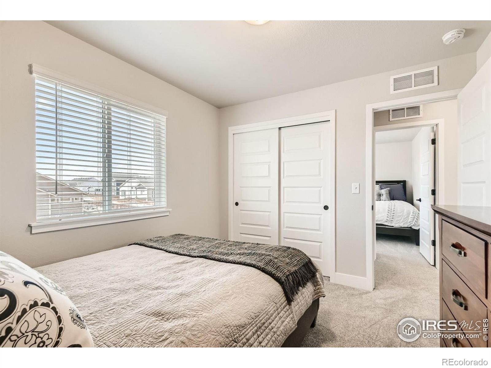 Located in the peaceful Sunfield community with no HOA, this thoughtfully designed two-story home comes complete with full yard landscaping, fencing, and a finished basement, making it ready to enjoy from day one. Start your mornings with coffee on the covered front porch, then relax or entertain on the covered back patio that's perfect for any season. Inside, the main level flows naturally between the great room, dining area, and kitchen, creating a comfortable setting for both daily life and get-togethers. The kitchen features warm wood cabinetry, light quartz countertops, a gas range, and stainless-steel appliances. Extended buffet cabinets add valuable storage and counter space, making the room as functional as it is inviting. Upstairs, the laundry is conveniently located to keep daily chores simple and efficient. The primary suite feels like a private retreat with vaulted ceilings, a large walk-in closet, and a beautifully finished five-piece bath complete with a freestanding soaking tub, custom-tiled shower, and dual vanities. Two additional bedrooms and a full bath complete the upper level. The finished basement extends the home's livability with a recreation room, full bath, and additional bedroom, ideal for guests, hobbies, or family movie nights. With quality craftsmanship, modern finishes, and comfortable design throughout, this home captures the best of Colorado living.