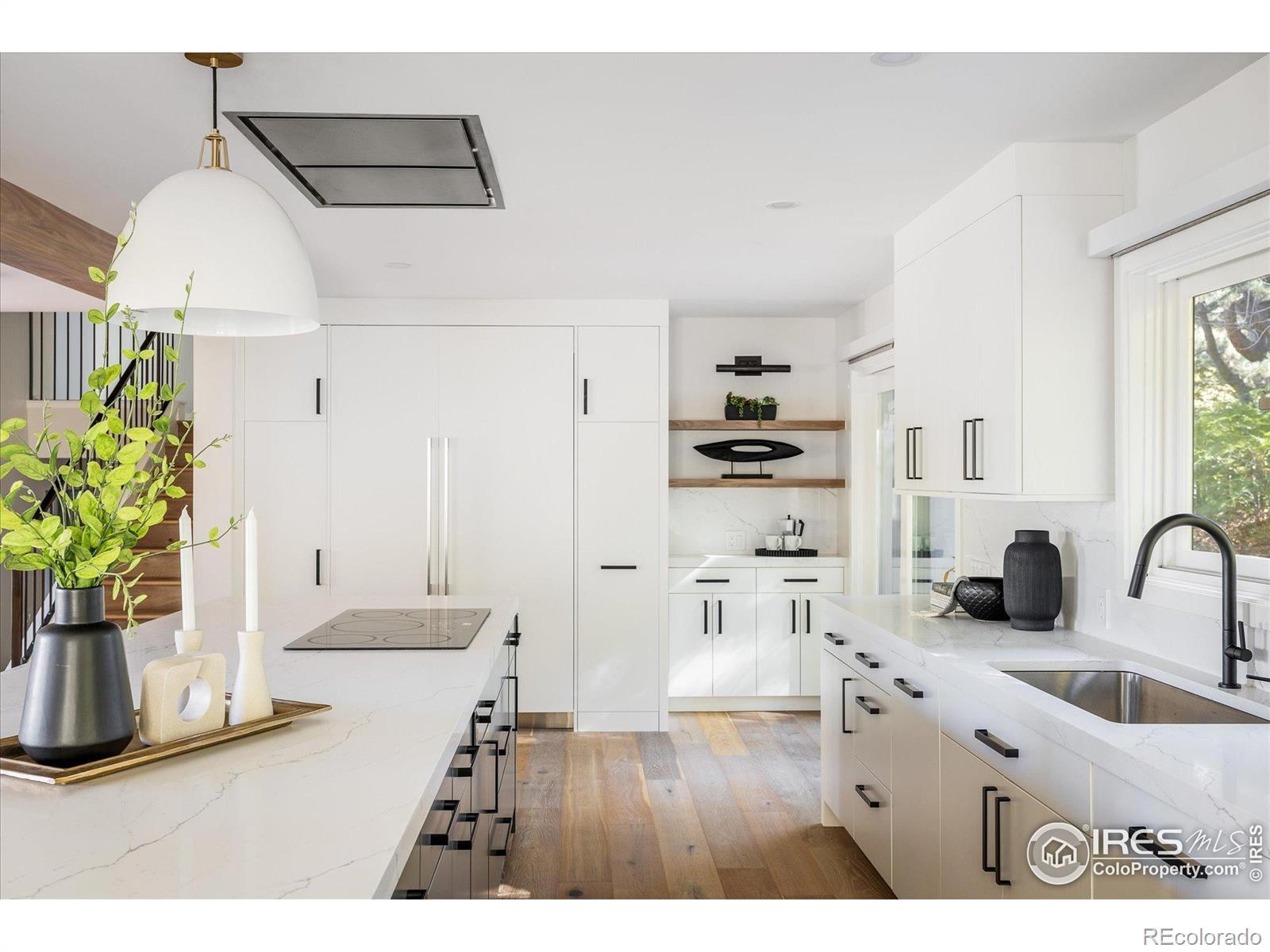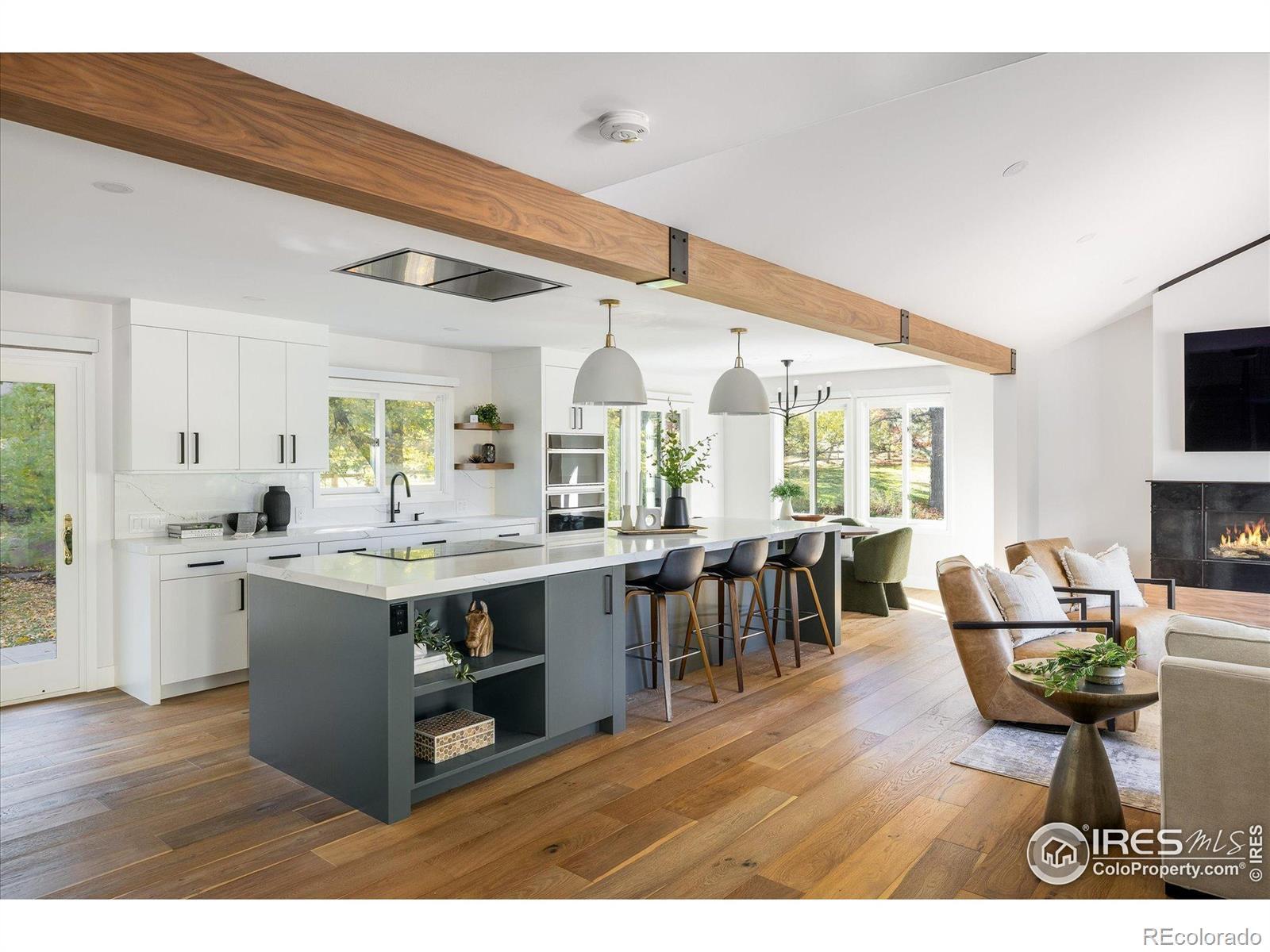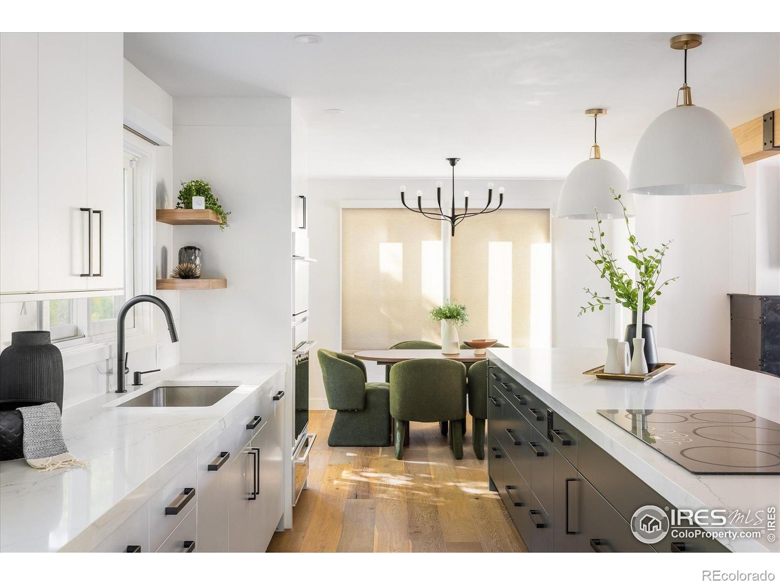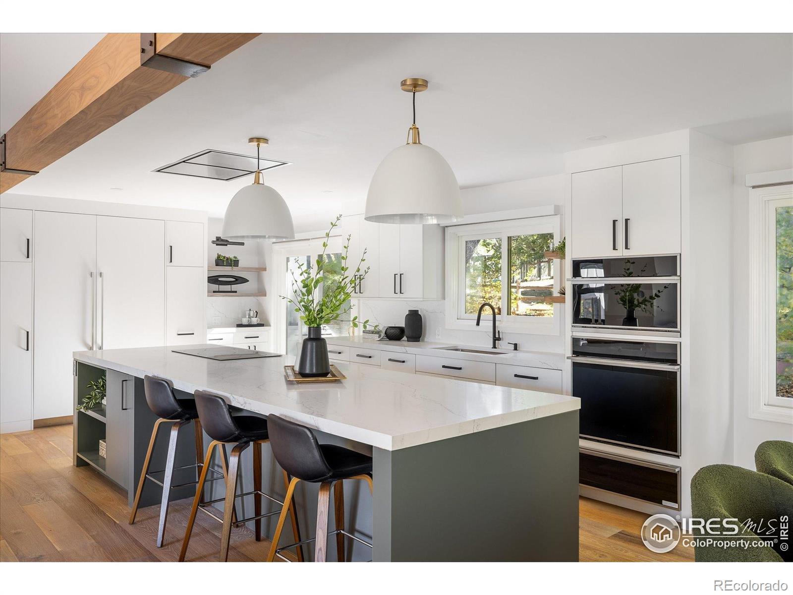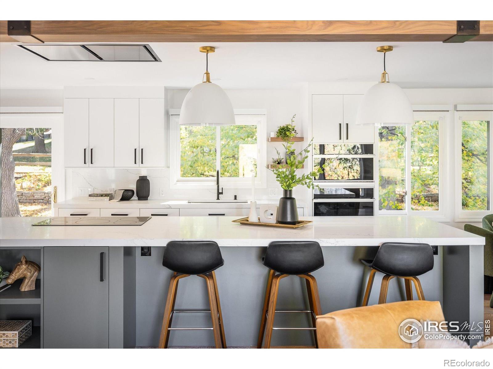 Experience the perfect blend of luxury, privacy, and natural beauty in this fully remodeled Devil's Thumb home. Perched on an oversized 0.37-acre cul-de-sac lot with park-like grounds, opulent windows frame breathtaking views of the Flatirons. Just steps from hiking trails and top-rated schools, this location offers a serene retreat while keeping Boulder's best amenities within easy reach. Inside, vaulted ceilings and abundant natural light highlight a thoughtful, flowing layout with roominess and seamless open-concept living, dining, and kitchen areas. A massive fireplace anchors the living space, creating a warm focal point for gatherings. The upper level features a light filled primary bedroom with ensuite bath, plus 2 additional bedrooms with a shared full bath, while the lower level offers a spacious family room, additional bedroom/study, full bath, large mudroom entry via garage, laundry room - plus ample storage in the unfinished basement and oversized garage. With over $850,000 in custom renovations, this home effortlessly blends modern luxury with timeless comfort.