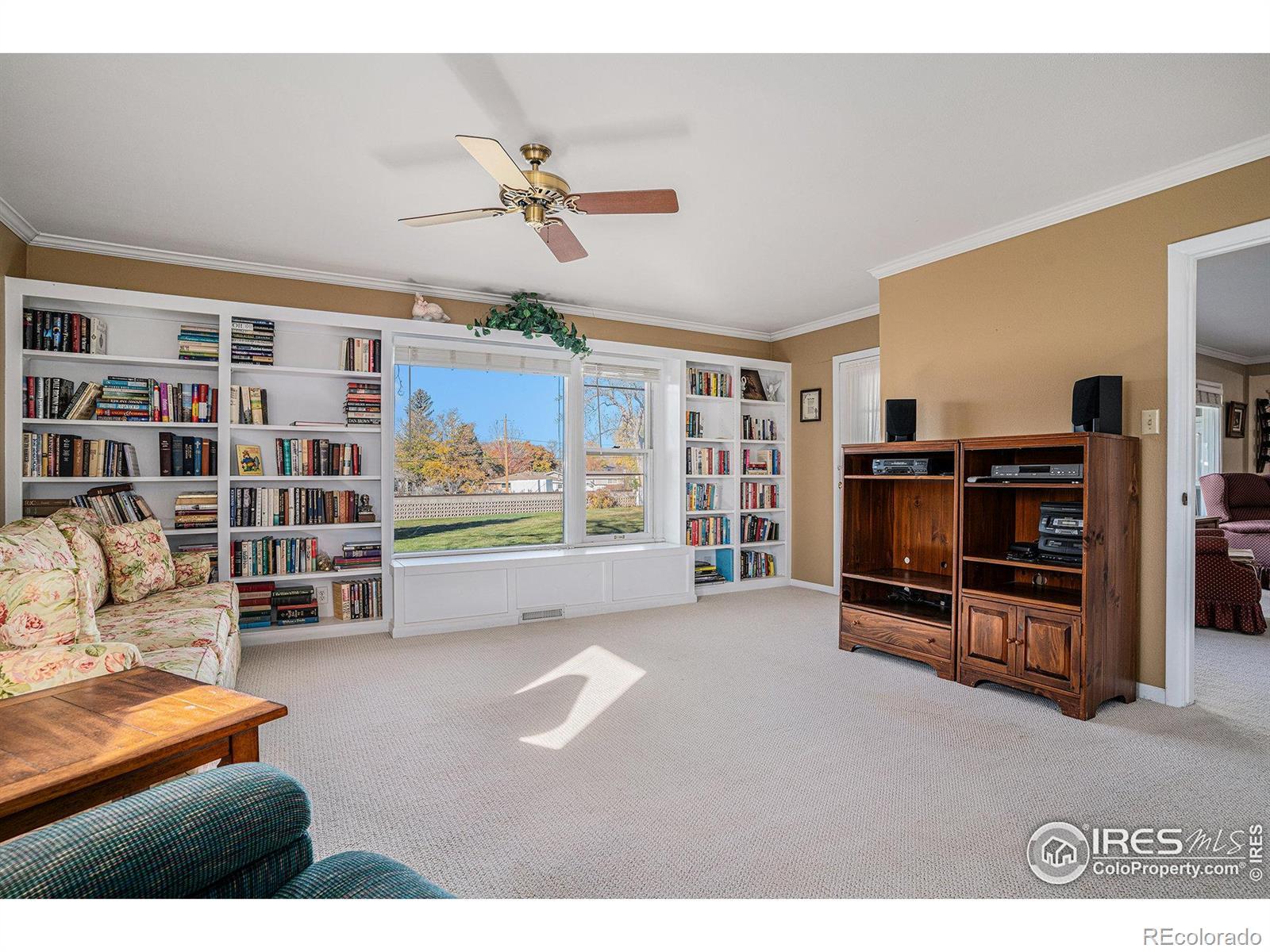 Picture yourself in this HOME FOR THE HOLIDAYS! This well-maintained home is located only minutes to Lake Loveland. 3 Br 3 Bath Open Concept Ranch with an abundance of natural light. Expansive living room with built in bookshelves. Great for entertaining or just curl up with a good book. The family room has an inviting electric gas stove for those cozy evenings plus faces west with beautiful mountain views. Primary bedroom has a wonderful sitting area with more built-in bookshelves. Mud room/ Laundry just off the garage. The oversized 2-stall garage has cabinets for all your tool storage as well as its own half bath. Amazing, fenced backyard great for entertaining with a covered patio and more cabinets with a wood burning stove. Back-alley access to store your toys. Large 13x29 shop insulated and heated for your home projects. Fresh exterior paint. All of this on 0.41 lot with NO HOA OR METRO So many unique features this home is a must see! Just blocks away from 29th St and all your shopping needs.