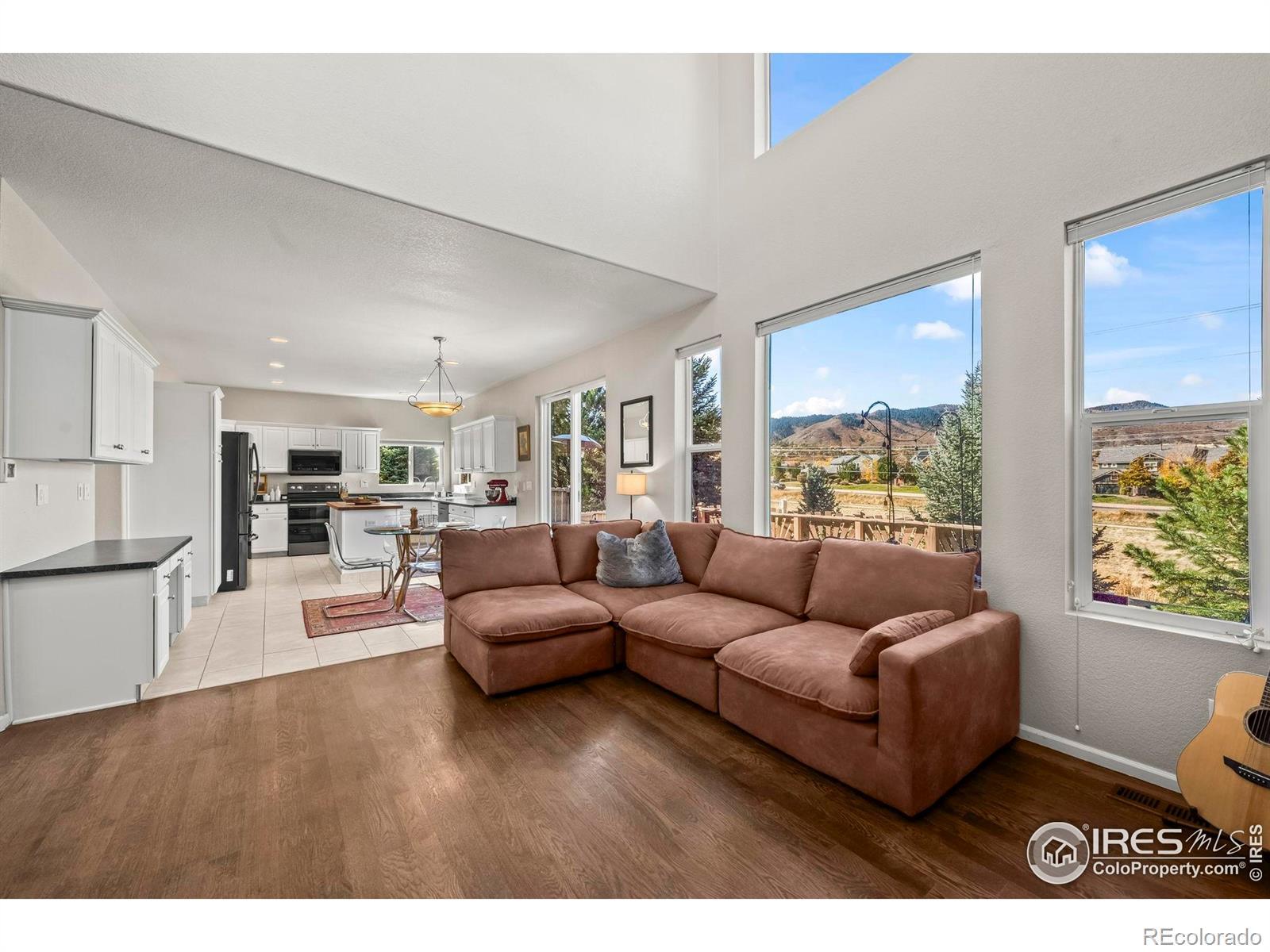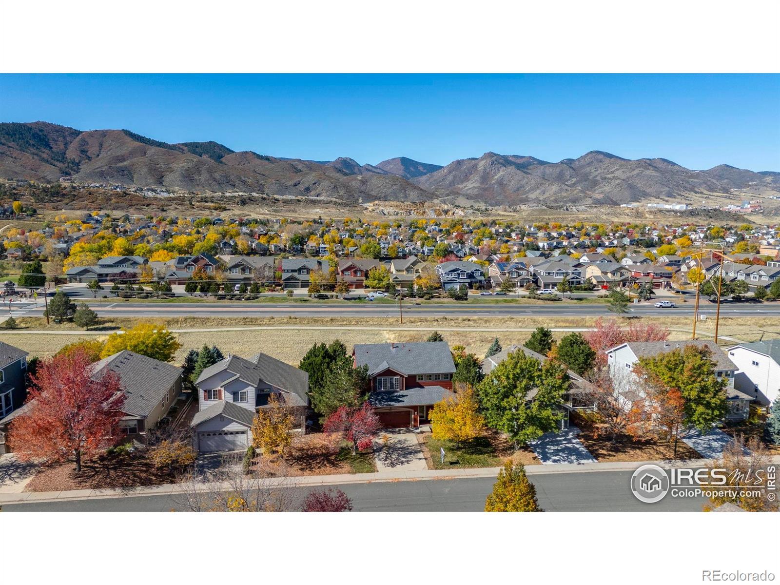Enjoy breathtaking, unobstructed MOUNTAIN VIEWS from this beautifully updated home in Roxborough Village. Soaring vaulted ceilings, tall windows, and an open floor plan fill the home with natural light and frame the incredible backdrop of Colorado's Front Range. The main-level living room features a gas fireplace, custom built-ins, and expansive windows showcasing the mountain views, seamlessly connecting to the updated kitchen with newer stainless steel appliances, a kitchen island, and ample counter and storage space, including a large pantry. From the kitchen, step out to the spacious west-facing deck to take in the sunset over the mountains and enjoy true indoor/outdoor living. The front room-currently used as an office-offers flexible space and would make an ideal formal dining room. The main level also includes a powder bath, a large laundry room, and an attached two-car garage. Upstairs, the primary suite captures stunning mountain views and features a en suite bath and large walk-in closet. Two additional bedrooms and a full bath complete the upper level. Ideally located near open space and scenic trails, including Crystal Lake, Roxborough State Park, and the Arrowhead Golf Course, this home offers the best of Colorado living. Shops, restaurants, and groceries are all within walking distance. Don't miss this opportunity to own a home with unbeatable views and an incredible lifestyle!