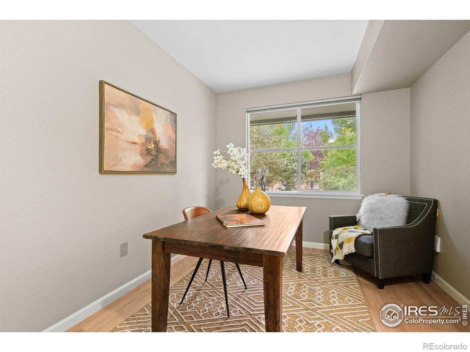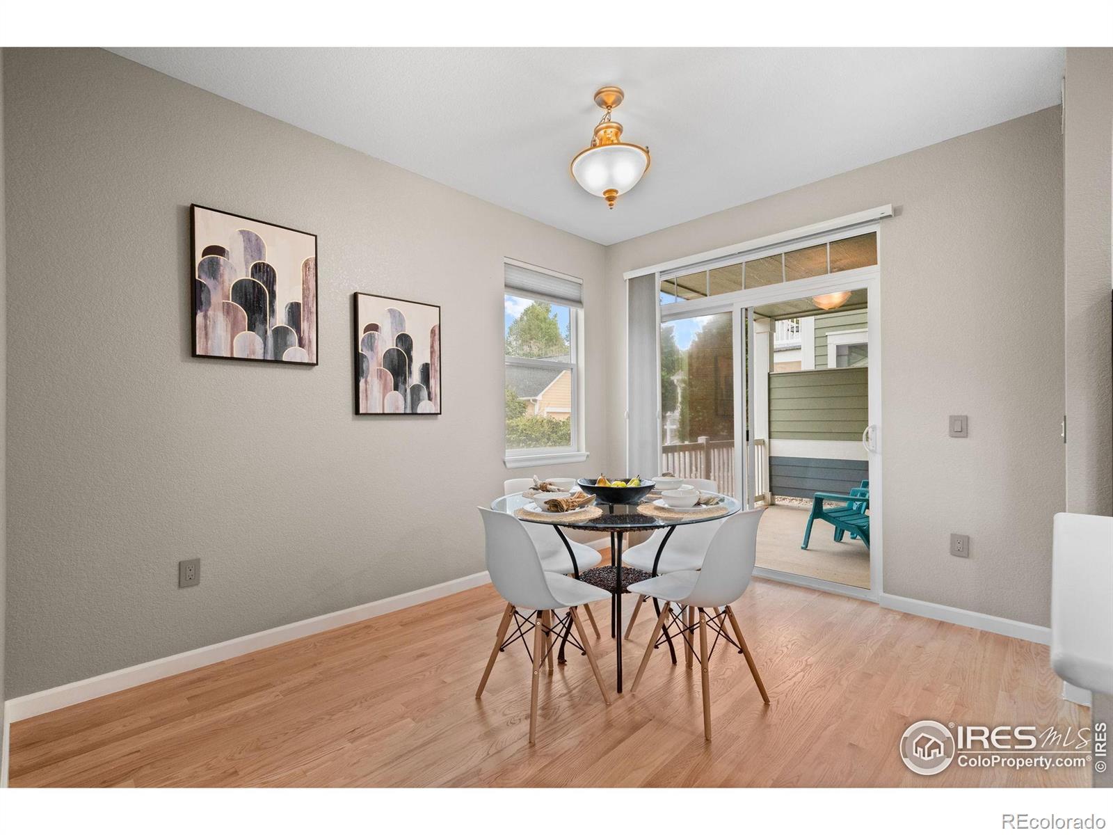 LOCATED IN SOUTHWEST LONGMONT, EASY ACCESS TO BOULDER. Sunny ground-floor corner unit with excellent natural light from 3 of the four walls. Not a stair or a step in this freshly updated 3-bedroom and 2-bath condo. The updates include modern white kitchen cabinets and newly refinished hardwood floors throughout; no "lived-in" carpeting to deal with. Open and easy to entertain between the kitchen, dining, and living areas. The master bedroom is spacious, with ample closet space, and is light and bright with a crawl space in the closet. The master bath features a tub/shower surround and a large vanity with ample storage space. The second bedroom has a large walk-in closet, and with lots of natural light, the third bedroom can also be used as a home office for the work-from-home professional. The main bath also features a tub/shower surround and a spacious vanity. The detached single-car garage is just steps away from the unit and includes shelving for additional storage-located in the highly desired St. Vrain Valley School District. The unit also includes an ample, fenced outdoor space, landscaped with low maintenance in mind, that provides a nice, private place to entertain in warmer months. Close to shopping at Village of the Peaks, Whole Foods Market, and Target. This lovely home is ready to move in and enjoy!