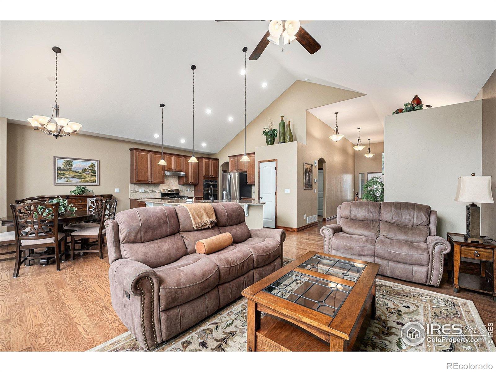 Welcome Home!!! This stunning 6-bedroom, 3.5-bath ranch home located in an established Johnstown neighborhood with NO METRO TAX!! Offering a spacious open floor plan and thoughtful upgrades throughout, this home perfectly combines comfort, function, and style. Step inside to find bright, open living spaces ideal for both everyday living and entertaining. The kitchen features ample cabinetry, modern finishes, and a large island overlooking the dining and living areas. The primary suite serves as your private retreat, complete with a luxurious 5-piece bath and generous walk-in closet. Downstairs, the beautifully finished basement includes a full wet bar, perfect for hosting guests or enjoying a cozy movie night. With six bedrooms, there's plenty of flexibility for home offices, hobbies, or guest rooms. Outside, the meticulously landscaped yard is designed for enjoyment and ease of care. You'll love the two raised garden beds, ideal for growing your own vegetables or flowers, and two private outdoor spaces perfect for enjoying Colorado's seasons.Located close to shopping, dinning, and with easy access to I-25, this home offers both convenience and community charm. Don't miss your chance to own this beautifully maintained home in one of Johnstown's most desirable neighborhoods - where space, upgrades, and location come together perfectly!