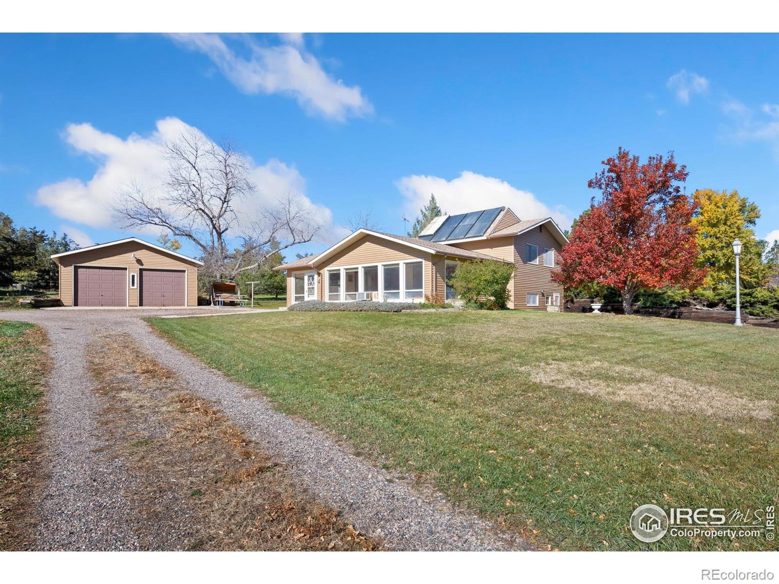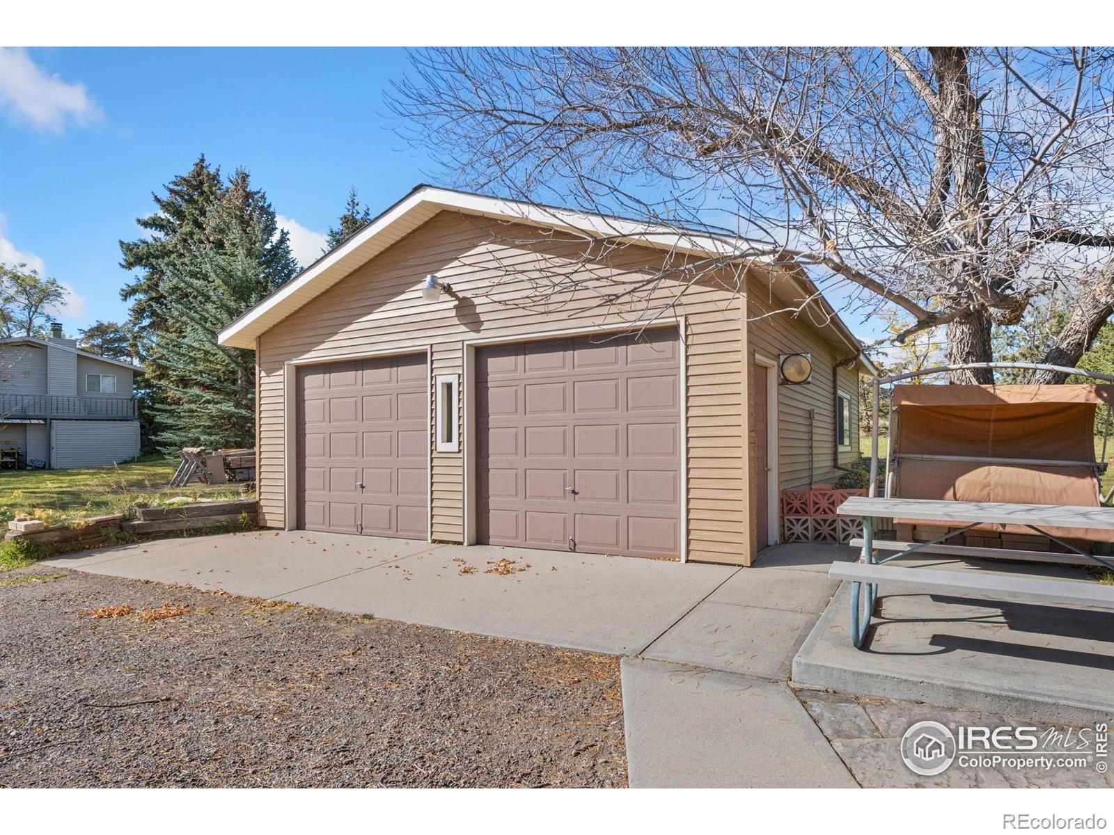 Welcome to 3821 Starlite Dr! 2+ bedroom, 2 bath home full of charm and curb appeal, set on just under 1 acre, peaceful lot in North Fort Collins' desirable View Estates - with no HOA! Lots of mature trees, acreage surrounded by cedar trees, private setting! Easily convert one of the bonus rooms into a third bedroom, office, or hobby space. Pride of ownership shows throughout this one-owner property, offering comfort, potential, and a wonderful Colorado setting. Solar for heated floors! Inside, enjoy an open and inviting layout with vaulted ceilings, great natural light, and ceiling fans for airflow. The spacious living room opens to a nice covered porch - perfect for morning coffee or evening relaxation. The kitchen offers warm wood cabinetry, good light, ample storage, and an eat-in design. Two oversized bedrooms upstairs feature large windows, nice views, and an en-suite bath. The unfinished daylight lower level provides even more opportunity - add bedrooms, a workshop, or extra living space. This low-maintenance home features durable metal siding and has been nicely maintained. The detached oversized garage/shop with 8-ft+ overhead doors is ideal for vehicles, tools, or projects. Outside, the property offers mature trees, garden beds, patios, and plenty of room to make it your own four-season oasis. You'll love the location - quiet, private, yet close to everything. Just minutes to parks, schools, Old Town Fort Collins, Horsetooth Reservoir, and the Poudre Canyon for hiking, biking, and boating. Easy access to HWY 287 and I-25 keeps you connected to all Northern Colorado has to offer. This rare in-town acreage combines tranquility with convenience - a perfect balance of comfort, space, and adventure. Move right in or bring your personal touch to unlock even more potential. Homes with this much character and land don't come along often. Don't miss your chance to make this special property your home!