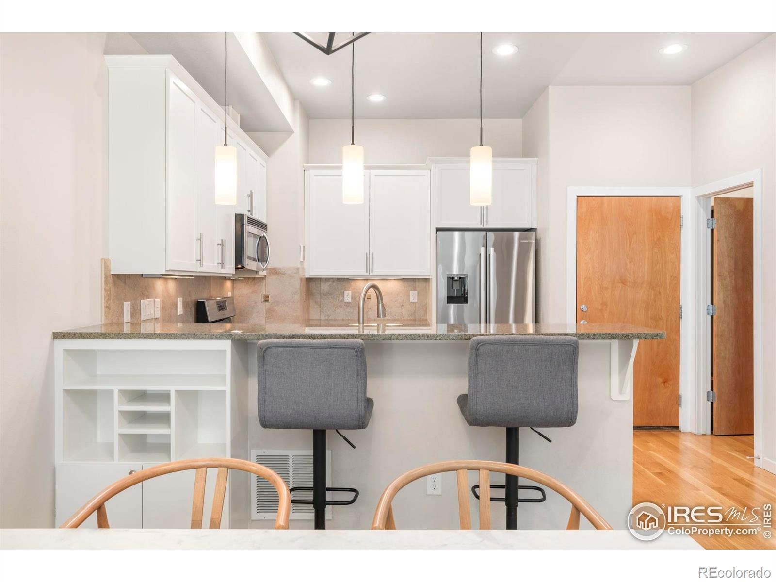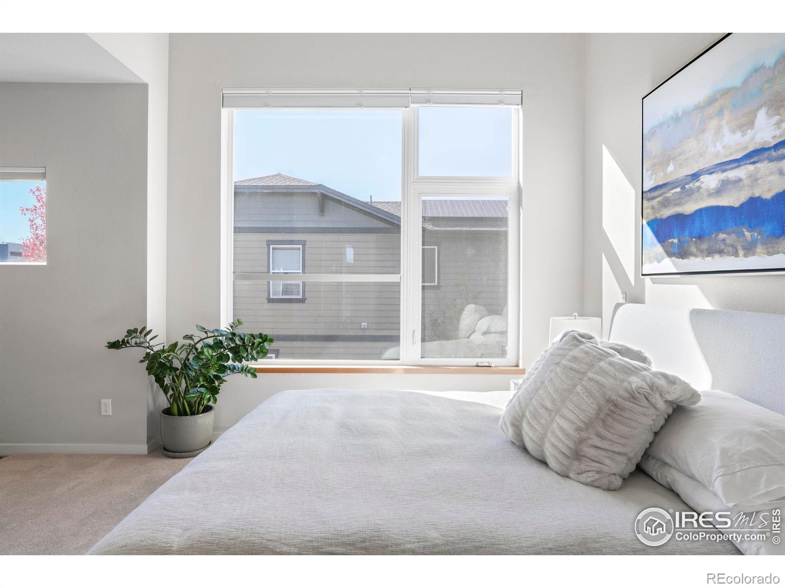 Framed by inspiring views of the Flatirons, this turnkey Northfield Village townhome fuses refined comfort with effortless Boulder living. Tall ceilings, vast windows and warm hardwood floors adorn the airy main level. A sunlit living area flows into a chef's kitchen appointed with white shaker-style cabinetry, a breakfast bar and stainless steel appliances including a new refrigerator. Escape to an oversized primary suite boasting a generous walk-in closet and a serene bath with a walk-in shower and double vanity. A bright second-floor loft offers flexible space for work or relaxation, while the spacious finished basement features a full bath and a versatile rec room. Outdoors, a fenced patio creates a quiet retreat, complemented by parks, nature paths and green spaces just beyond the front door. With a two-car attached garage and a welcoming community setting just moments from Downtown Boulder and trail networks, this residence delivers elevated convenience and timeless comfort.