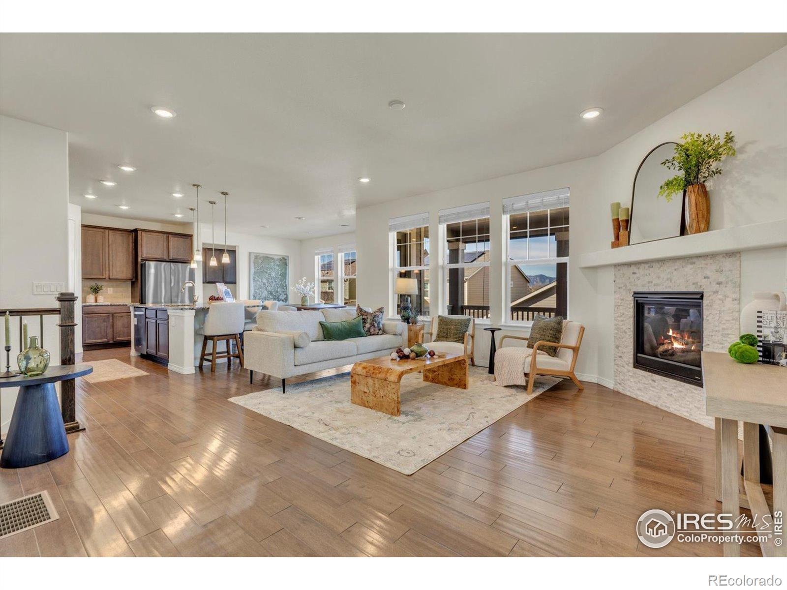 Lovely 5-bed, 5-bath home with a finished walkout basement has exceptional views that you can't find from most homes. With vaulted ceilings, abundant natural light, and an open floor plan, it is a home everyone can relax in. The kitchen, looking out at the snowcapped mountains, has a large island, generous pantry, and convenient office nook. A main-level bedroom or office with full bath adds flexibility. The upstairs Primary Suite, with expansive views from the Boulder Flatirons to Longs Peak, will impress you and make you feel at home. Gather by the gas fireplace or unwind on the back deck taking in sweeping Rocky Mountain views. The basement, remodeled in 2023, creates the ultimate hangout space. Just blocks from Meadowlark K-8 (BVSD), Star Meadows Park, and neighborhood trails, this home truly captures Colorado living at its best!