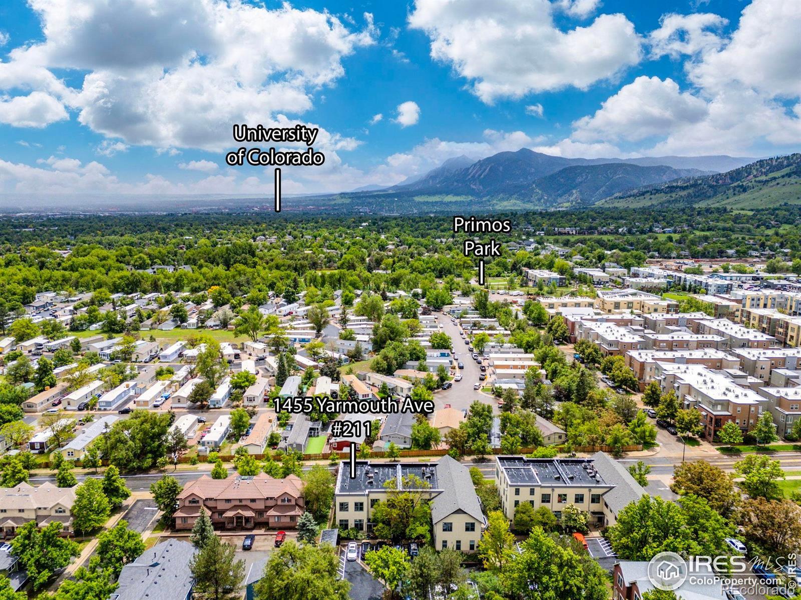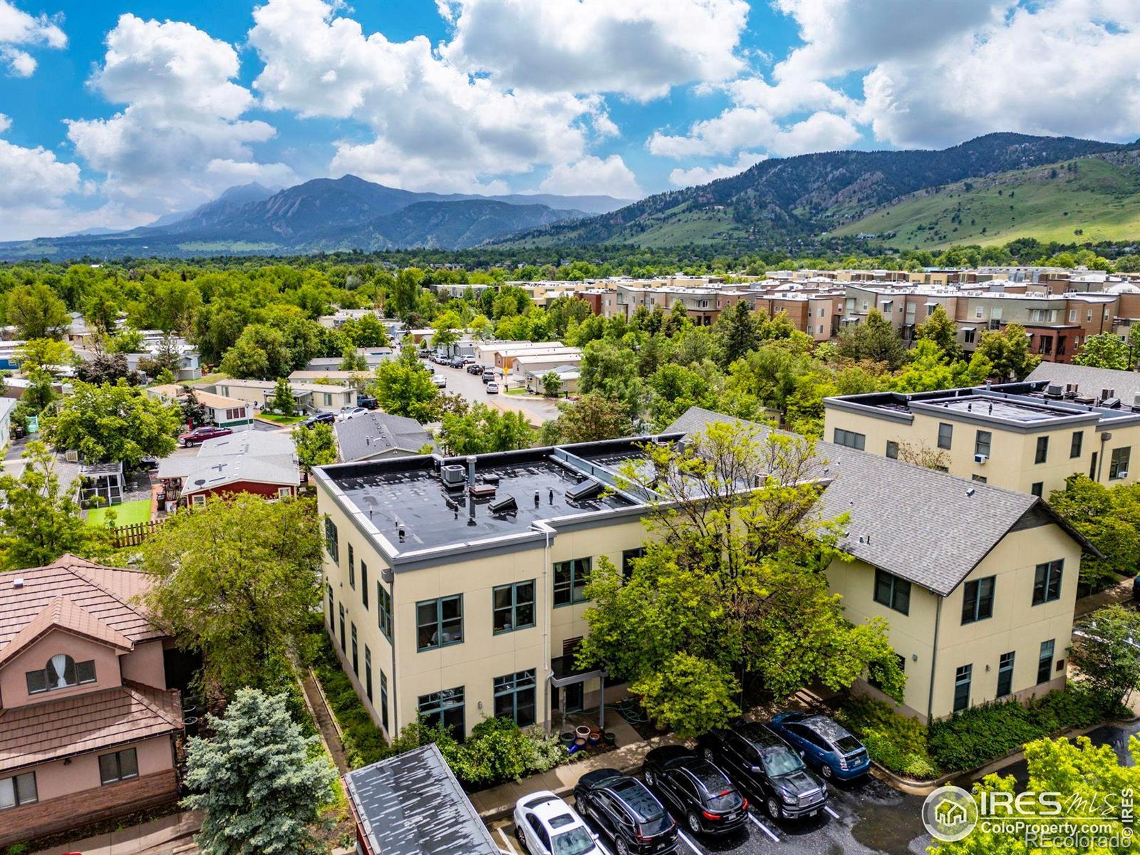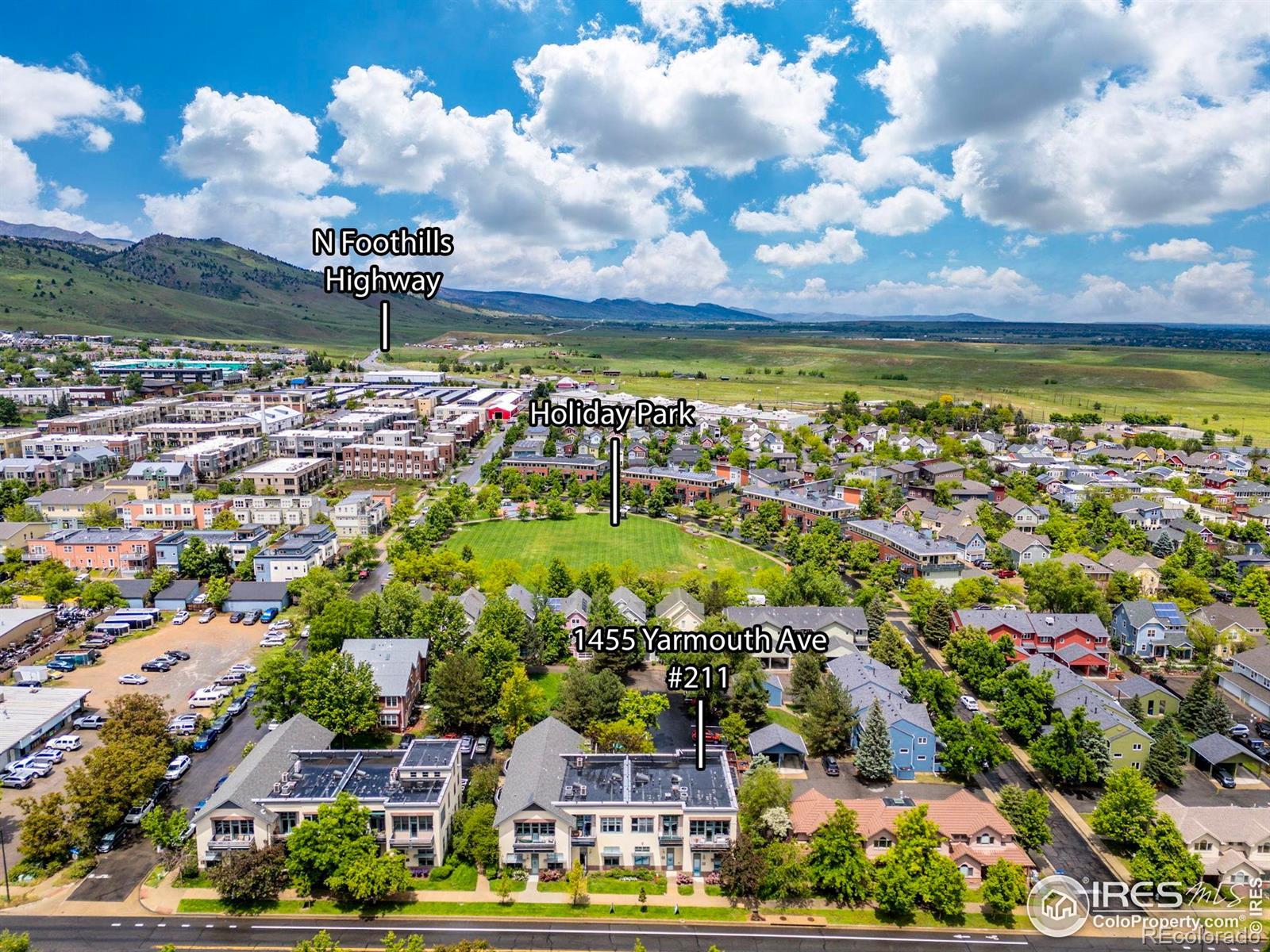 Welcome to this beautifully designed corner condo in North Boulder's sought-after Holiday neighborhood. A rare opportunity to enjoy elevated style, panoramic views, and exceptional walkable convenience. Inside, soaring 12-foot ceilings and expansive walls of windows fill the home with natural light while framing breathtaking views of the Flatirons and foothills. The open-concept great room showcases rich hardwood floors and seamless flow between the living, dining, and kitchen areas, with direct access to a private balcony for morning coffee or evening sunsets. The thoughtfully designed kitchen features generous cabinetry, a peninsula for casual dining, and a gas range that blends form and function. The spacious bedroom retreat includes dramatic windows, space for a home office, and a custom walk-in closet with abundant storage. Everyday living is elevated by thoughtful enhancements such as a dual-sink vanity, in-unit laundry, energy-efficient mini-split heating and cooling, and a projector with an electric dropdown screen for cozy movie nights. An exterior storage locker adds convenience for outdoor gear or seasonal items, keeping your interior clutter-free. The location is truly exceptional. Just steps from beloved neighborhood favorites including Amante Coffee, Moxie Bread Co., Spruce Confections, Proto's Pizza, and Bacco Trattoria, plus miles of trails, Holiday Park, and easy access to shopping and daily amenities. This home offers a perfect blend of style, comfort, and quintessential Boulder living. Don't miss the chance to make it yours. Schedule your private tour today. OPEN HOUSE SAT from 1PM-3PM