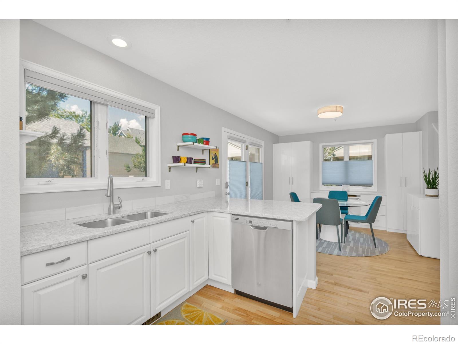 Don't miss this beautifully remodeled three-bedroom home in cool NOBO! Upstairs offers an ideal layout for families with 3 bedrooms and 2 bathrooms all together, and every room features custom closets, shelving, and drawers-storage galore with built-ins almost everywhere. Enjoy central AC, stylishly updated bathrooms, top-down bottom-up custom shades (blackout in the primary), a newer washer/dryer, newer carpeting, and bike storage in the carport. Outside, find a new roof (2023), exterior paint (2024), and refreshed landscaping this year. Only one shared wall adds privacy, and two private parking spaces-one carport, one reserved-make life easy. The bright, white kitchen features quartz counters, stainless appliances, a breakfast bar, and a built-in pantry opening to the dining area and covered front porch. Walk to Holiday Park, RTD, and trails, plus local coffee, dining, and shopping. Truly move-in ready!