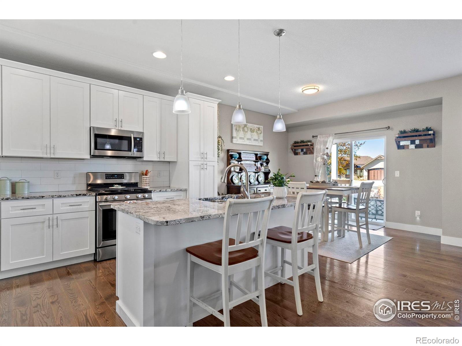 OPEN HOUSE! Saturday, November 8 from 1:30- 3:30 pm! Welcome to this move-in-ready home in the highly sought after Boyd Lake neighborhood! No HOA, No metro district! This beautiful 4 bedroom, 3 bathroom home is the one you have been looking for. The main level features an open concept floor plan with a large chef's kitchen complete with stainless steel appliances and a large island perfect for food prep! The adjoining living room with a cozy fireplace and a breakfast nook make this space ideal for entertaining. The formal dining room, a bedroom and full bathroom finish off the main level. Heading upstairs you will find the primary bedroom complete with an ensuite bathroom featuring a large soaking tub, dual vanities, separate showers and an ample sized walk-in closet. There are 2 additional bedrooms, a full bathroom and a laundry room on the second level, as well as a large loft area perfect for movie watching, a playroom or a home office. Do not miss the views of Boyd Lake and the mountains from the upstairs!!! The unfinished basement is roughed for a bathroom and the exterior wall framing has been done making it easier to finish as you wish. Making your way outside to the back yard you will find a large patio with built-in garden beds making this the ideal spot for grilling and watching the sunset. Don't miss the 4 car, finished garage for you outdoor toys. With its proximity to shopping, schools, restaurants, I-25 for commuters and MCR, this is a must see property!