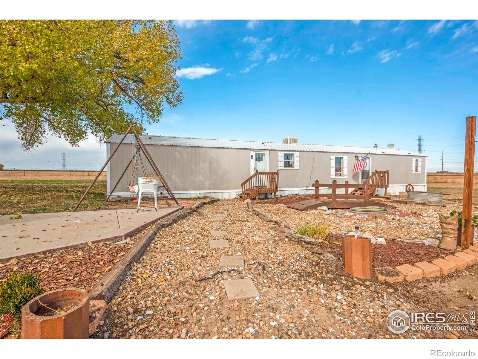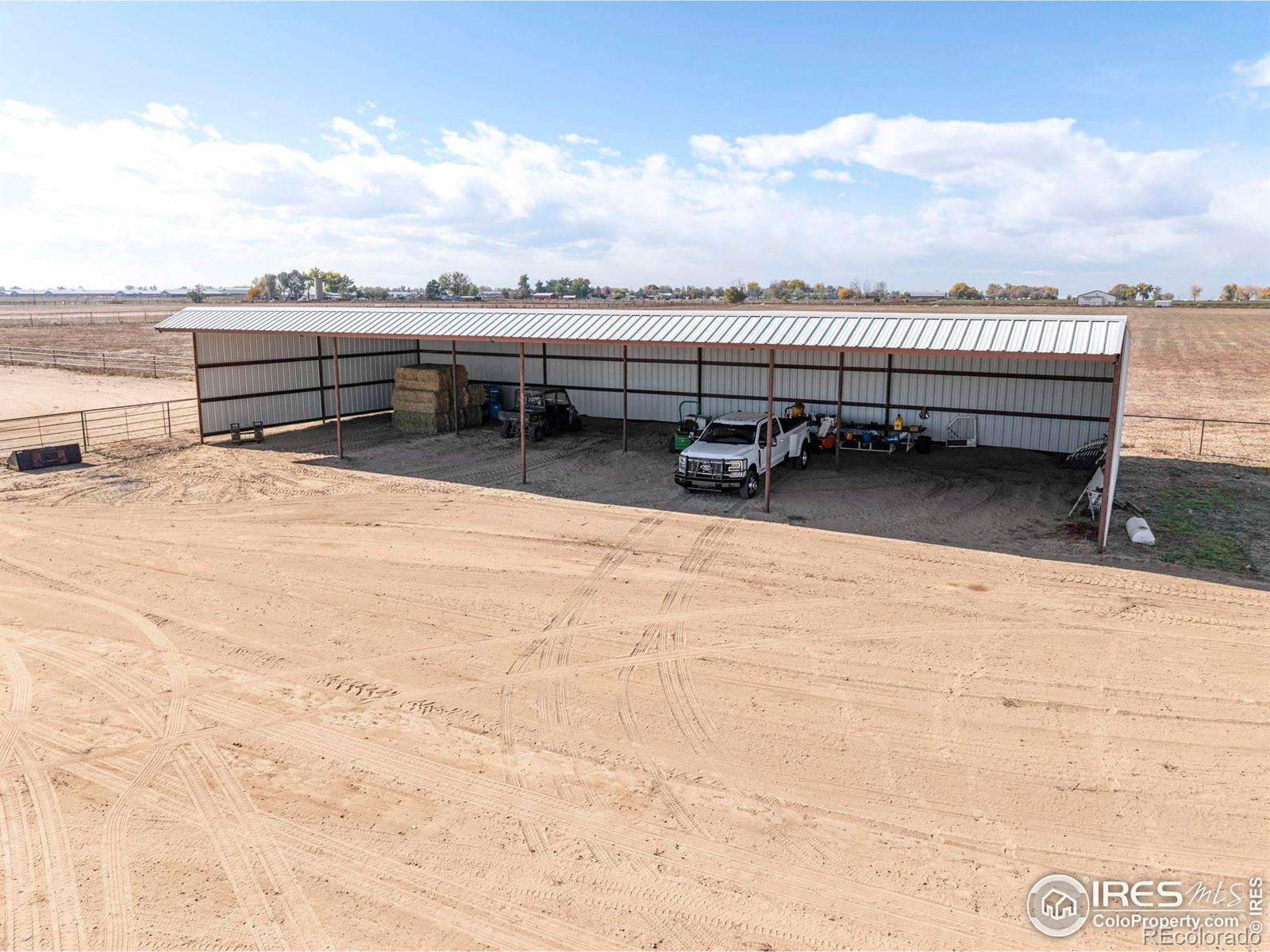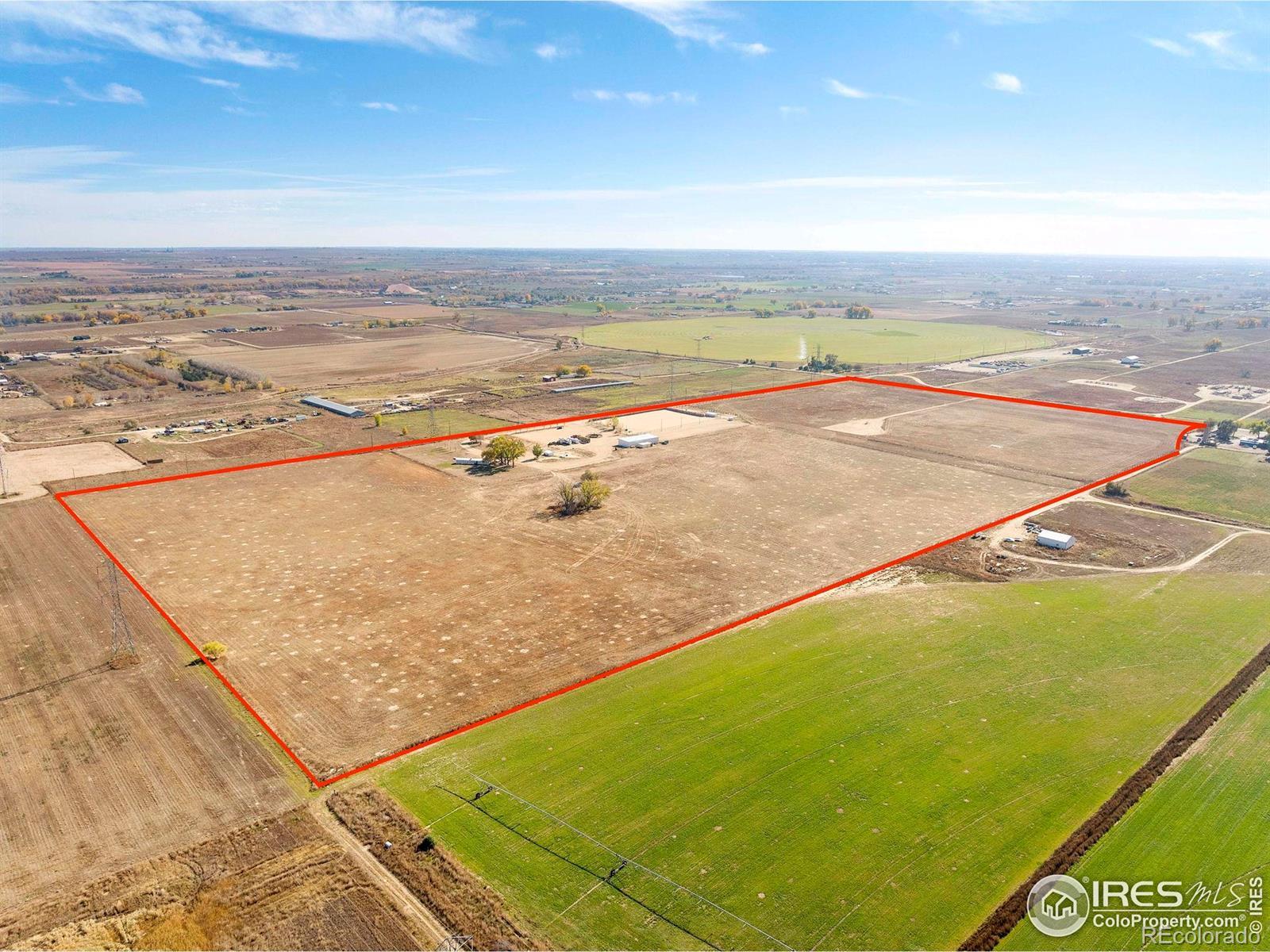 Horse-ready 78 acres just minutes East of Del Camino off paved road with sweeping mountain views! Features a 200'x300' sandy roping arena perfect for those hard rains, 40x100x16 outbuilding with 5' overhang, for abundance of hay & RV storage, 6 loafing sheds, 2001 3-bed, 2-bath nicely remodeled manufactured home. Two Central Weld water taps, ag zoning, no HOA or metro district. 60-acre solar lease in place for long-term passive income. Prime location near Hwy 85 & I-25 with development potential. Ideally situated between Denver, Boulder, and Fort Collins, this property captures the essence of western lifestyle with open space, functionality, and future opportunity. The approximate 60' diameter round pen and arena's deep, sandy footing drains fast-ideal for roping, training, or leisure riding year-round. The 40x100x16 open-faced outbuilding includes a 5' overhang which easily accommodates hay storage, long LQ trailers, RVs, or large equipment, while six well-built loafing sheds offer excellent shelter for horses and livestock with 5 automatic waters. The 2001 Lancaster 3-bedroom, 2-bath home has been tastefully remodeled to balance comfort and practicality, featuring open living spaces and mountain views with a massive 9'x5' granite center island as the focal point. Two Central Weld water taps are installed, ensuring flexibility for expansion or future development. A 60-acre solar lease is secured and set to produce long-term passive income, blending agricultural heritage with renewable potential. The land is ag-zoned with no HOA, covenants, or metro districts, providing freedom to grow or develop as desired. With quick access to Highway 85 and I-25, the location offers both rural tranquility and modern convenience-minutes from Firestone, Fort Lupton, and Longmont. Whether you're building a horse operation, seeking sustainable income, or exploring Weld County's strong development corridor, this property stands ready for your vision under Colorado's open western skies