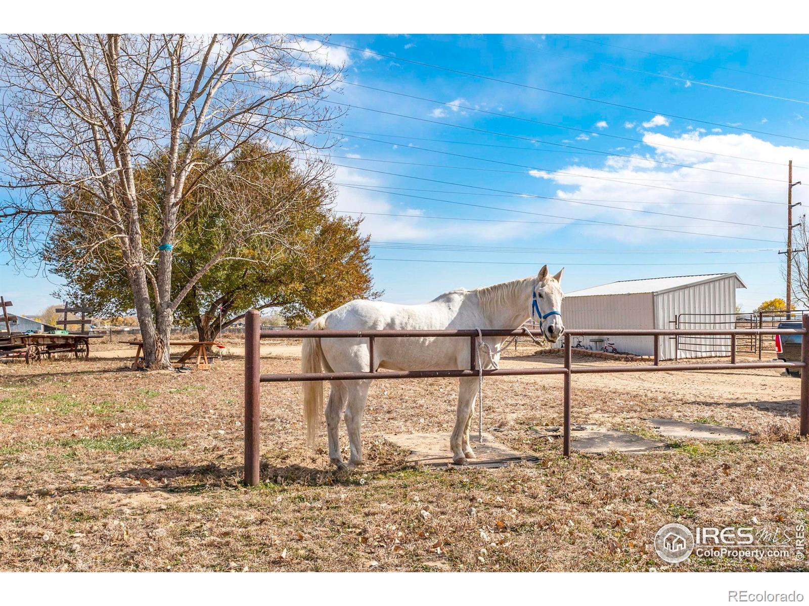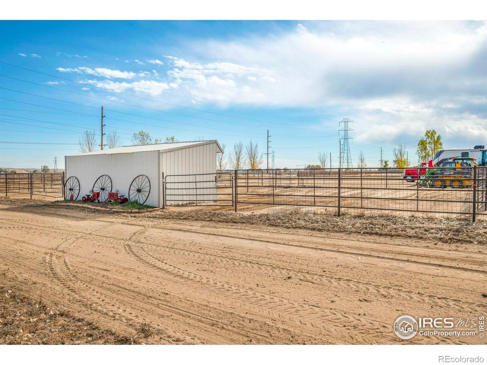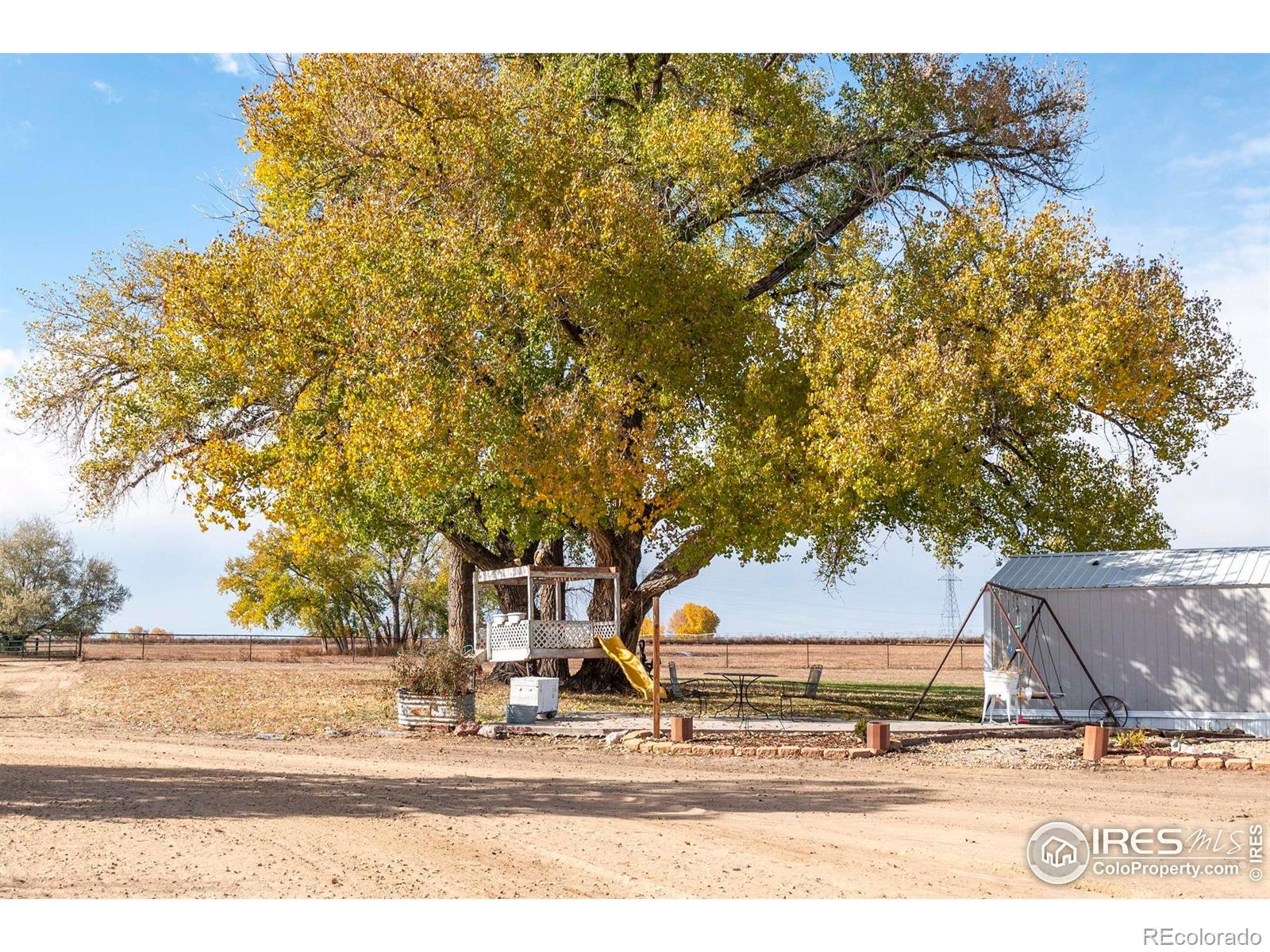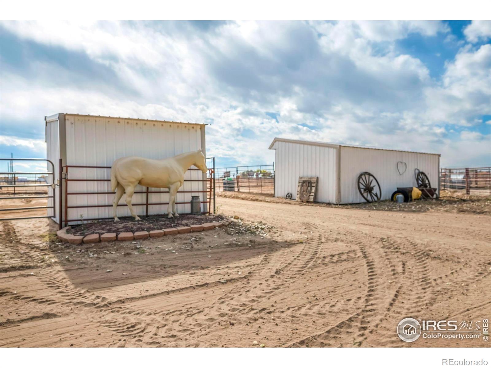 Horse-ready 78 acres just minutes East of Del Camino off paved road with sweeping mountain views! Features a 200'x300' sandy roping arena perfect for those hard rains, 40x100x16 outbuilding with 5' overhang, for abundance of hay & RV storage, 6 loafing sheds, 2001 3-bed, 2-bath nicely remodeled manufactured home. Two Central Weld water taps, ag zoning, no HOA or metro district. 60-acre solar lease in place for long-term passive income. Prime location near Hwy 85 & I-25 with development potential. Ideally situated between Denver, Boulder, and Fort Collins, this property captures the essence of western lifestyle with open space, functionality, and future opportunity. The approximate 60' diameter round pen and arena's deep, sandy footing drains fast-ideal for roping, training, or leisure riding year-round. The 40x100x16 open-faced outbuilding includes a 5' overhang which easily accommodates hay storage, long LQ trailers, RVs, or large equipment, while six well-built loafing sheds offer excellent shelter for horses and livestock with 5 automatic waters. The 2001 Lancaster 3-bedroom, 2-bath home has been tastefully remodeled to balance comfort and practicality, featuring open living spaces and mountain views with a massive 9'x5' granite center island as the focal point. Two Central Weld water taps are installed, ensuring flexibility for expansion or future development. A 60-acre solar lease is secured and set to produce long-term passive income, blending agricultural heritage with renewable potential. The land is ag-zoned with no HOA, covenants, or metro districts, providing freedom to grow or develop as desired. With quick access to Highway 85 and I-25, the location offers both rural tranquility and modern convenience-minutes from Firestone, Fort Lupton, and Longmont. Whether you're building a horse operation, seeking sustainable income, or exploring Weld County's strong development corridor, this property stands ready for your vision under Colorado's open western skies