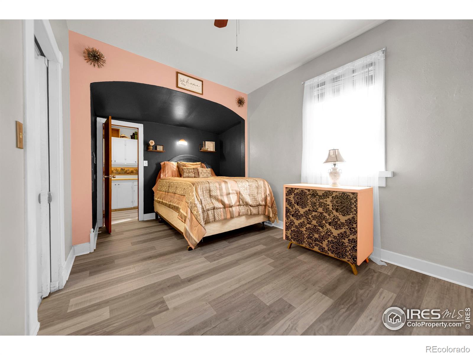 Charming and Beautiful 2-story home located on a corner lot in the heart of Fort Morgan near parks, schools and downtown festivities. This welcoming 3 bedroom, 2 bathroom home opens to a large living room and dining space that features a wood burning stove and updated flooring throughout. Private sun room can also be used as a reading/music area or study. Bright and open kitchen with skylight, granite countertops, hardwood flooring, built-in desk, eat-in area, newer appliances and huge pantry. Bedroom suite on main floor with 3/4 bathroom. Primary bedroom on 2nd floor highlights french doors, private balcony and dressing room. Updated bathroom and additional bedroom on 2nd floor. Private fenced yard with patio and 2-car detached garage. Tankless water heater.