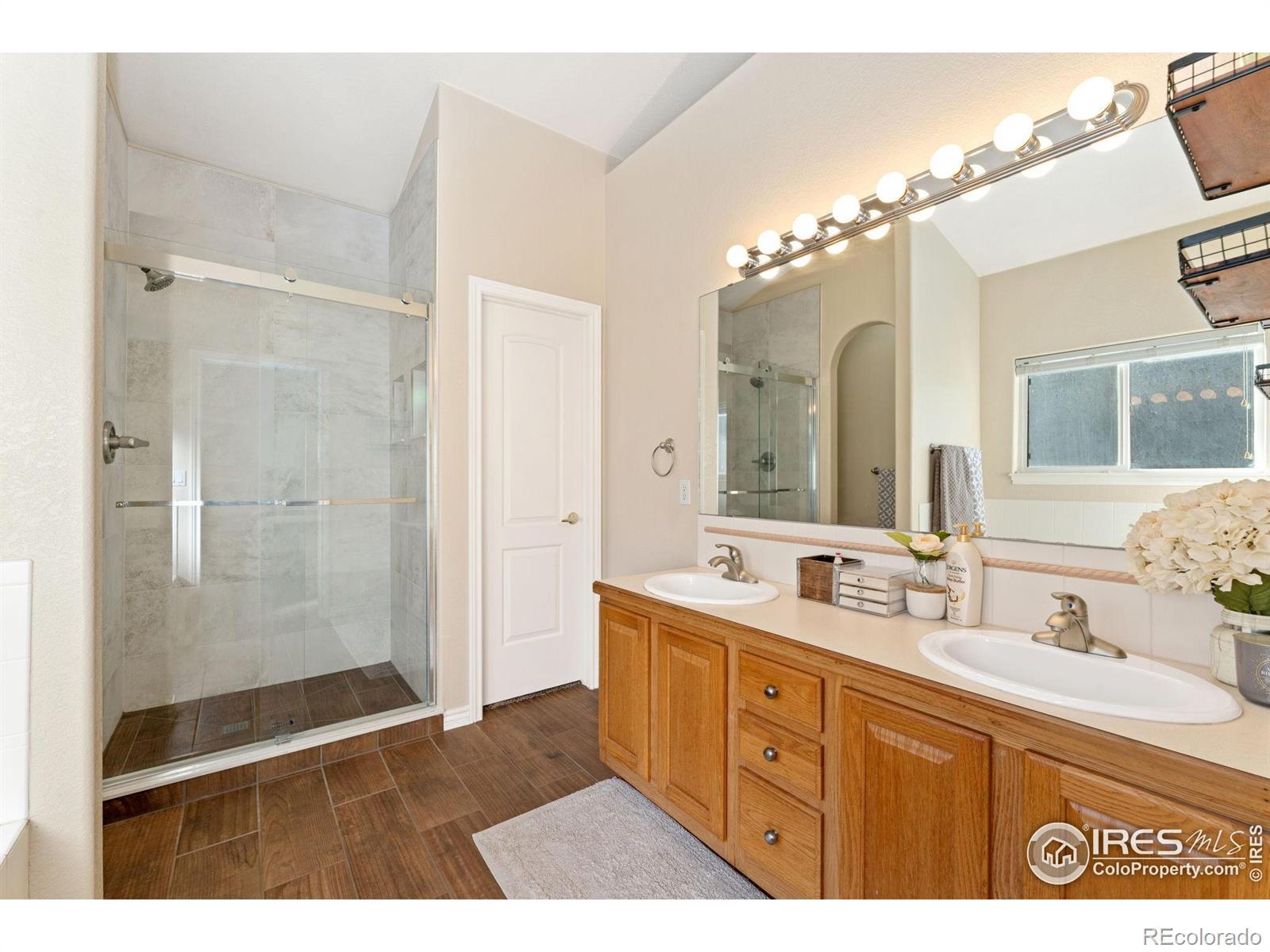 Incredible opportunity to own a spacious 5-bedroom, 3-bath ranch-style home conveniently located just minutes from I-25 and all the amenities of downtown Frederick. This home offers both comfort, convenience, and main level living! Inside, you'll find a thoughtfully designed open floor plan with vaulted ceilings and abundant natural light. The living room features a cozy gas fireplace and opens seamlessly to the dining room and kitchen, making it perfect for entertaining. The spacious kitchen includes granite countertops, ample storage with whitewash cityscape cabinetry, custom tile backsplash, and beautiful hardwood floors. The oversized main level primary suite provides a luxurious retreat, complete with a 5-piece en-suite bath, double sinks, and a large walk-in closet. Enjoy the brand-new custom tile work in the expansive primary shower. The finished basement adds valuable living space and is thoughtfully designed with an entertainment area, workout space, two additional bedrooms, and a large bathroom featuring tile flooring, a custom-tiled bath, and an upgraded vanity. The huge laundry room includes custom shelving and a sink for added functionality and convenience. Step outside to a large, well-maintained back deck that is perfect for summer BBQs and entertaining. The yard features a full sprinkler system and a dog run. A spacious 3-car garage adds even more appeal. This home offers incredible value in a prime location and best of all, NO HOA. Brand new hot water heater! Schedule your showing today!