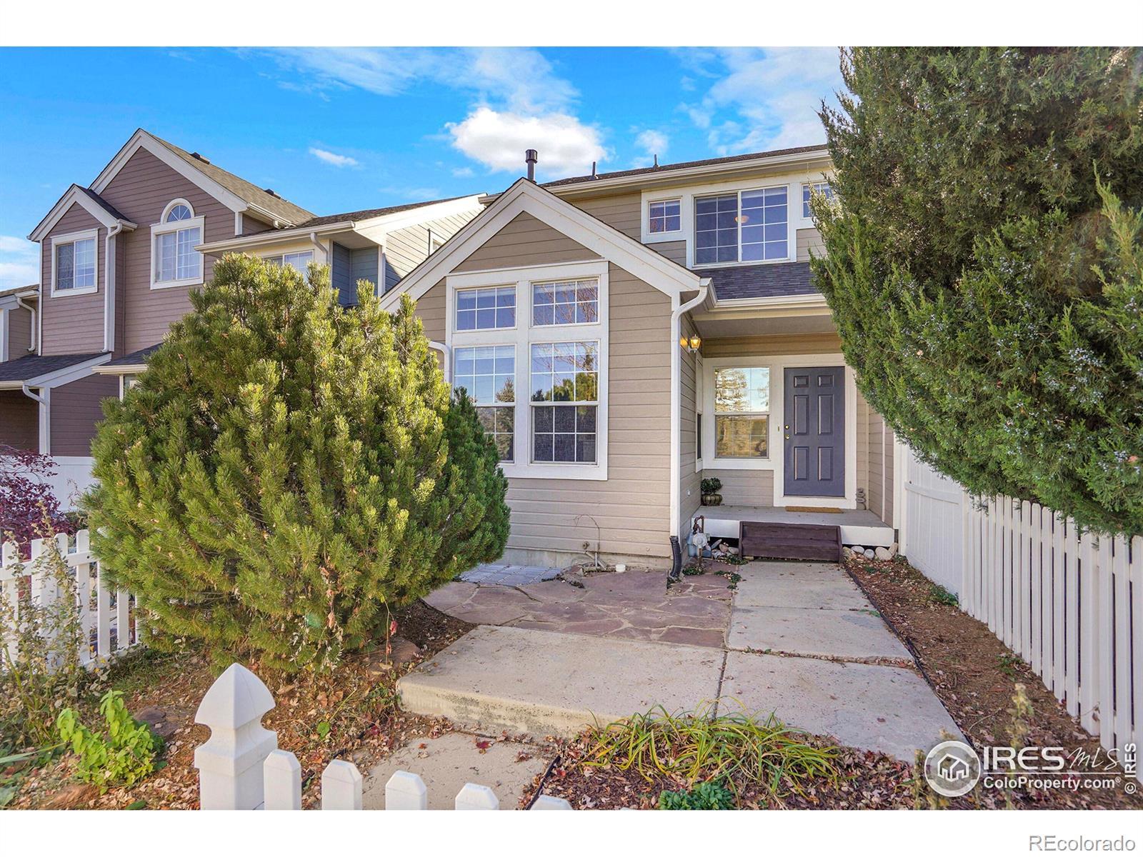Amazing views of Longs Peak from your private front patio. Don't miss the opportunity to see the most exquisite sunsets. This stunning townhouse is situated in the coveted Indian Peaks Community. Hidden behind the white picket fence, overlooking the community green space and lovely tree foulage, is a private front patio with flagstone and garden space. Open the door to an inviting open floor plan with tons of natural light from all the picturesque windows and stunning low maintenance laminate wood flooring on the entire main level providing easy living. Spacious living room with modern built in gas fireplace and mantel perfect for Colorado winters. Centered around the focal point is a functional and efficient kitchen with painted cabinets, quartz counters, inset S/S farm sink, tile backsplash and S/S appliances. The kitchen has a open and airy feel, allowing for a perfect entertaining space. Separate dining room and extra bar space allow for you to entertain in one place. This perfect floor plan features 2 bedrooms and full bath on one level giving privacy to the primary suite. Primary suite with views of the mountains with attached primary 5 pc bath and large dual walk in closets. Basement is fully finished with open concept to make this anything you desire, great rec room, family room or work out room. Laundry with washer & dryer and storage space. Attached 2 car garage. Great location close to shopping, YMCA, dining, trails, golf course and many parks. Easy access to Highways for a quick commute to Boulder/Longmont or Denver. Don't miss this opportunity.