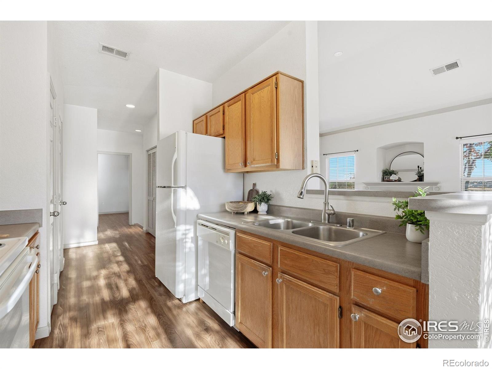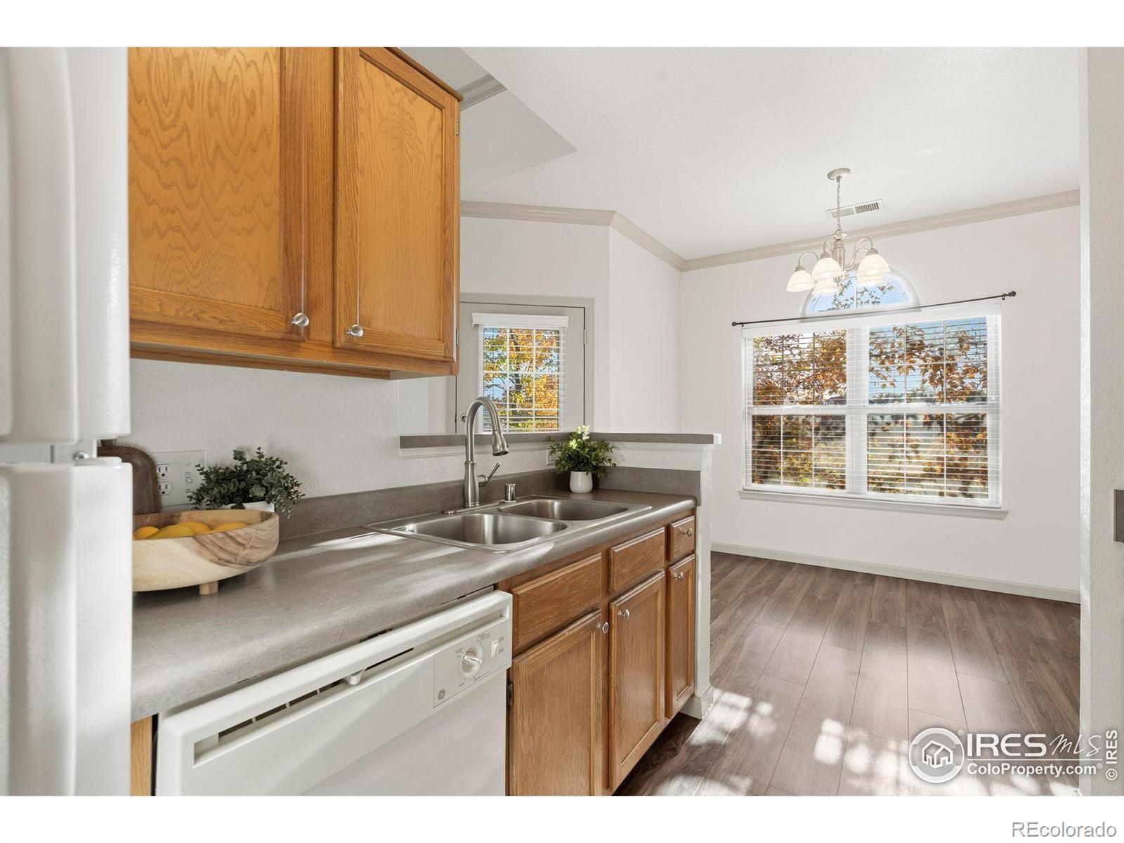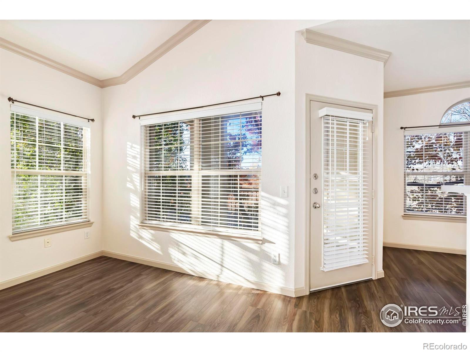 Beautiful Fossil Creek Condo with Mountain Views and Premier Location. Discover one of the best locations in the entire Fossil Creek community! This immaculate 2-bedroom, 2-bath condo offers comfort, convenience, and a stunning natural backdrop. Situated on the second floor, it backs directly to Fossil Creek Park and the protected nature area, providing peaceful views and quick access to trails and open space. Enjoy mountain views from your covered balcony, perfect for morning coffee or evening sunsets. Inside, the home features LVP flooring throughout, an open-concept layout, and a bright, inviting living space. The kitchen includes all appliances, including refrigerator, washer, and dryer, making this truly move-in ready. Directly across you'll find the clubhouse, pool, and EV charging stations, offering unmatched convenience. A detached 1-car garage adds storage and parking flexibility. This condo combines the best of low-maintenance living with a prime Fort Collins location, close to shopping, dining, parks, and easy access to I-25. Don't miss this rare opportunity to own one of the best spots in Fossil Creek!
