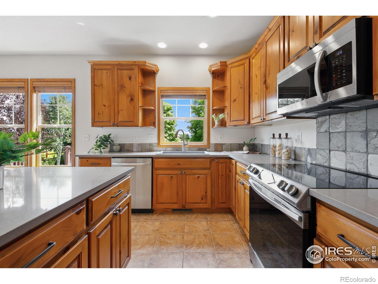 With much of this beautiful three-bedroom home surrounded by open space, your new retreat is conveniently located in the highly sought-after Clydesdale Park neighborhood. Step inside the inviting entryway that opens to a spacious great room featuring vaulted ceilings and a stunning floor-to-ceiling stone fireplace. The large kitchen offers classy cabinetry, quartz countertops, and a pantry-perfect for both everyday living and entertaining. All three bedrooms are located on the main level, including the spacious primary suite with a walk-in closet and a luxurious five-piece bath. The partially finished basement adds even more living space with a large recreation room and a huge storage area. Enjoy relaxing outdoors on the charming front porch; an envy of the neighborhood with its generous seating area. Or... rejuvenate on the back deck overlooking a beautifully landscaped yard against open space, and filled with mature trees and shrubbery. Ideally located just minutes from I-25 and Old Town Fort Collins, this home offers an exceptional combination of comfort, style, and value. Please note -- since photos were taken, the kitchen wine rack and refrigerator have been removed and electric range replaced with a gas range.