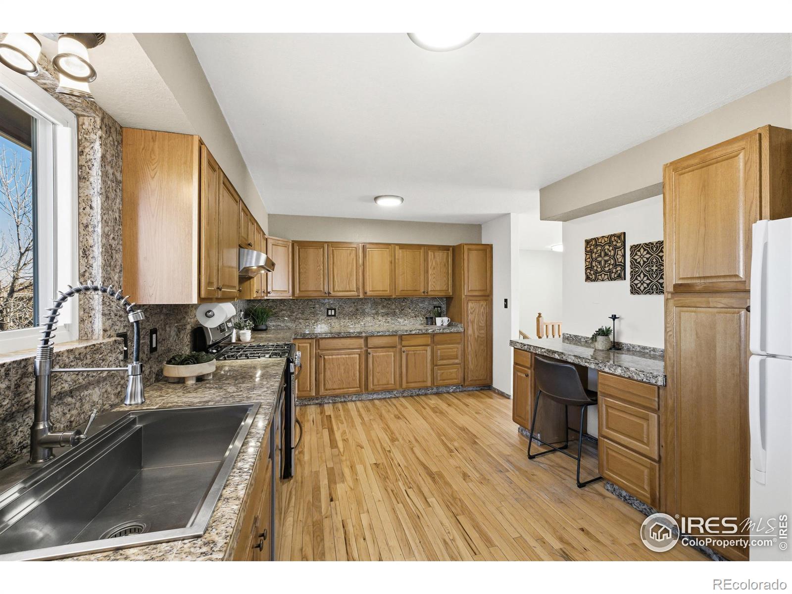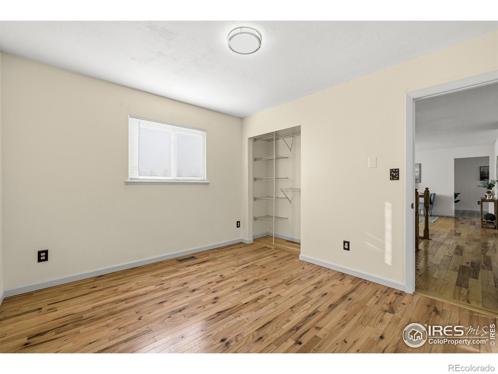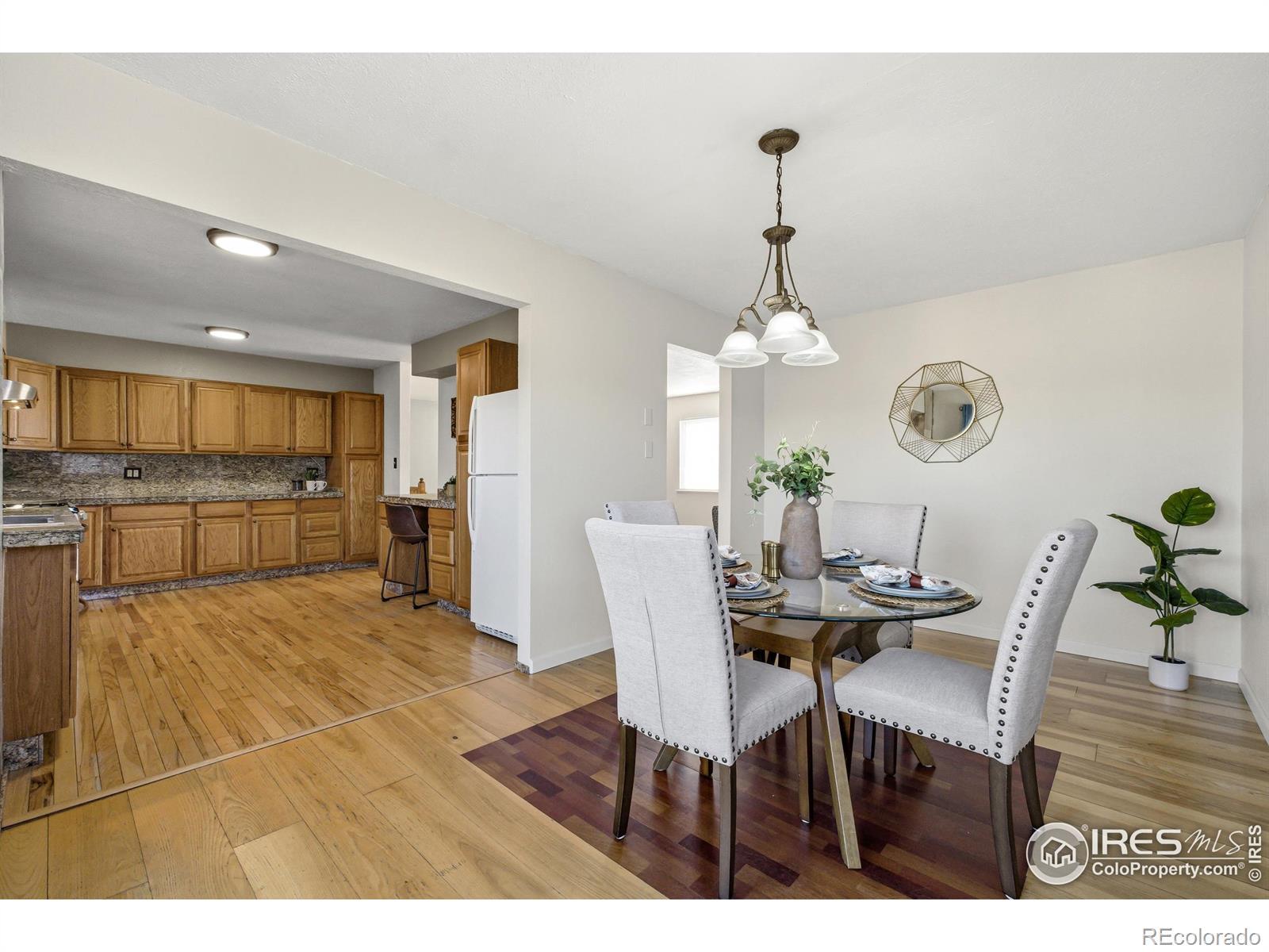 You'll love this meticulously maintained 3-bedroom home in the popular Stagecoach neighborhood of north Fort Collins. Just minutes from trails and open space, this home offers a comfortable layout and beautiful foothill views. Step inside to a spacious living room filled with natural light from large windows. Real wood flooring runs through much of the main level, adding warmth and character. The separate dining room opens to a big back deck-perfect for enjoying morning coffee or summer barbecues. The kitchen is a standout, with classy cabinetry, tons of storage, and plenty of space to cook and gather. Two bedrooms and a full bath complete the main level. Downstairs, there's a large rec room with lots of room to spread out, plus another bedroom, a 3/4 bath, and a handy flex space with its own entrance-great for a home office, guest area, or hobby room. Outside, relax on the spacious deck overlooking the mature backyard landscaping and take in those gorgeous foothill sunsets. This home truly shines with pride of ownership throughout-a great find and a terrific value! NO HOA!!