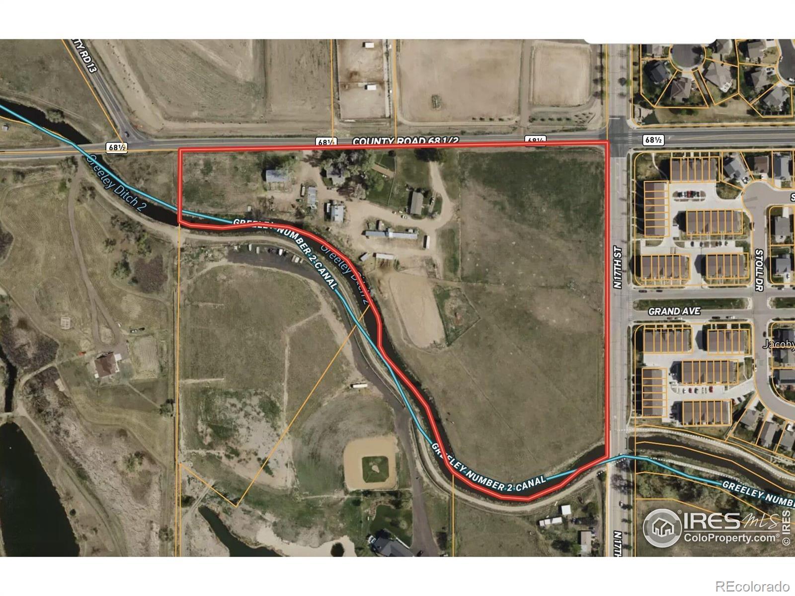 Nearly 17 acres of development land in the growing community of Windsor.The property is zoned Residential Mixed Use 1.The site could be ideal for a church or school as well as other development options on the corner of WCR 68 1/2 and 17th St, bordering Greeley #2 canal to the south.There is a main home and two additional manufactured homes along with 3 utility and out buildings.House 2 bd 1 ba 1376 Sq ft.Manufactured Home 1980 1680 Sq ft. Manufactured Home 1988 1056 Sq ftUtility Bldg, 2048 Sq ft.Out building # 960 Sq ft. Out building #2 1584 Sq ft.16.69 Deeded Acres: