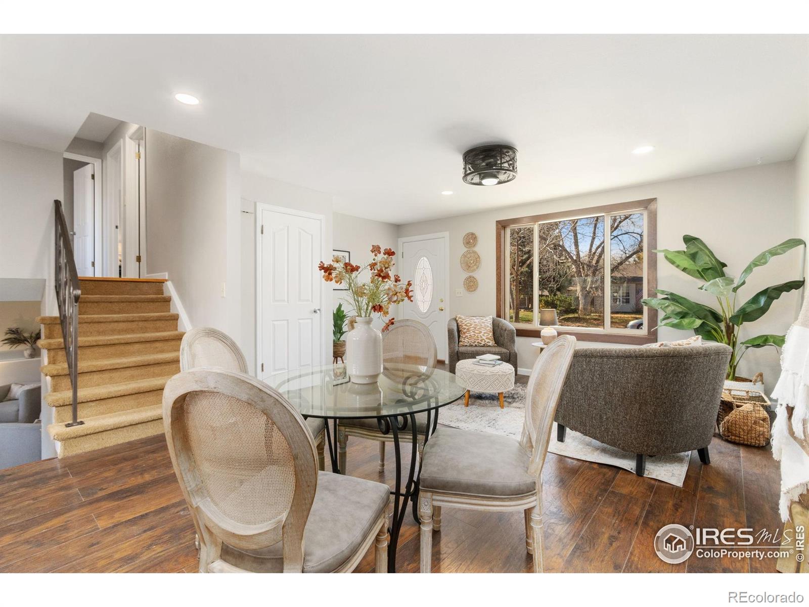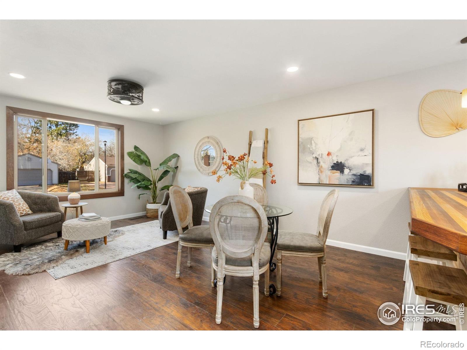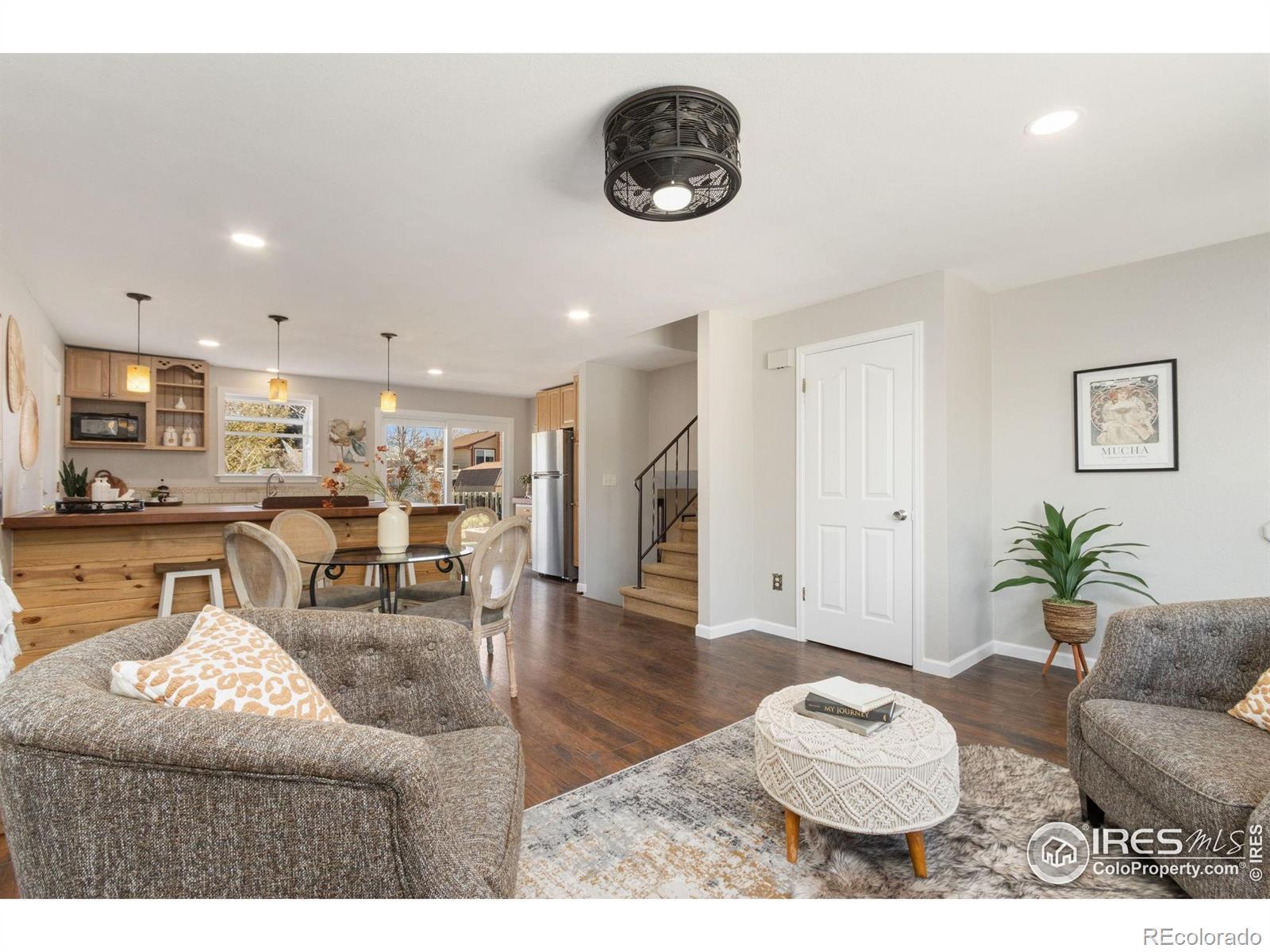 Discover this warm and versatile Fort Collins tri-level offering flexible living spaces and no HOA! This 4-bedroom, 2-bath home is filled with comfort and character, quietly tucked away off a quiet cul-de-sac in West Fort Collins. Built in 1978 and offering 1,759 square feet, the layout provides multiple gathering areas across three levels-ideal for entertaining, everyday living, multi-generational needs, or shared living. The main level features a bright living room with laminate wood flooring and an effortless flow into the kitchen, complete with a large butcher-block peninsula perfect for casual dining and meal prep. Upgraded cabinetry, Corian counters, and stainless-steel appliances create a clean, functional workspace with ample storage. Easy access to the backyard is provided from the kitchen sliding glass doors. Upstairs, the spacious primary bedroom includes a walk-in closet, accompanied by two additional bedrooms and a full bathroom. Freshly painted walls, ceilings, doors, and trim throughout provide a crisp, move-in-ready feel. The lower level offers a comfortable second living area, a fourth bedroom, 3/4 bath, and laundry-ideal for guests, a home office, or flexible use. Step outside to a private, fenced backyard with mature landscaping, a new pergola for shaded relaxation, and plenty of room for gardening, play, or outdoor dining. Centrally located near parks, trails, schools, and convenient access to shopping, dining, and CSU-this west-side gem offers exceptional livability and value! Solar panels will be paid off at closing and convey to Buyers.