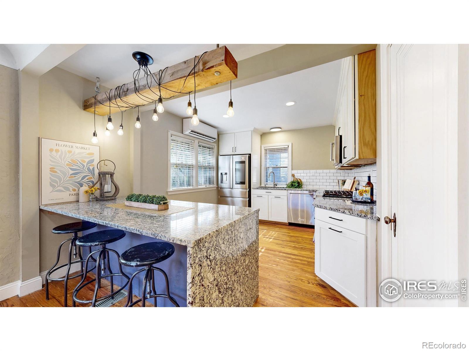 Don't miss out on this beautiful historic home in the Cranford neighborhood with astounding curb appeal! This home is know as the Noffsinger House and is an all brick Tudor style house. Convenietly located near the University of Northern Colorado, Glenmere park, shopping and dining. The main floor is beautifully updated and features granite countertops, updated cabinetry, refinished hardwood floors, an updated full bathroom with a huge walk in shower and a spiral stair case. The kitchen opens up to the living room where there is a wood burning fire place to huddle up around. There are 2 bedrooms on the main level and 2 non comforming bedrooms in the basement. One bedroom in the basement features a private en-suite. The family room set up is ready for home entertainment including stadium seating and a wet bar. The basement also features additional storage areas and a work shop area. This home sits on nearly a quarter acre lot with a detached 2 car garage behind a removable gate and alley access. No HOA or Metro Taxing district to worry about.