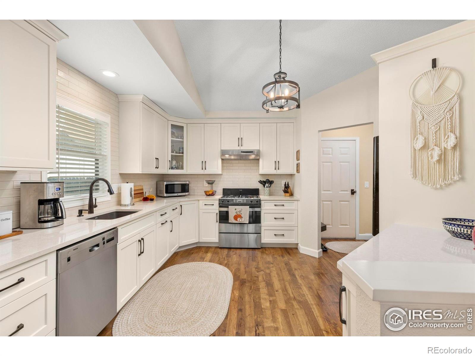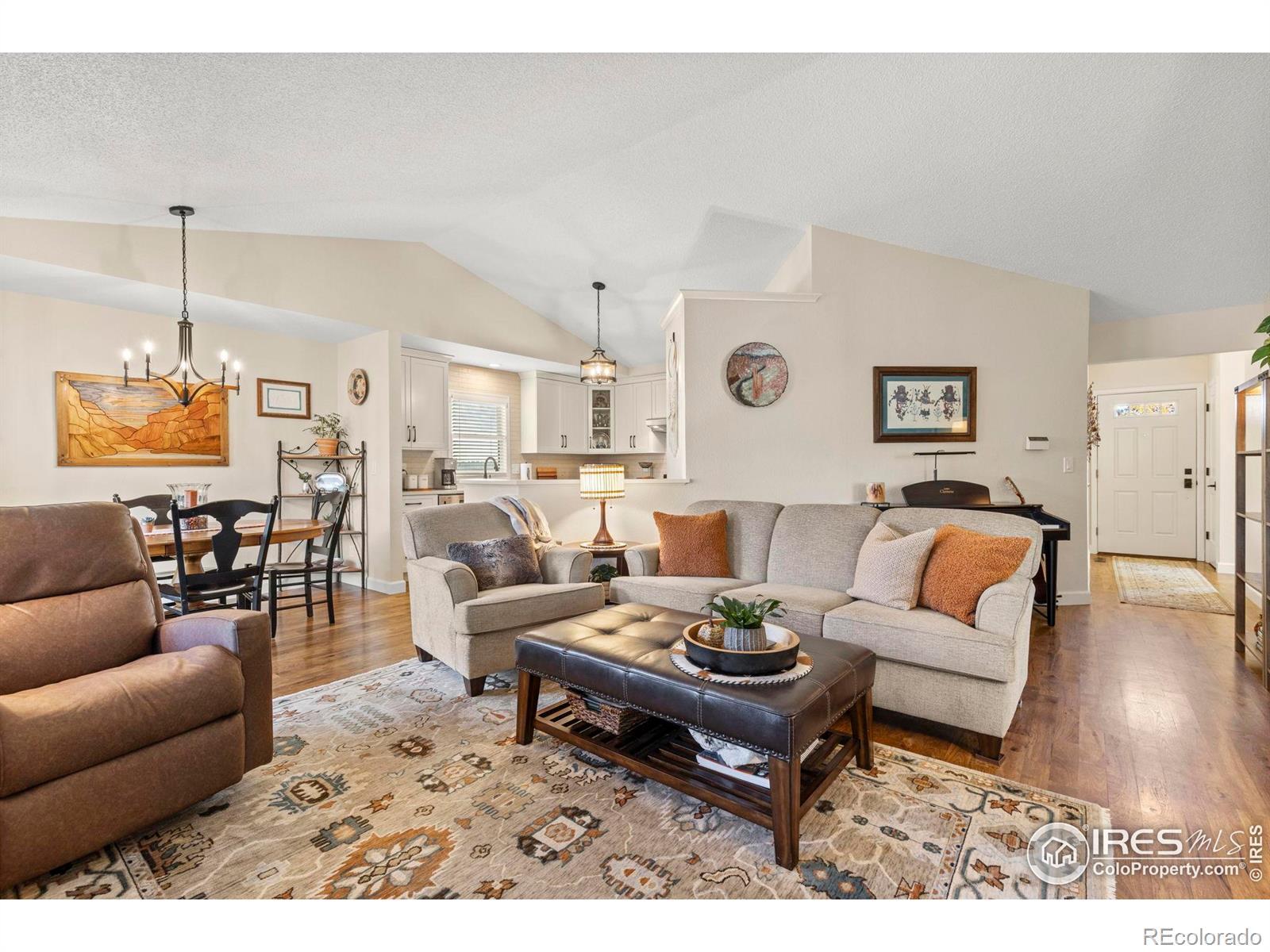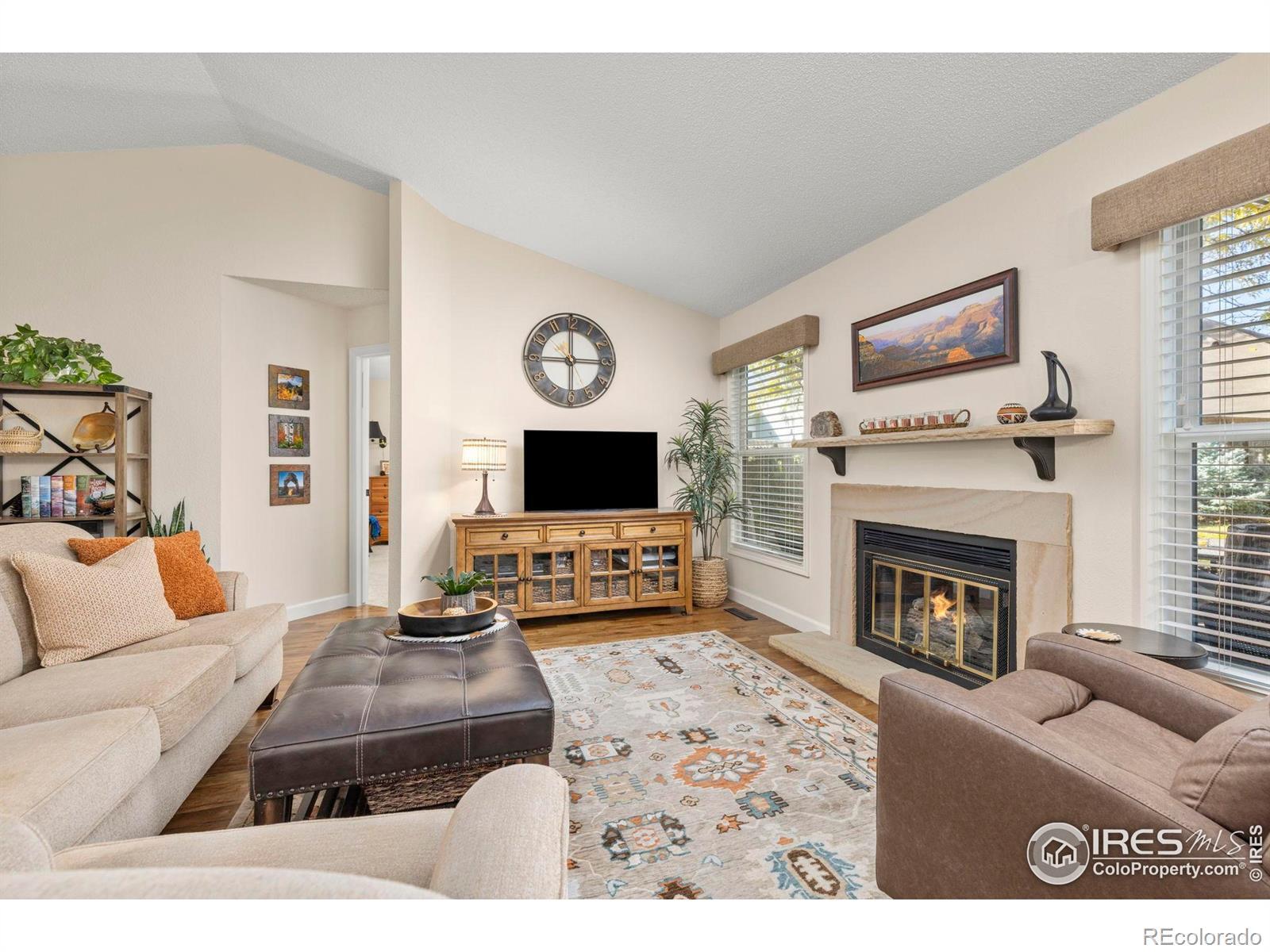 Discover refined living in this meticulously updated 3-bedroom, 2-bath home located in the coveted Southwest Loveland Marianna Farms neighborhood-offering tranquility, luxury, and no HOA restrictions. Every detail has been thoughtfully curated, starting with a chef's dream kitchen featuring custom cabinetry from the Artisan Cabinet Company, sleek quartz countertops, and premium appliances. Rich hardwood flooring from Schmidt's flows seamlessly throughout, complemented by all-new solid core interior doors and EMTEK hardware.The living room showcases a gorgeous gas fireplace with a custom stone mantel and hearth, while Marvin Infinity LoE3 glass windows flood the space with natural light. Step through the Anderson patio door to your private backyard retreat, where a two-level Trex deck awaits-complete with a gas hookup for grilling, a soothing fountain, and lush landscaping with custom planters. Both bathrooms are resort-inspired, featuring stunning finishes and a luxurious Kohler soaking tub for ultimate relaxation. Designer lighting fixtures add elegance throughout, and the newer roof and fresh interior paint ensure peace of mind. Air conditioning and a whole house humidifier add to your comfort and enjoyment of this amazing home. With a fully fenced yard, two-car garage, and a location that blends quiet charm with convenience, this home is a rare gem in Loveland-perfect for those who appreciate quality, comfort, and style. Finally, a home that embraces the Colorado Rocky Mountain lifestyle of your dreams.
