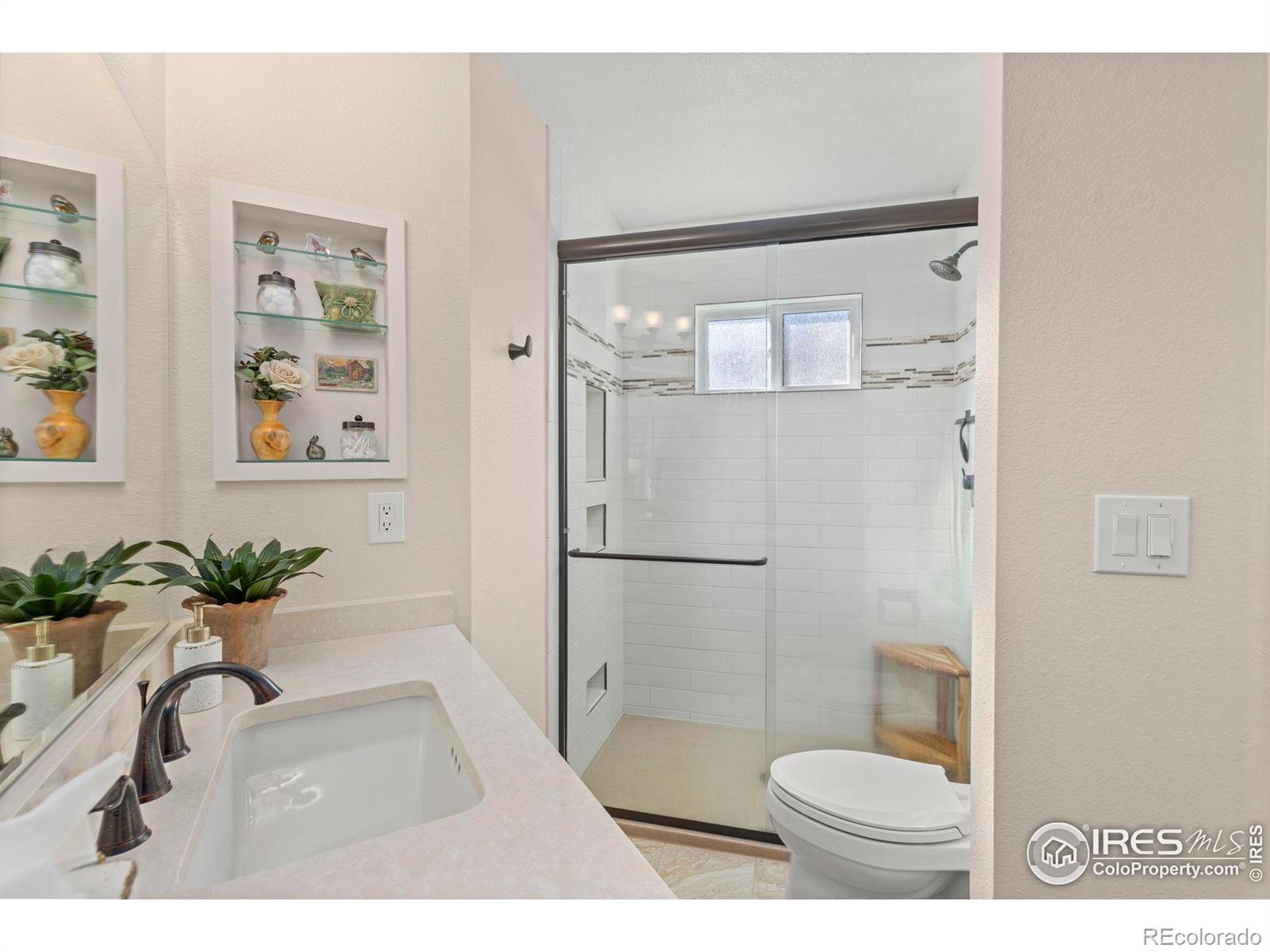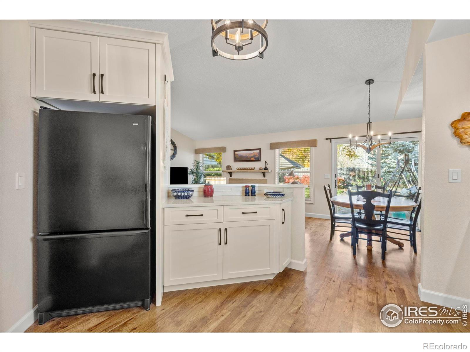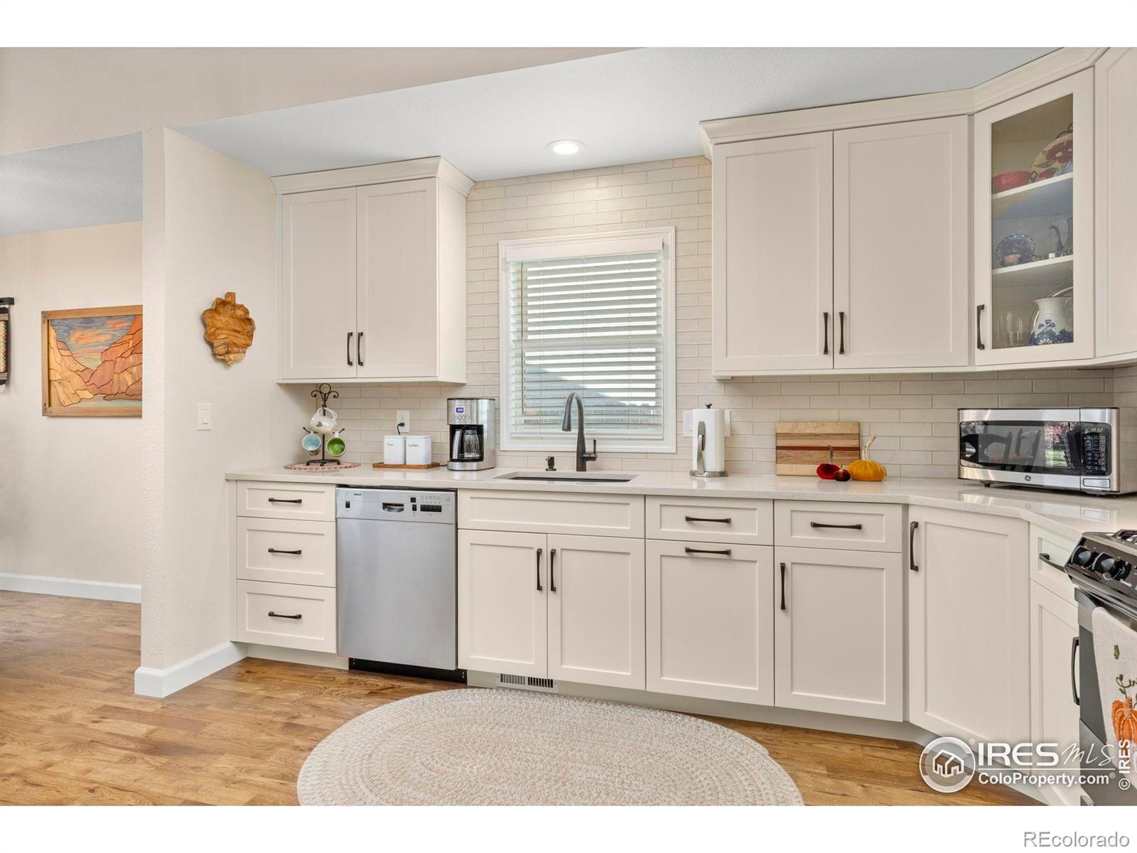 Discover refined living in this meticulously updated 3-bedroom, 2-bath home located in the coveted Southwest Loveland Marianna Farms neighborhood-offering tranquility, luxury, and no HOA restrictions. Every detail has been thoughtfully curated, starting with a chef's dream kitchen featuring custom cabinetry from the Artisan Cabinet Company, sleek quartz countertops, and premium appliances. Rich hardwood flooring from Schmidt's flows seamlessly throughout, complemented by all-new solid core interior doors and EMTEK hardware.The living room showcases a gorgeous gas fireplace with a custom stone mantel and hearth, while Marvin Infinity LoE3 glass windows flood the space with natural light. Step through the Anderson patio door to your private backyard retreat, where a two-level Trex deck awaits-complete with a gas hookup for grilling, a soothing fountain, and lush landscaping with custom planters. Both bathrooms are resort-inspired, featuring stunning finishes and a luxurious Kohler soaking tub for ultimate relaxation. Designer lighting fixtures add elegance throughout, and the newer roof and fresh interior paint ensure peace of mind. Air conditioning and a whole house humidifier add to your comfort and enjoyment of this amazing home. With a fully fenced yard, two-car garage, and a location that blends quiet charm with convenience, this home is a rare gem in Loveland-perfect for those who appreciate quality, comfort, and style. Finally, a home that embraces the Colorado Rocky Mountain lifestyle of your dreams.