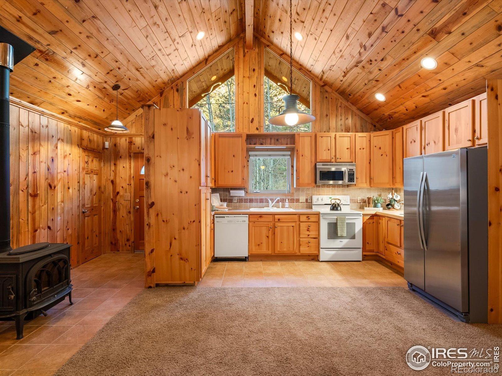 Discover your perfect getaway at 1035 Streamside Drive in Glen Haven, CO! This cozy cabin offers 2 bedrooms and 2 bathrooms spread out over 1,614 square feet, giving you plenty of room to relax. The property is truly something special, sitting on a sprawling lot with a lovely stream running through it, providing peaceful water views right from your backyard. Inside, you'll find a bright and airy great room, complete with high ceilings and big windows that let the sunshine pour in. The kitchen is ready for your culinary adventures with lots of space and a handy stove. Plus, there's an attached garage and a laundry area with a washer and dryer for added convenience. Stay warm and cozy with radiant heating and unwind on the spacious deck as you take in the stunning natural surroundings. It's your own slice of paradise, offering the tranquility of waterfront living with all the comforts you need. Don't miss out on this incredible opportunity to make this retreat your own!