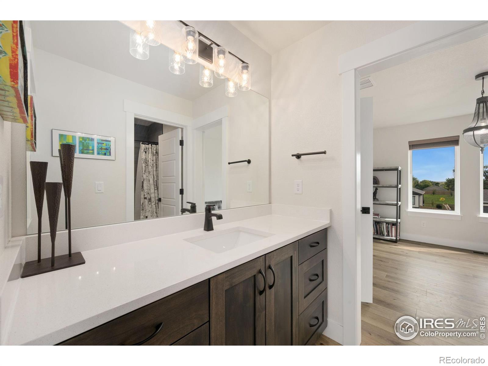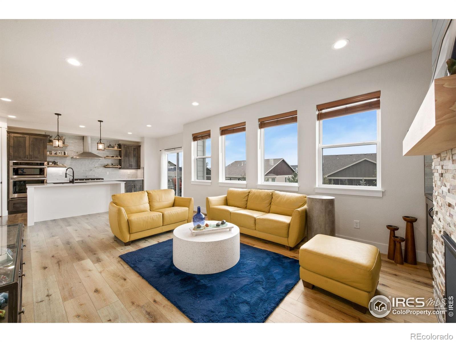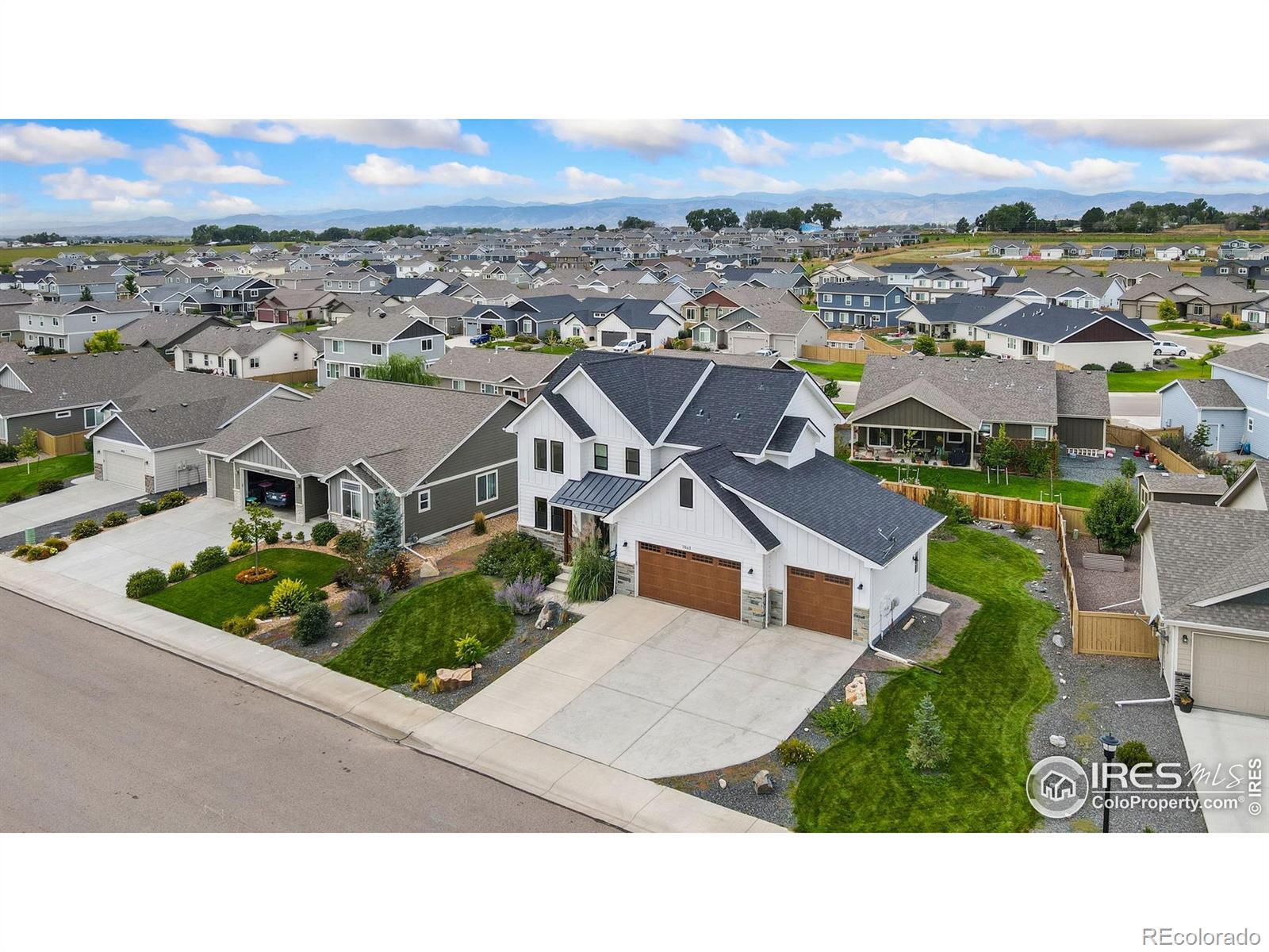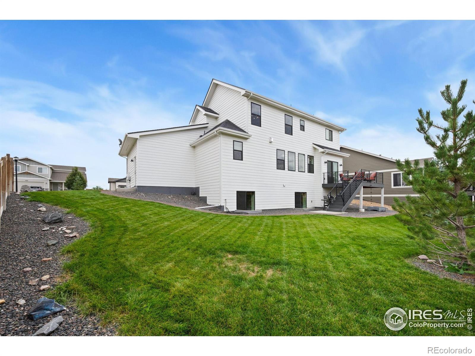 This single-owner, custom-built home in Sage Meadows blends exceptional care, thoughtful design, and high-quality upgrades into one inviting package! Significant improvements were made after purchase, including a finished basement and professional landscaping with a full sprinkler system, making the home feel better-than-new and move-in ready. Inside, the home's modern farmhouse design shines through with 9-foot ceilings, top-of-the-line LVT flooring on all three levels, and sleek black clad windows and patio door. The main living area features a gas fireplace and an easy flow into the kitchen and dining spaces, creating a perfect setting for everyday living and entertaining. The kitchen features stainless steel appliances, expanded cabinetry, quartz countertops, and a pantry to keep your cooking essentials organized. The separate dining area can also double as a secondary living space, depending on your needs. A dedicated office with a built-in hickory desktop provides the perfect workspace. The upper level features a spacious primary suite with tray ceilings, a luxurious 5-piece ensuite bath, and a walk-in closet. Two additional bedrooms share a Jack-and-Jill full bath, adding both privacy and convenience. The garden-level basement adds even more living space with an entertainment area, a fourth bedroom, a full bath, and additional storage space. Outside, the backyard includes a raised deck for outdoor gatherings and relaxation. Irrigation water is included with the HOA, keeping your lawn looking great all season long. The insulated 3-car garage offers plenty of room for cars, tools, and recreational gear. Enjoy community perks with access to an outdoor pool and park, right in the neighborhood. Located in southwest Wellington, this home offers easy access to I-25, making trips to Fort Collins and beyond a breeze. Additional highlights include a Class 4 impact-resistant roof, tankless water heater with circulation line, water softener, and whole-house water filter.