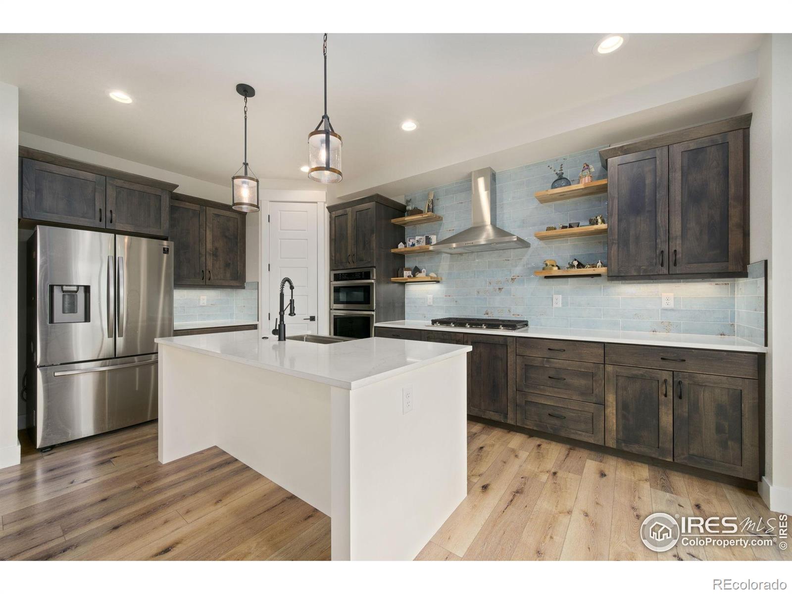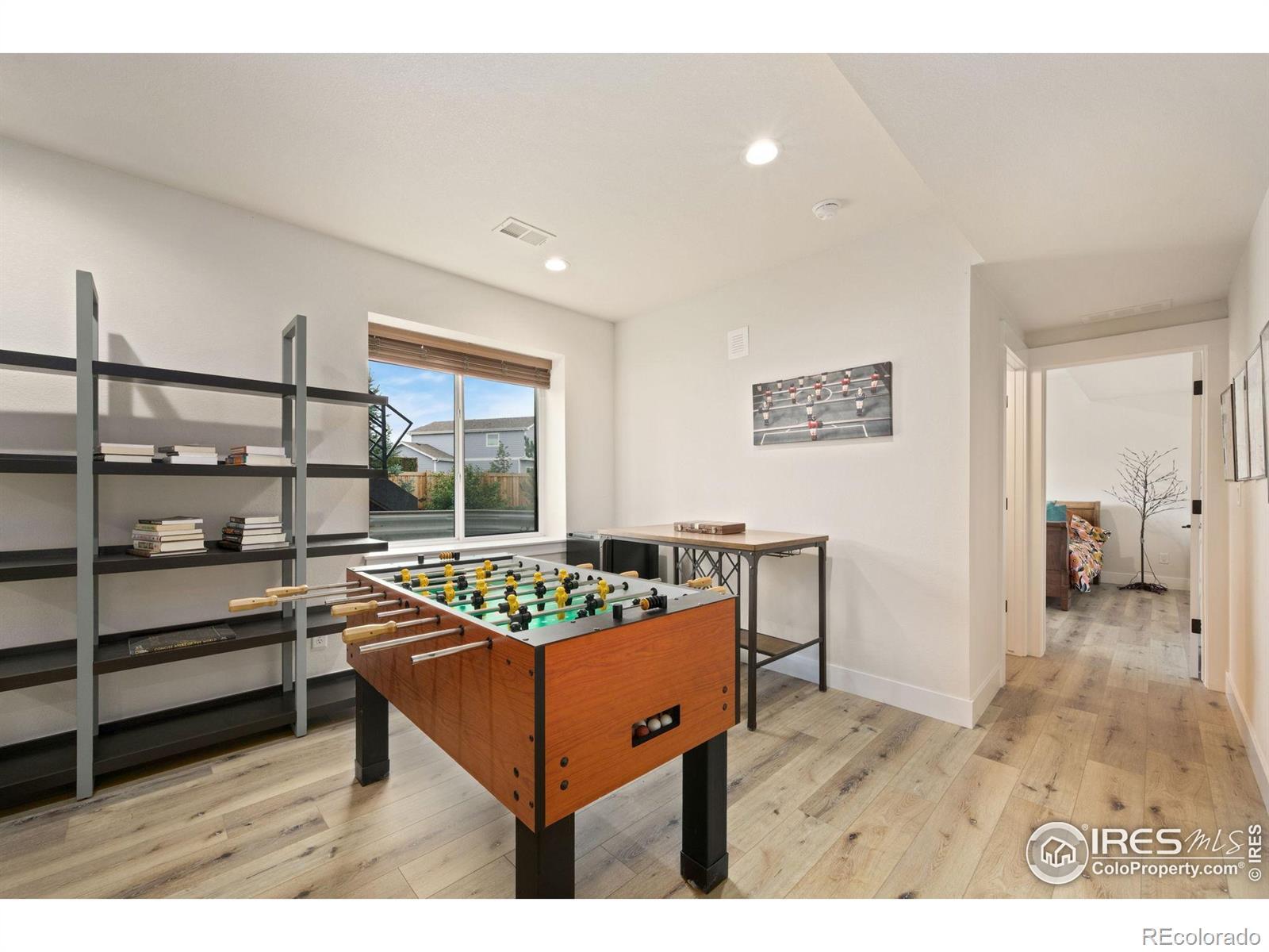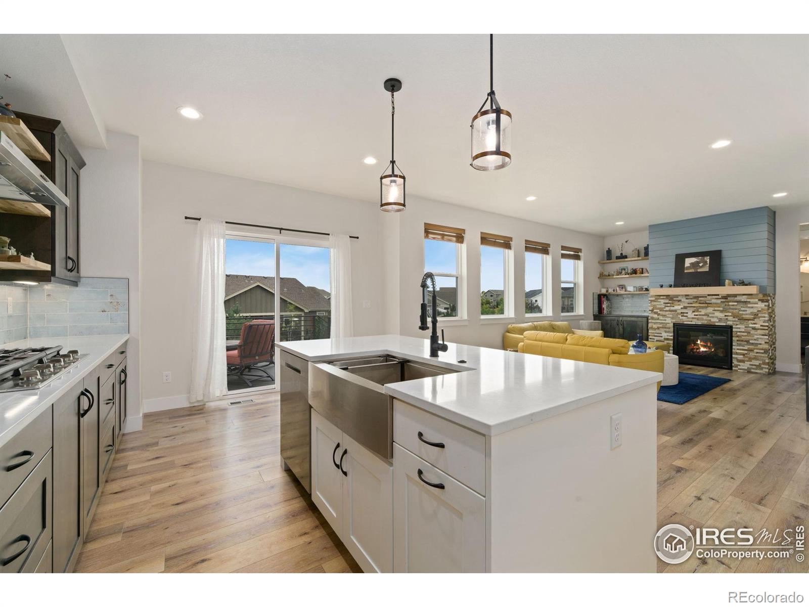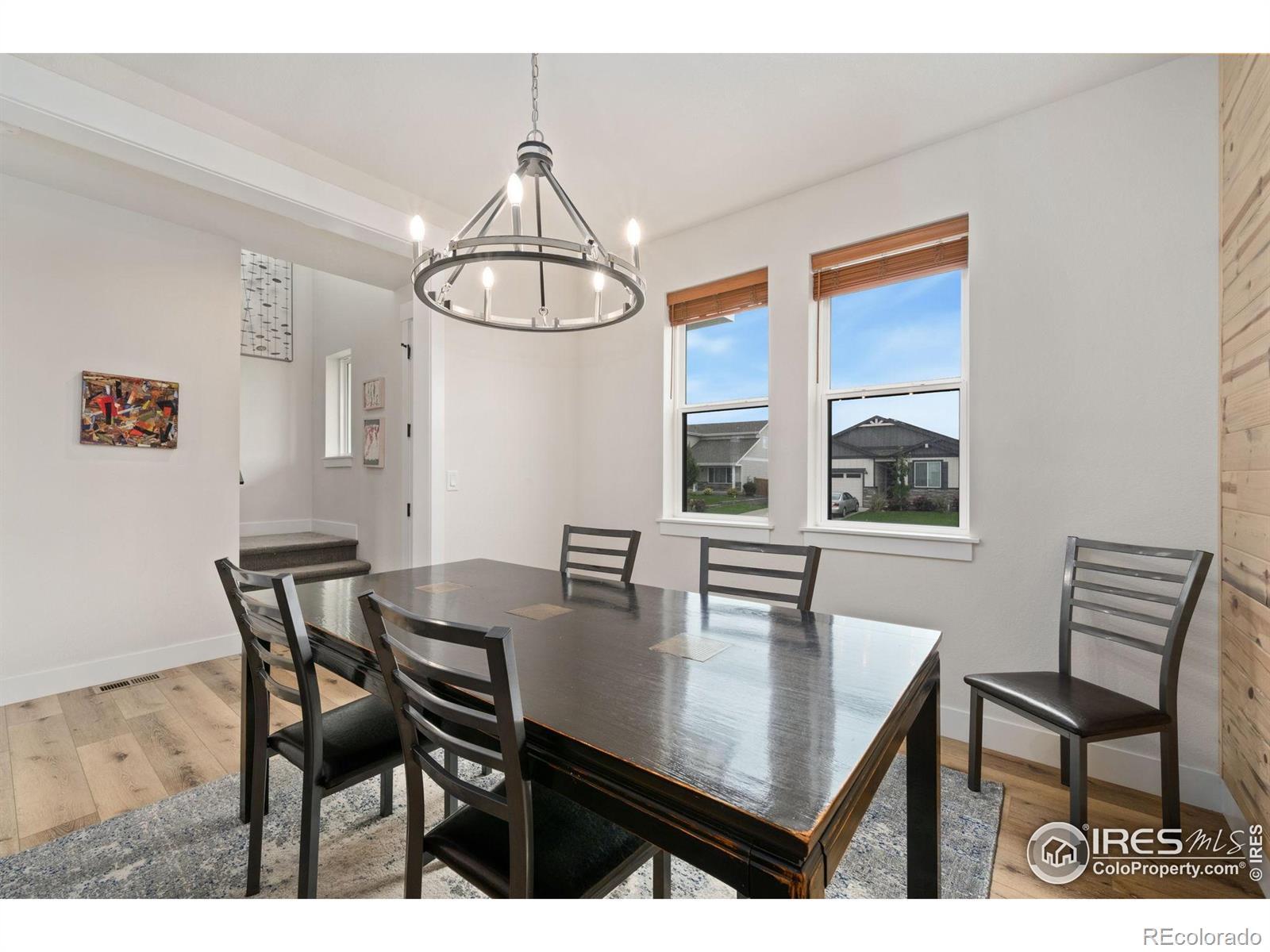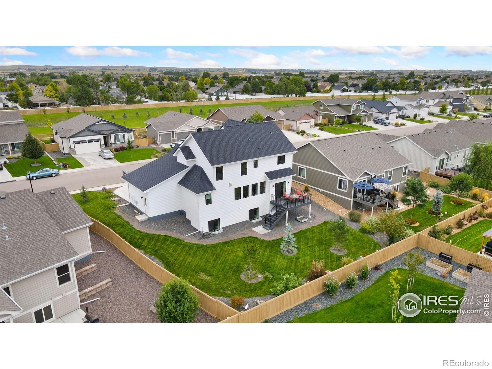 This single-owner, custom-built home in Sage Meadows blends exceptional care, thoughtful design, and high-quality upgrades into one inviting package! Significant improvements were made after purchase, including a finished basement and professional landscaping with a full sprinkler system, making the home feel better-than-new and move-in ready. Inside, the home's modern farmhouse design shines through with 9-foot ceilings, top-of-the-line LVT flooring on all three levels, and sleek black clad windows and patio door. The main living area features a gas fireplace and an easy flow into the kitchen and dining spaces, creating a perfect setting for everyday living and entertaining. The kitchen features stainless steel appliances, expanded cabinetry, quartz countertops, and a pantry to keep your cooking essentials organized. The separate dining area can also double as a secondary living space, depending on your needs. A dedicated office with a built-in hickory desktop provides the perfect workspace. The upper level features a spacious primary suite with tray ceilings, a luxurious 5-piece ensuite bath, and a walk-in closet. Two additional bedrooms share a Jack-and-Jill full bath, adding both privacy and convenience. The garden-level basement adds even more living space with an entertainment area, a fourth bedroom, a full bath, and additional storage space. Outside, the backyard includes a raised deck for outdoor gatherings and relaxation. Irrigation water is included with the HOA, keeping your lawn looking great all season long. The insulated 3-car garage offers plenty of room for cars, tools, and recreational gear. Enjoy community perks with access to an outdoor pool and park, right in the neighborhood. Located in southwest Wellington, this home offers easy access to I-25, making trips to Fort Collins and beyond a breeze. Additional highlights include a Class 4 impact-resistant roof, tankless water heater with circulation line, water softener, and whole-house water filter.