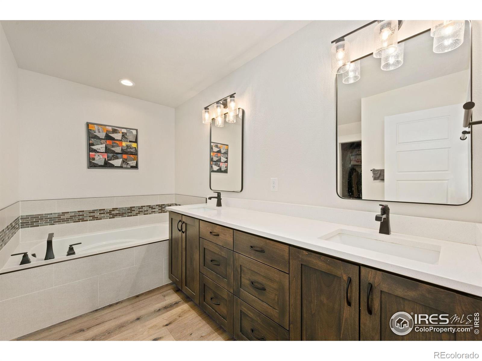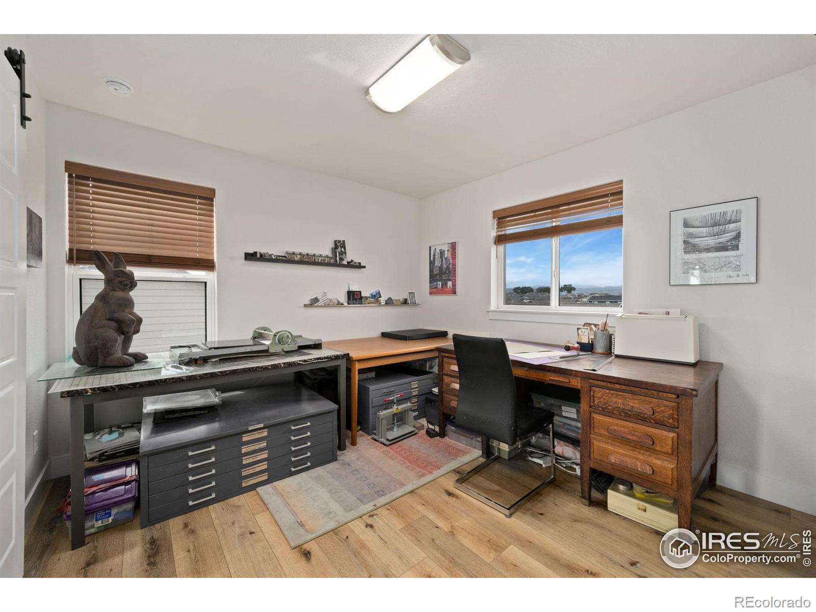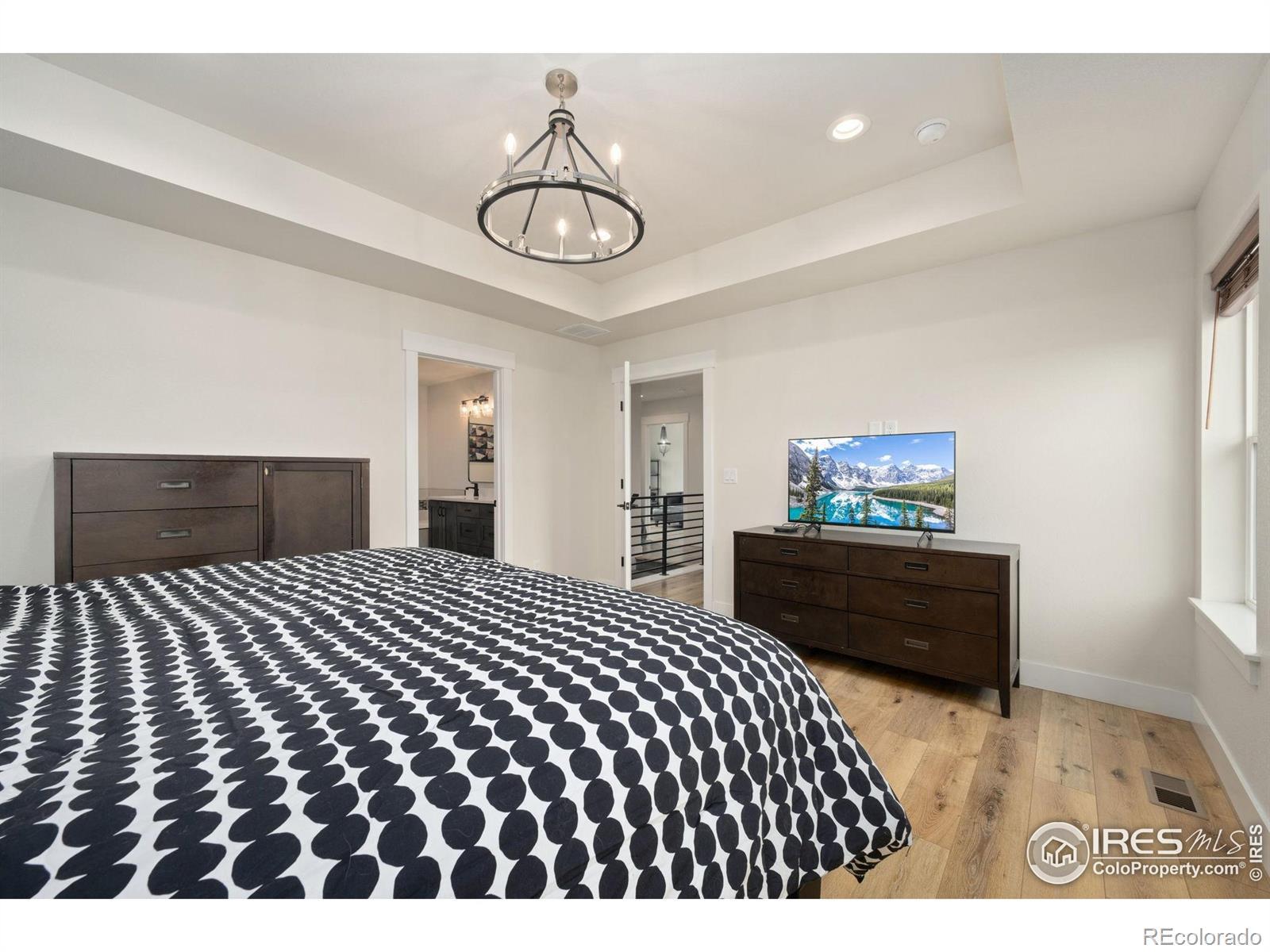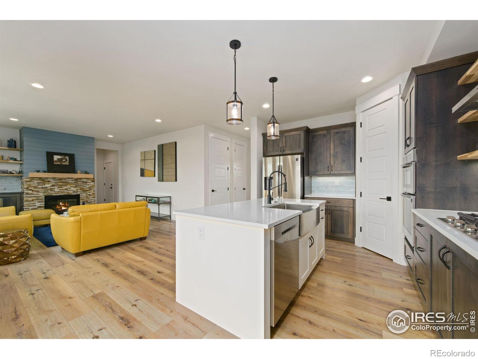 This single-owner, custom-built home in Sage Meadows blends exceptional care, thoughtful design, and high-quality upgrades into one inviting package! Significant improvements were made after purchase, including a finished basement and professional landscaping with a full sprinkler system, making the home feel better-than-new and move-in ready. Inside, the home's modern farmhouse design shines through with 9-foot ceilings, top-of-the-line LVT flooring on all three levels, and sleek black clad windows and patio door. The main living area features a gas fireplace and an easy flow into the kitchen and dining spaces, creating a perfect setting for everyday living and entertaining. The kitchen features stainless steel appliances, expanded cabinetry, quartz countertops, and a pantry to keep your cooking essentials organized. The separate dining area can also double as a secondary living space, depending on your needs. A dedicated office with a built-in hickory desktop provides the perfect workspace. The upper level features a spacious primary suite with tray ceilings, a luxurious 5-piece ensuite bath, and a walk-in closet. Two additional bedrooms share a Jack-and-Jill full bath, adding both privacy and convenience. The garden-level basement adds even more living space with an entertainment area, a fourth bedroom, a full bath, and additional storage space. Outside, the backyard includes a raised deck for outdoor gatherings and relaxation. Irrigation water is included with the HOA, keeping your lawn looking great all season long. The insulated 3-car garage offers plenty of room for cars, tools, and recreational gear. Enjoy community perks with access to an outdoor pool and park, right in the neighborhood. Located in southwest Wellington, this home offers easy access to I-25, making trips to Fort Collins and beyond a breeze. Additional highlights include a Class 4 impact-resistant roof, tankless water heater with circulation line, water softener, and whole-house water filter.