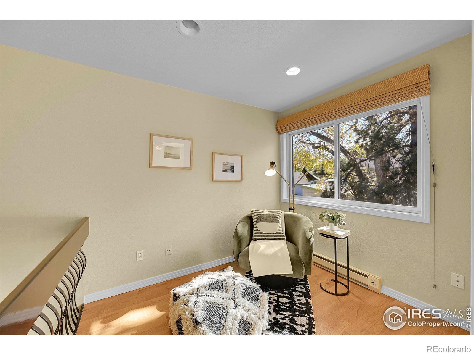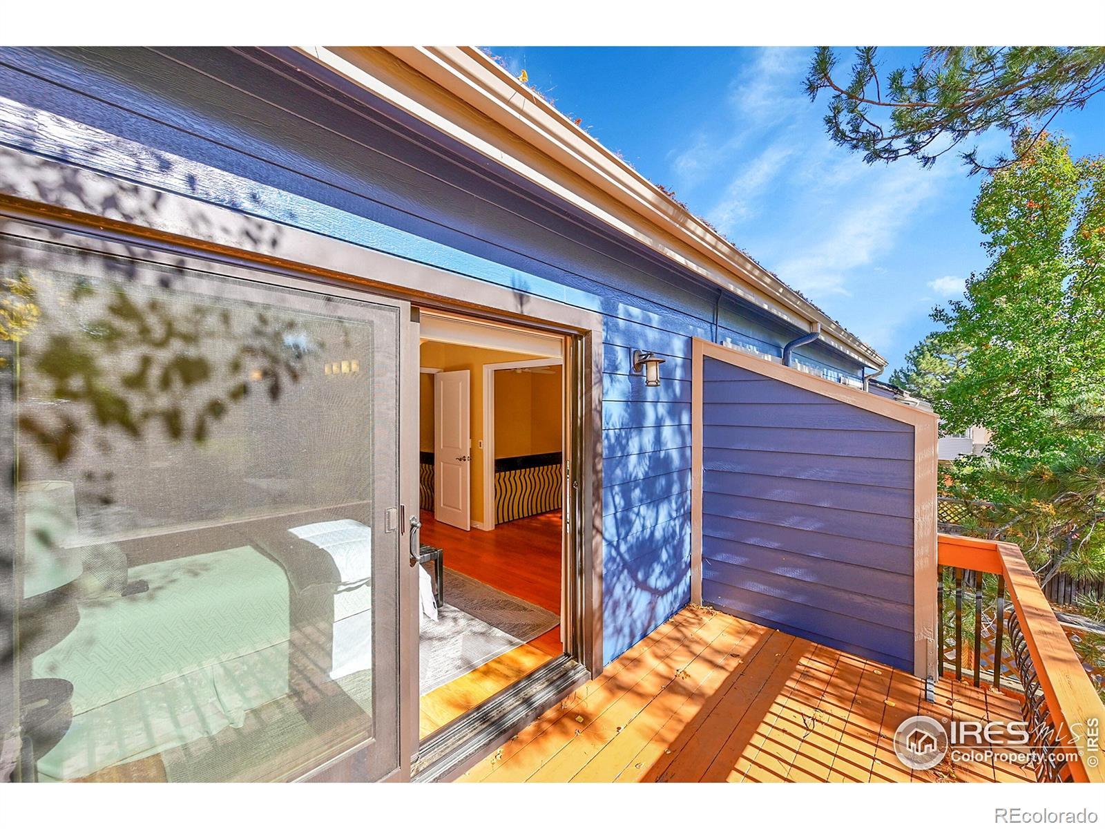 Experience Boulder's Best at Wonderland Lake. Ideally situated near Wonderland Lake Park and scenic trails, with shopping, dining, and Lucky's Market just a block away, this one-of-a-kind townhouse blends sophisticated design with everyday convenience. Reimagined with an upper-level primary suite, it offers a private terrace and a flexible lounge or home office area. A former bedroom now serves as a luxurious walk-in closet and laundry-easily converted back to a third bedroom if desired. The spa-inspired bath features a deep soaking tub for the ultimate retreat. Vaulted ceilings, wood floors, and a wood-burning fireplace fill the main living area with warmth and natural light. The kitchen delights with granite countertops, bar seating, and a built-in buffet perfect for entertaining. Step outside to a generous flagstone patio surrounded by lush, irrigated landscaping and a private gate for easy outdoor access. The lower level adds flexibility with a spacious bedroom, full bath, walk-in closet, and abundant storage. An attached one-car garage completes this rare Boulder offering where luxury, lifestyle, and location converge.