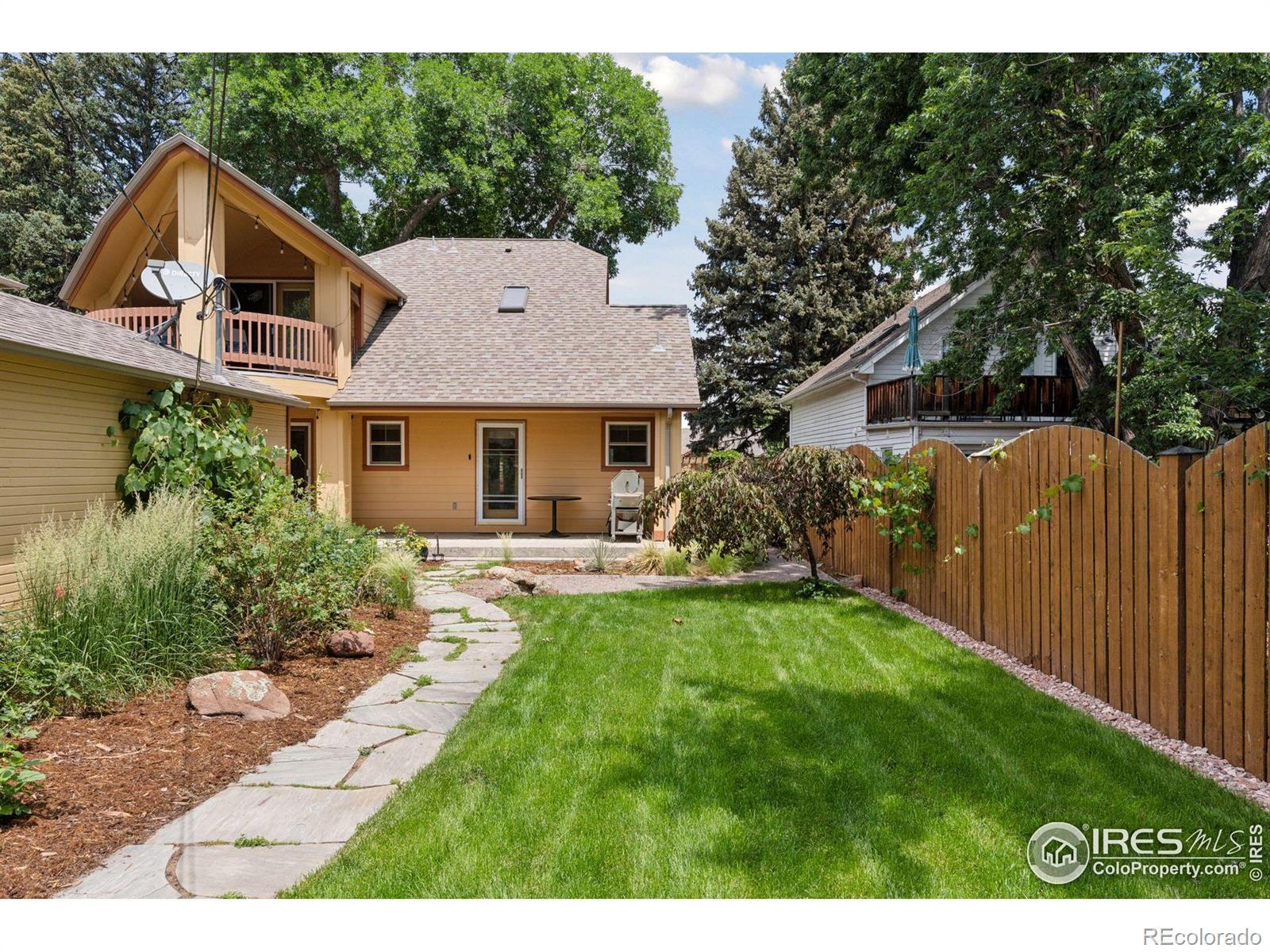 Charming lower Chautauqua 2-story craftsman-style bungalow with beautiful landscaping and a nice fenced backyard. Just down the road from Chautauqua Park and close to the University of Colorado campus. Thoughtful and creative architecture seamlessly blends the original 1950 bungalow with the delightful 2-story addition completed in 2000. 3 main floor bedrooms. Spacious rear patio is covered, and the upper deck above is also covered with private access off the primary suite. The comfortable media room in the basement offers entertainment/library built-ins and a wonderful queen-size Murphy bed for a 5th bedroom with a private 3/4 bath for your out-of-town guests. Pathways of beautiful Cathedral gray slate lead to the front entry and meander throughout the outdoor areas. The detached single-car garage and additional parking pad are accessed from the lush rear alleyway. No projects to undertake here - this home is perfect as is and ready to move into now!!