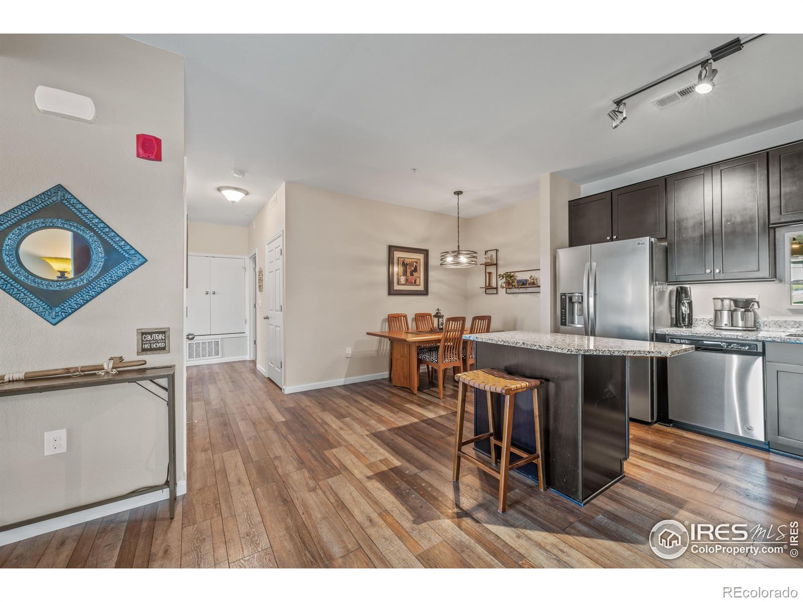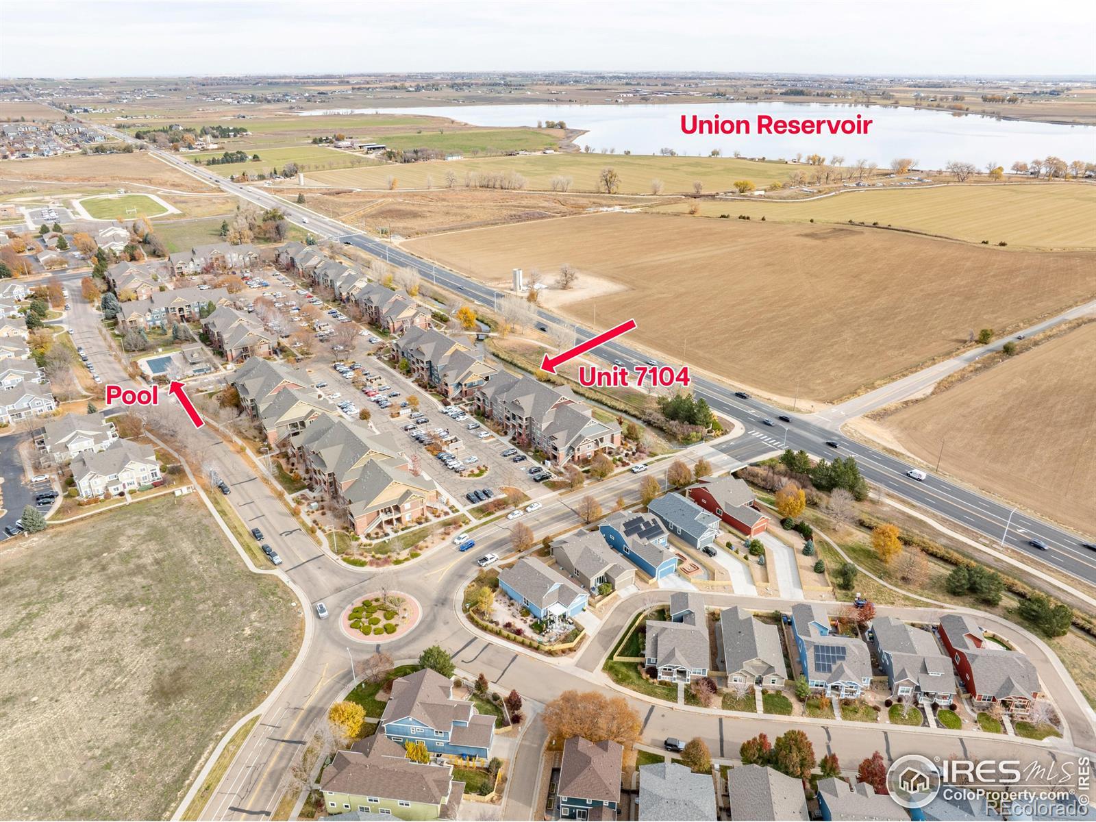 Well-maintained ground-floor condo featuring updated finishes throughout. This spacious unit offers three bedrooms, including one non-conforming bedroom (no egress window), providing flexible options for a home office or guest space. Enjoy the morning sun and scenic views of Union Reservoir from the back patio-just a short walk away for recreation and relaxation. Pool is included with amenities. Conveniently located on Longmont's east side, offering easy access for commuting north or south, and close to shopping, Longs Peak Hospital, and Fox Hill Golf Course. A perfect blend of comfort, convenience, and Colorado living.