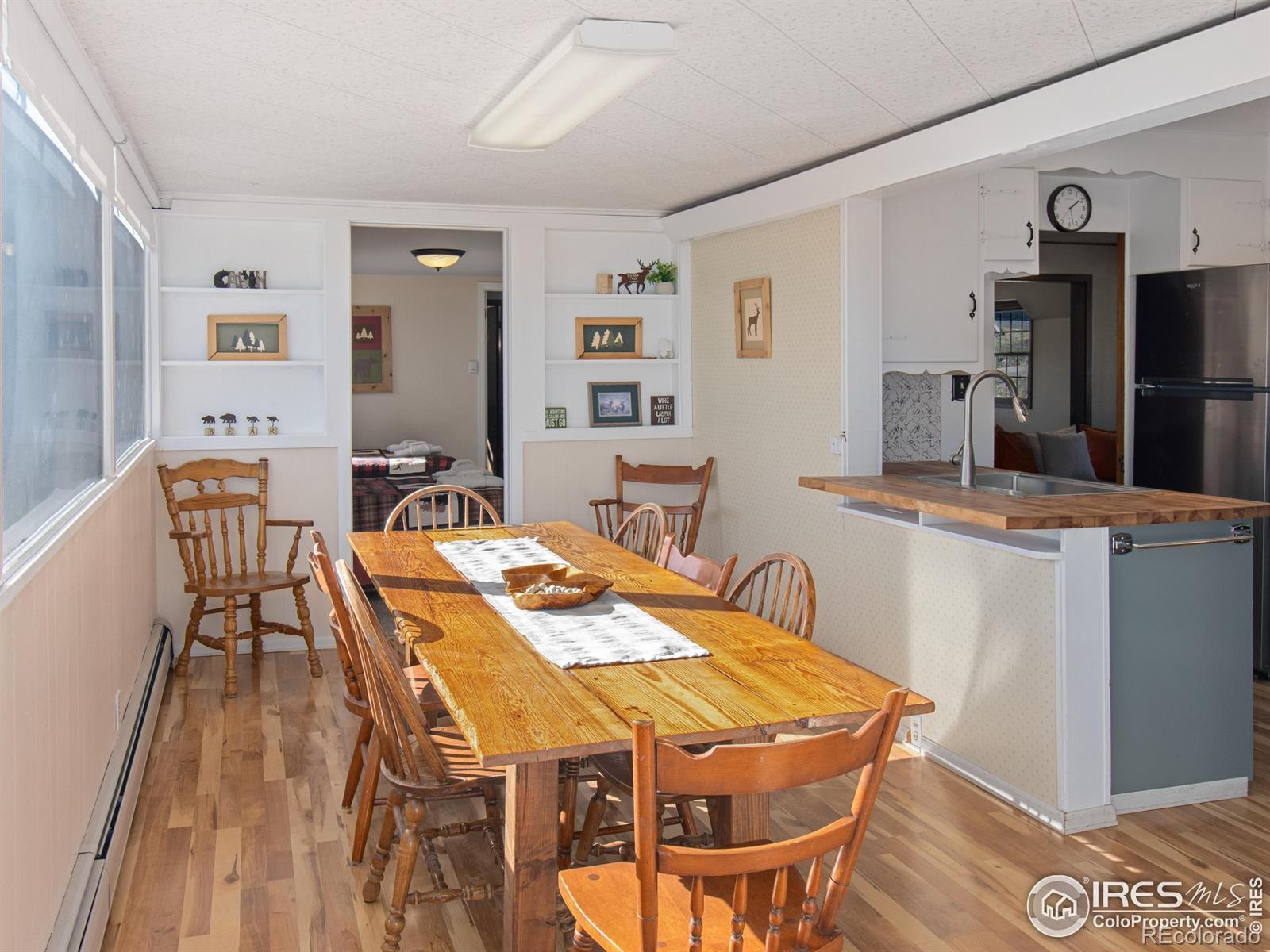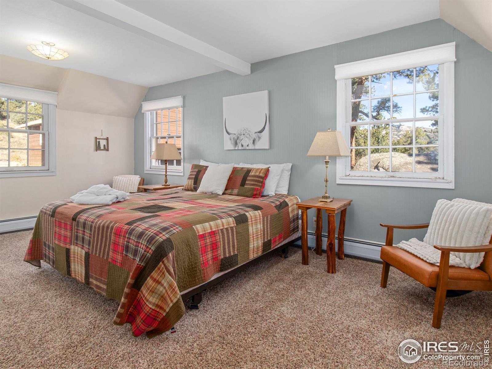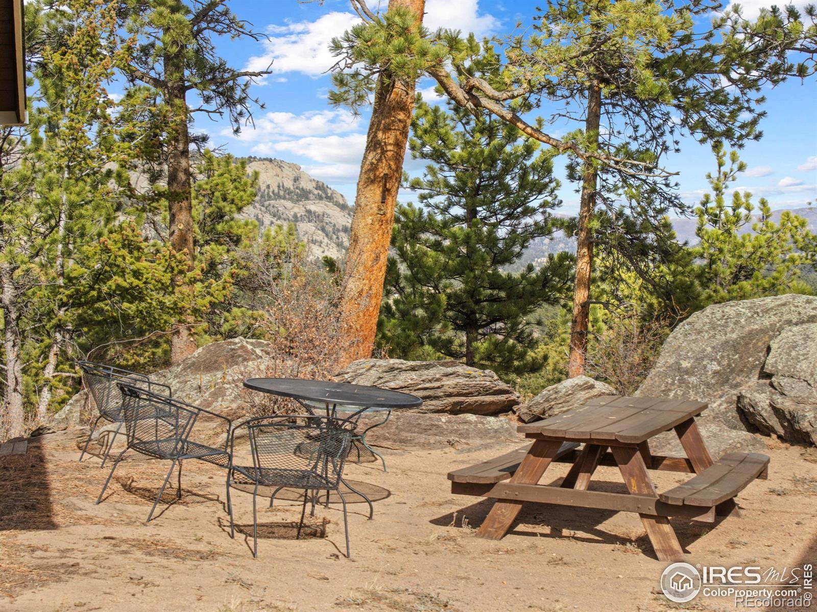 Classic cottage in Estes Park! With views to Lake Estes and the surrounding mountains, this licensed, transferable SHORT TERM RENTAL makes for a great place to own in the mountains. Located in a quiet part of town and just minutes from shopping, restaurants, rec center and more, this 2166sf offers a three bedroom layout, sunny dining room with those views, lots of built-ins and a native sandstone fireplace to add to the ambiance. Detached garage with space for a great home office/rec room/guest suite to renovate, and an inviting side yard that is perfect for gathering around the campfire. .8/acre Lot with rock formations and mature trees completes the package. New roof and exterior paint in 2025. Ready to enjoy and rent-out at $795,000, furnished.