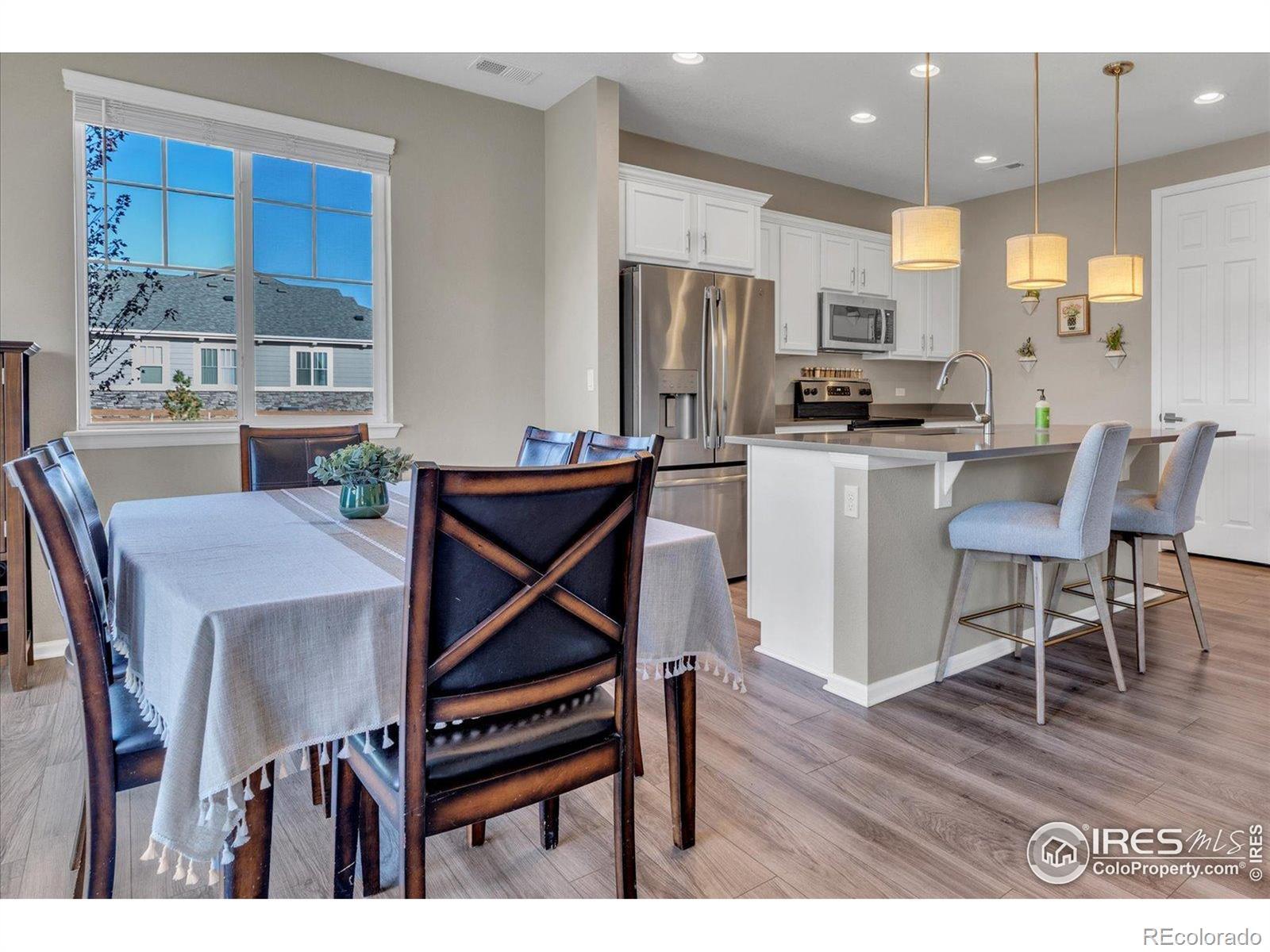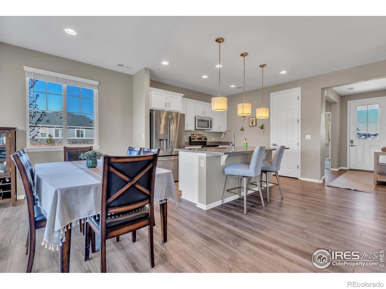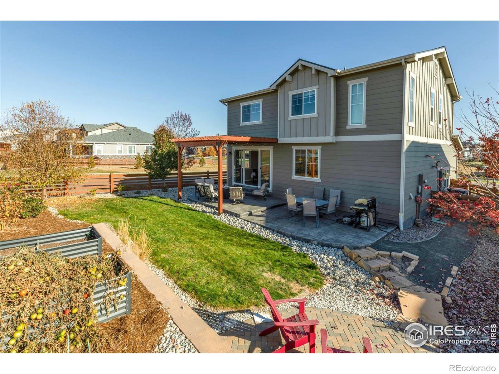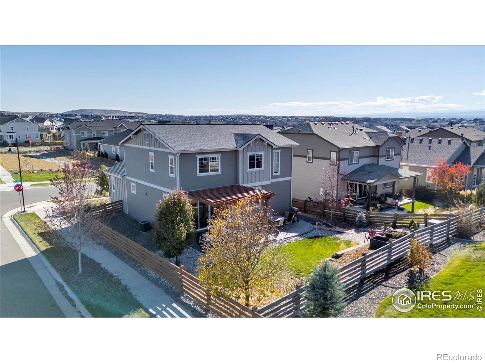 Welcome Home to Colliers Hill in Erie! This beautiful home sits on a desirable corner lot just steps from open space and neighborhood trails. Enjoy a fully mature backyard with lush landscaping that has been meticulously maintained and designed for both privacy and comfort. The home's south-facing orientation fills it with natural light, and the spacious two car garage adds convenience and functionality. Inside, you'll find four bedrooms and three bathrooms with luxury vinyl flooring throughout the main level. The kitchen features a large island, stainless steel appliances, and plenty of room for both casual dining and entertaining. The cozy living room offers the perfect place to relax, while a main-level bedroom or office and a powder bath add flexibility for guests or work-from-home needs. Step through the sliding patio doors into your own backyard oasis, complete with garden beds, a stone patio, and mature trees that provide both shade and serenity. Upstairs, the primary suite is a true retreat with a spacious layout, modern ensuite bathroom, double vanities, and a large walk-in shower. Two additional bedrooms, a full bathroom, and a conveniently located laundry area complete the upper level. Living in Colliers Hill means access to exceptional amenities, including two pools, two fitness centers, parks, playgrounds, and miles of trails. Located within close proximity to Erie High School and just minutes from charming downtown Erie, this neighborhood is as vibrant and welcoming as it is beautiful. Don't miss your opportunity to live in one of Erie's most sought-after communities. Schedule your showing today!