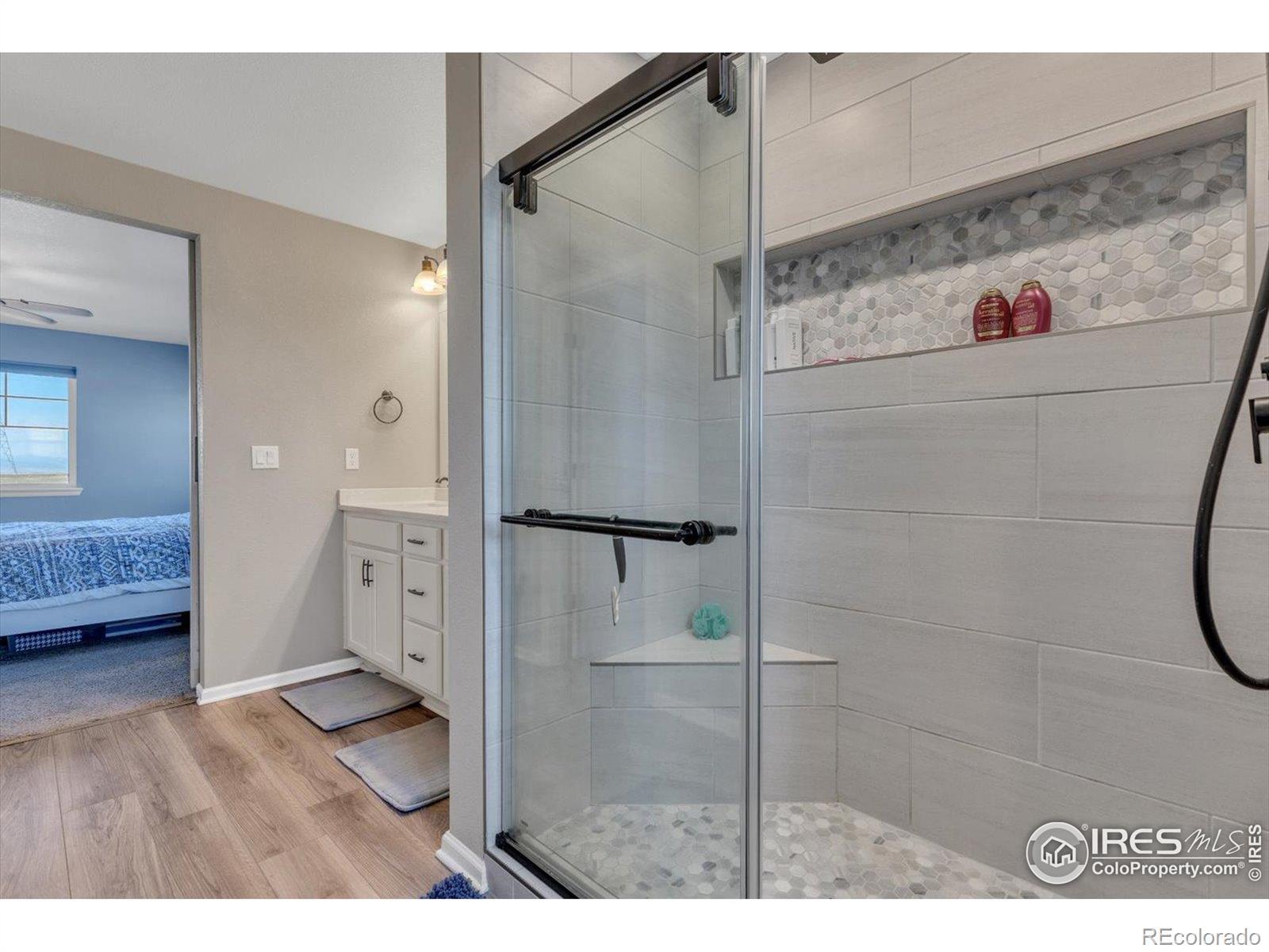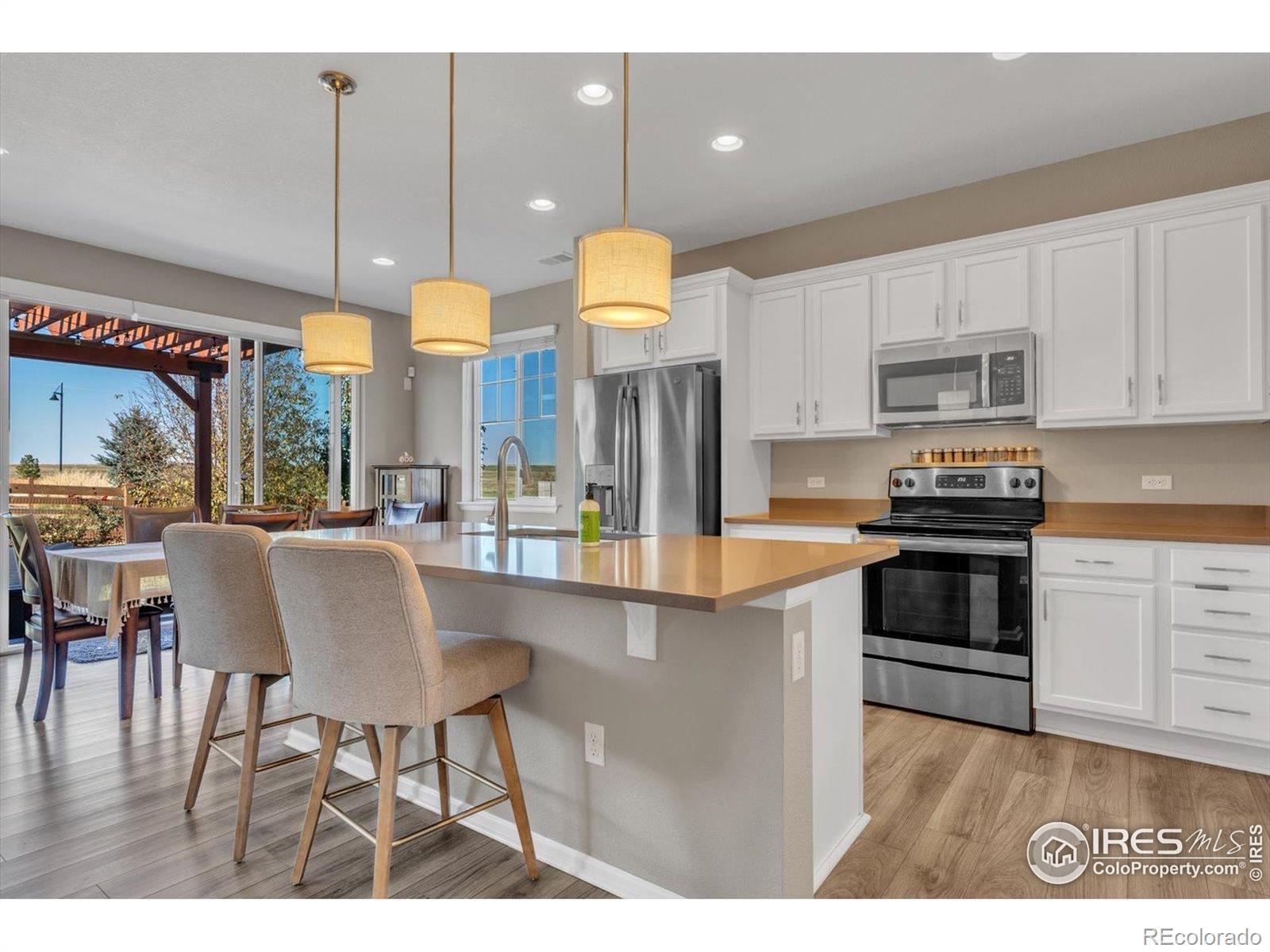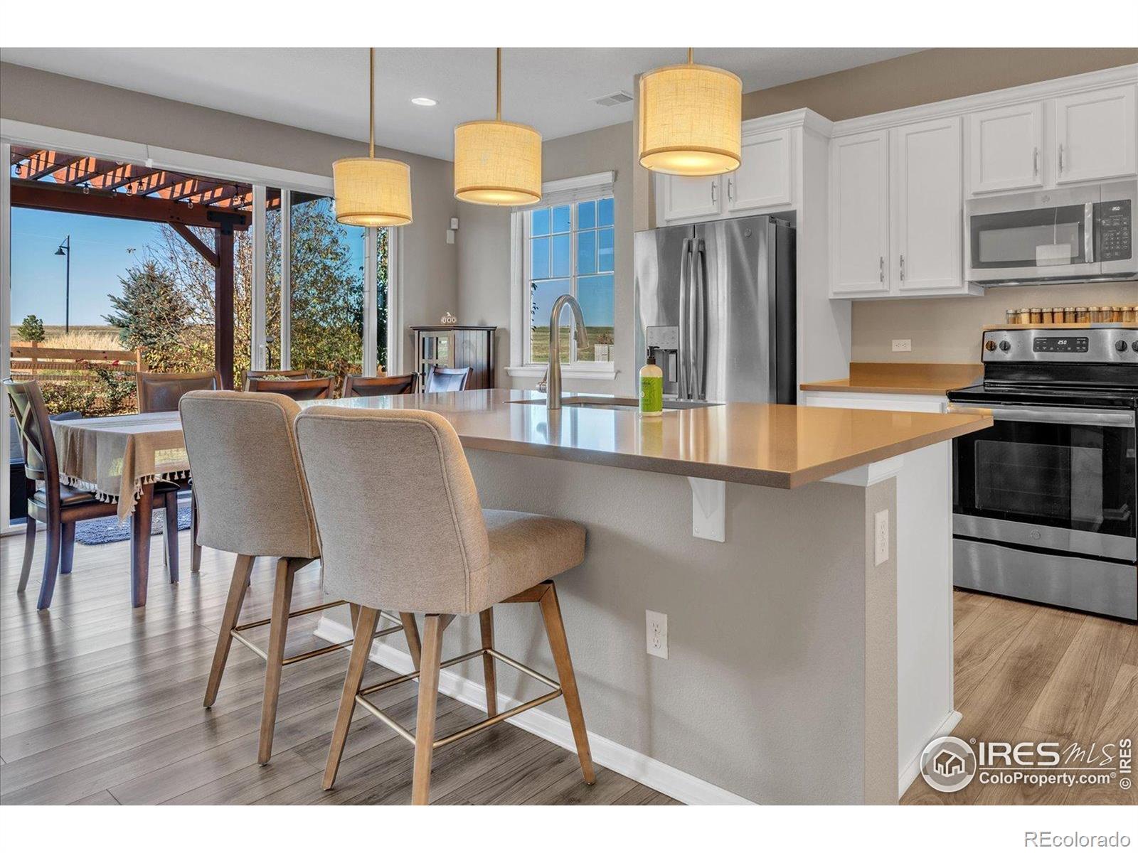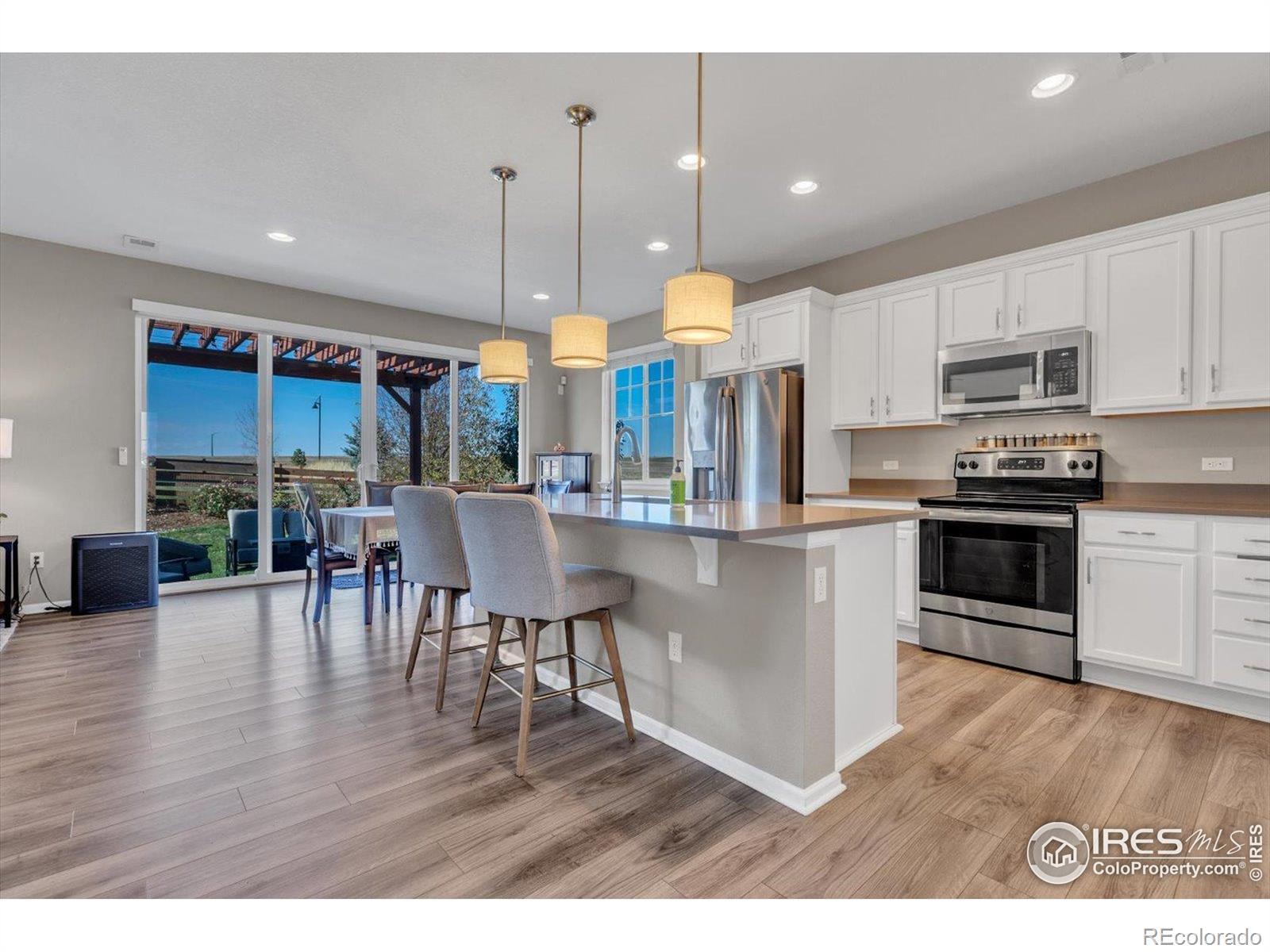 Welcome Home to Colliers Hill in Erie! This beautiful home sits on a desirable corner lot just steps from open space and neighborhood trails. Enjoy a fully mature backyard with lush landscaping that has been meticulously maintained and designed for both privacy and comfort. The home's south-facing orientation fills it with natural light, and the spacious two car garage adds convenience and functionality. Inside, you'll find four bedrooms and three bathrooms with luxury vinyl flooring throughout the main level. The kitchen features a large island, stainless steel appliances, and plenty of room for both casual dining and entertaining. The cozy living room offers the perfect place to relax, while a main-level bedroom or office and a powder bath add flexibility for guests or work-from-home needs. Step through the sliding patio doors into your own backyard oasis, complete with garden beds, a stone patio, and mature trees that provide both shade and serenity. Upstairs, the primary suite is a true retreat with a spacious layout, modern ensuite bathroom, double vanities, and a large walk-in shower. Two additional bedrooms, a full bathroom, and a conveniently located laundry area complete the upper level. Living in Colliers Hill means access to exceptional amenities, including two pools, two fitness centers, parks, playgrounds, and miles of trails. Located within close proximity to Erie High School and just minutes from charming downtown Erie, this neighborhood is as vibrant and welcoming as it is beautiful. Don't miss your opportunity to live in one of Erie's most sought-after communities. Schedule your showing today!