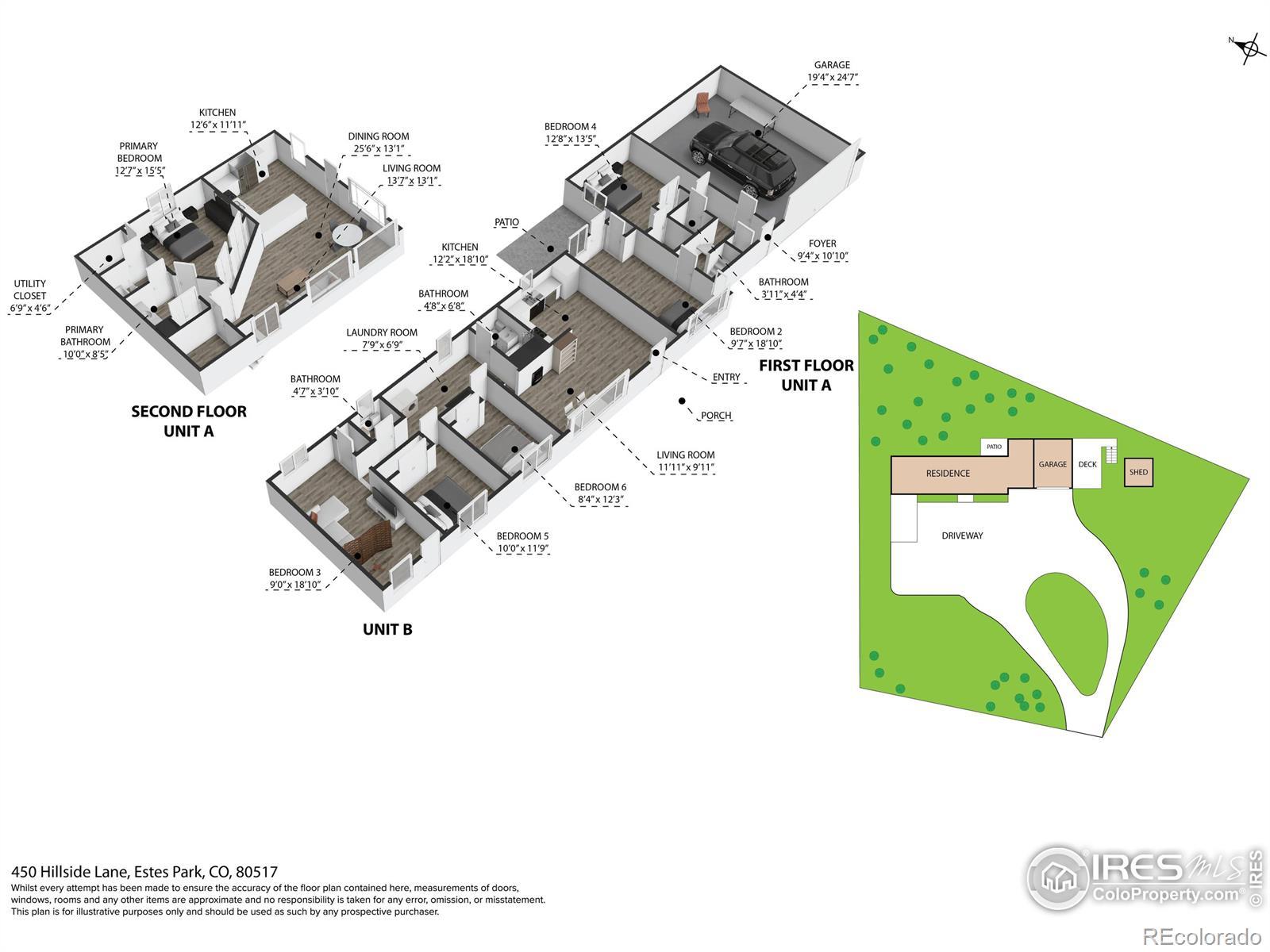 Enjoy sweeping mountain views of the Continental Divide from this beautifully situated Estes Park Duplex home, perfectly positioned just minutes from Lake Estes and bike path trails. Sun-filled living spaces highlight the natural surroundings, while the open layout provides a warm and inviting feel throughout. This is a rare duplex investment opportunity in Estes Park. This property has two 3-bedroom units. Unit A has 2 car garage attached and Unit B has a seperate private parking in front of the unit. All city utilities, abundant parking, .77 acres and Zoned R-2. Potential to live in one unit and rent out the other, rent out both units. Possibility to combine A and B units and build a second dwelling, check with Estes Park Planning on details. The property is easy walking to the 9 hole golf course, Lake Estes Trail system and downtown. Great for long term rentals or staff housing. There is lots of room to expand in a great end of the road location. Very nice value for 2 units located in the center of Estes Park!