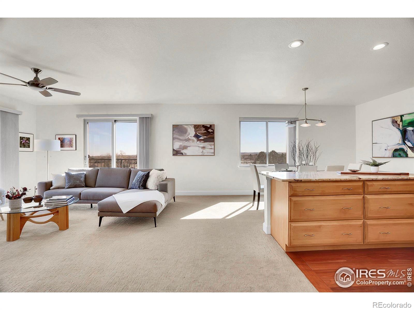 Stunning Vistoso Penthouse! Great price and unbeatable price per square foot. Rarely available, exceptionally maintained, and spacious 2 bedroom plus a study, 2 bath Penthouse condo, with mountain views and lots of natural light! Beautifully upgraded kitchen and primary bathroom, California closets, NEW triple pane windows, high-end sliding glass doors, and all new interior paint make this home warm, welcoming and move in ready. A large and very private 500+ sq ft rooftop deck is all yours for enjoying views of the foothills, and relaxing time outside for coffee or entertaining, and watching the beautiful Boulder sunsets. This special unit in a secure building is perfect to "lock and leave" with elevator access to and from an oversized parking space and a huge private storage closet in the heated underground garage. Great Boulder location and great community!