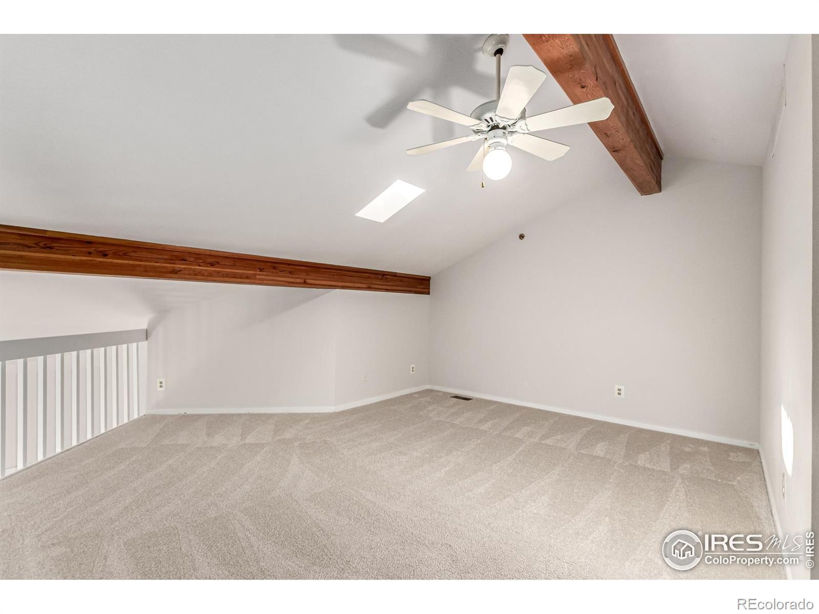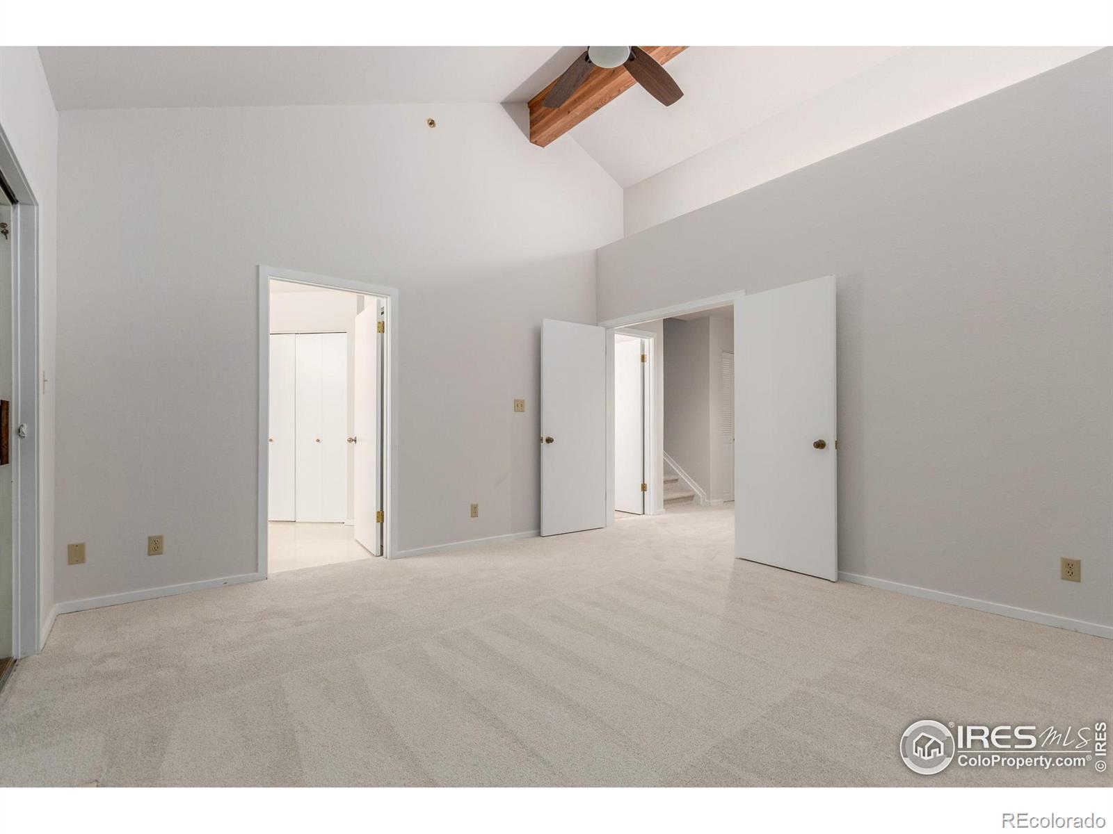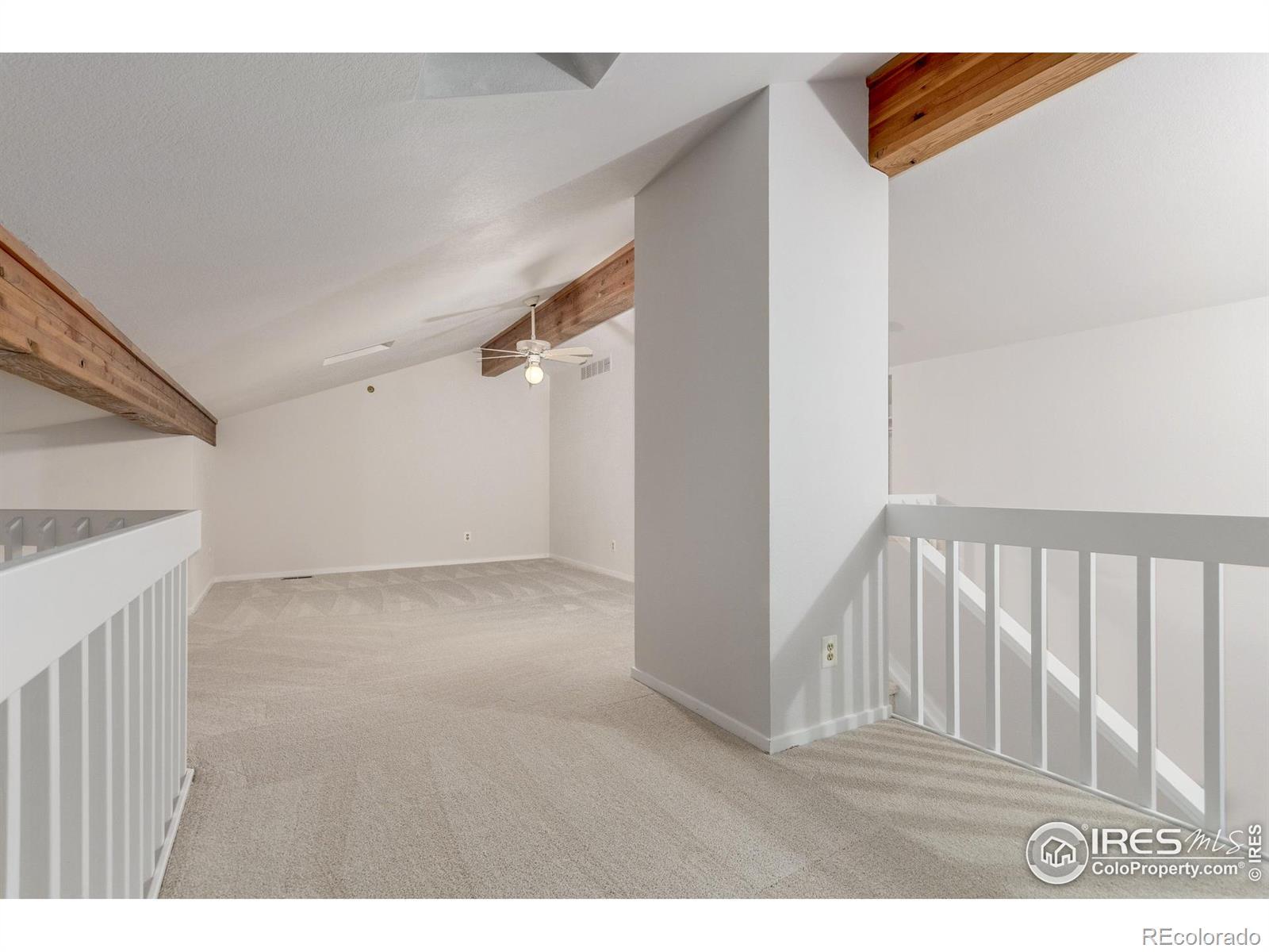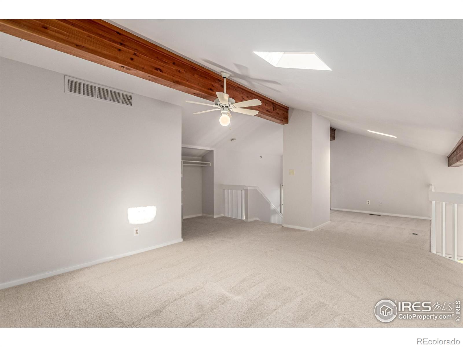 Welcome to this sun-filled end-unit condo at The Villas! Fresh paint and brand new carpet - step into the inviting living room with soaring ceilings, abundant natural light, and a cozy fireplace for chilly Colorado evenings. The updated kitchen features a Sub-Zero refrigerator, Bosch Dishwasher, maple cabinets, Corian countertops, oak floors, tile backsplash, recessed lighting, and plenty of cabinetry for all your culinary needs. The main-level primary suite offers vaulted ceilings, a private bath with dual sinks, and a spacious walk in closet. Upstairs, the loft-style second bedroom includes its own full bath and flexible layout, perfect for guests, a home office, or media space. Enjoy two private balconies with peaceful views, plus secure underground parking (additional space available through the HOA for just $25/month). The well-managed HOA includes access to heated driveways, an elevator, extra storage, bike parking, and access to the Henley Apartments' indoor pool and fitness center. Quiet, bright, and secure-with east and south-facing windows and no routine foot traffic. Close to parks, schools, shops, dining, and easily accessible -this hidden gem checks every box!