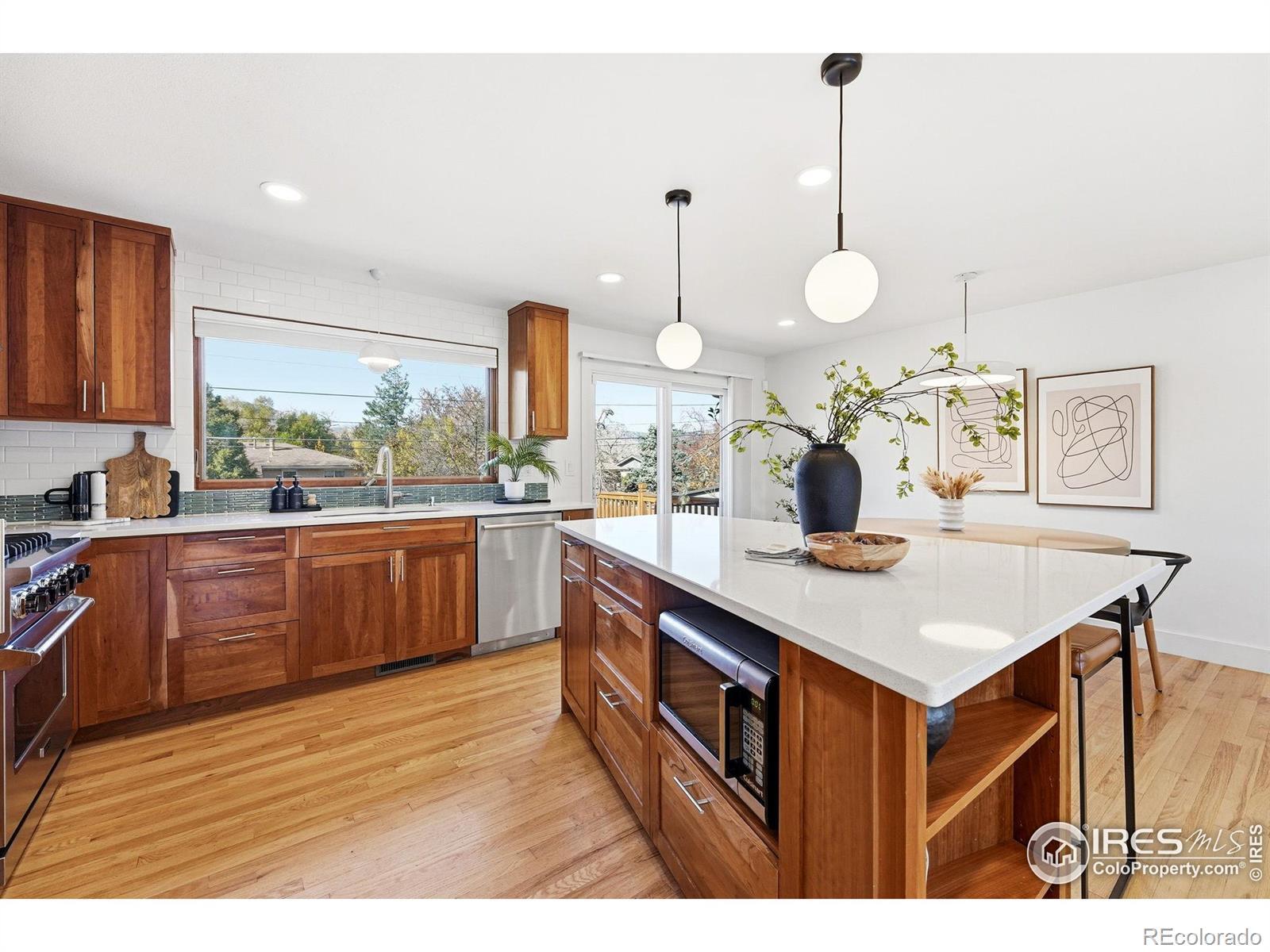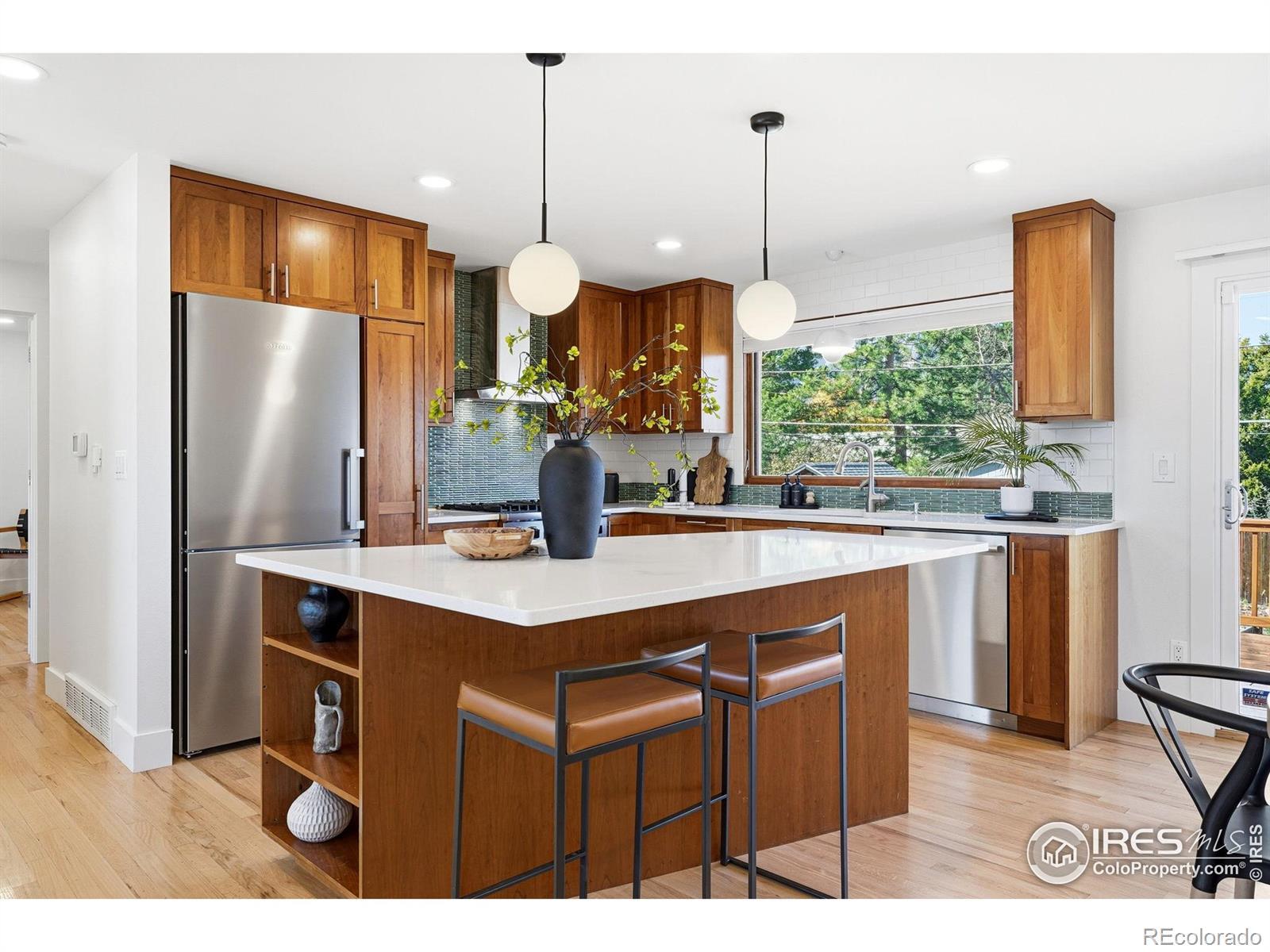 Welcome to a truly special home in Park East, just steps from BCSIS and miles of multi-use paths connecting you to parks, schools, restaurants, and shopping. This home blends modern comfort with thoughtful updates throughout. The upper level offers an open, light-filled layout ideal for everyday living and entertaining, and the primary suite provides a luxurious and private retreat.The Sellers purchased at a premium during the competitive COVID market and have since invested over $100,000 in improvements, including new insulation, siding and gutters, a new stucco chimney surround, a rebuilt upper deck, new interior doors upstairs, new blinds, new stair railings, a new front door, upgraded appliances, and many new windows. The home also features a newer driveway, furnace, air conditioning, garage door, and sewer line for worry-free ownership. On the lower level, two bedrooms include custom built-ins that can be easily removed if desired.The spacious backyard features garden boxes and a newly rebuilt deck with views of the Flatirons, creating the perfect outdoor living space. Convenient access to Highway 36 makes commuting a breeze. This is a beautifully upgraded home in an ideal Boulder location, ready to welcome its next owners.