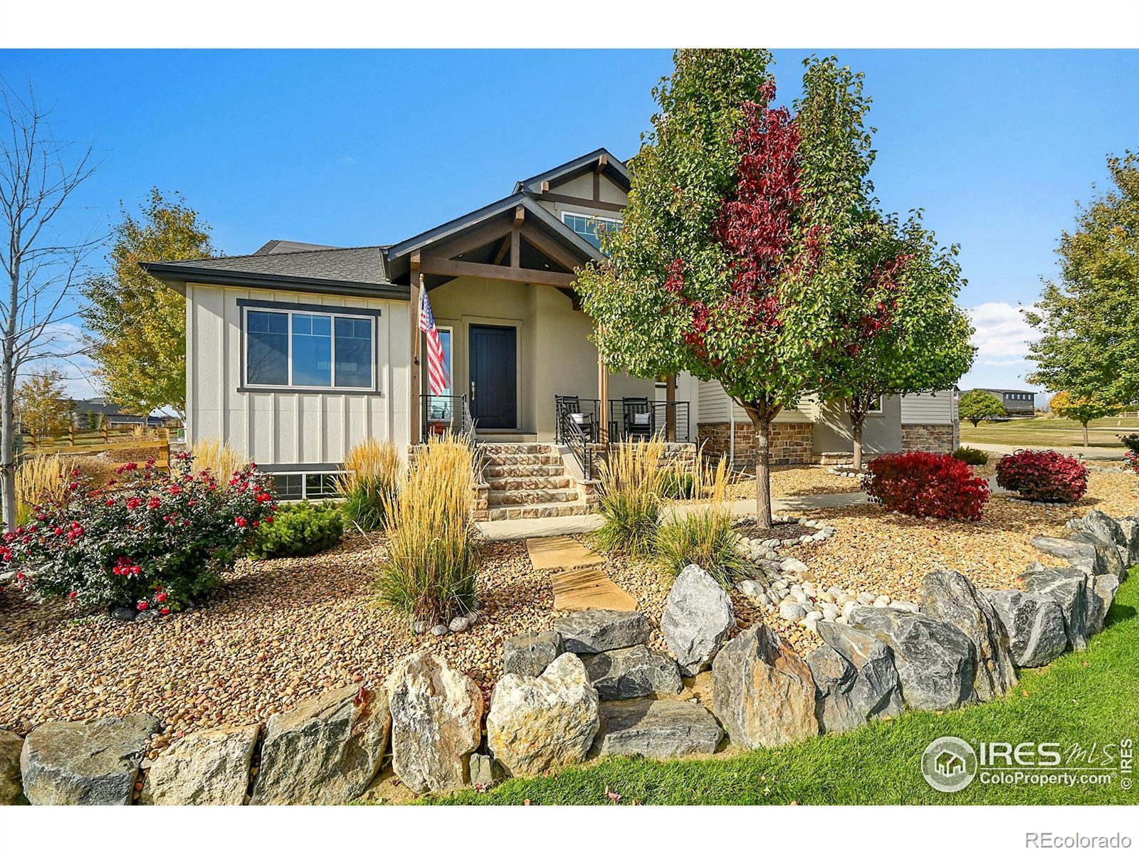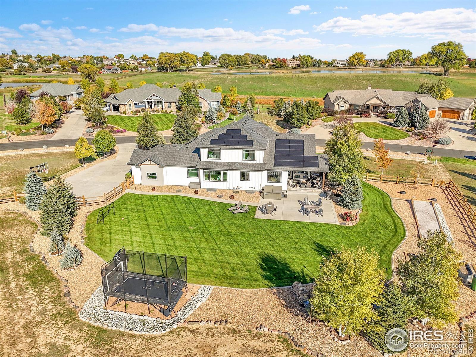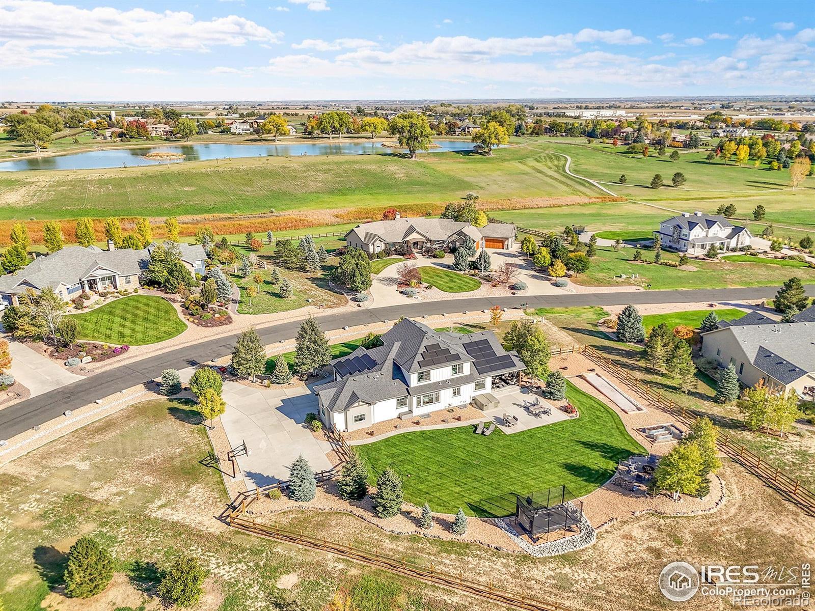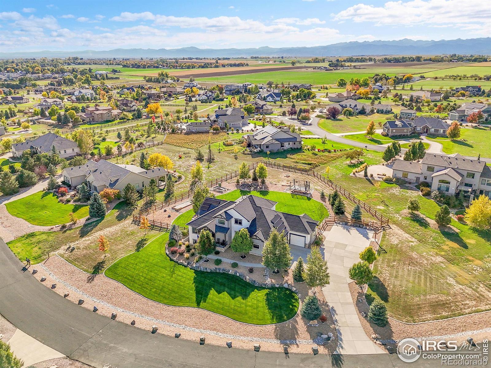 Experience the best of Colorado living in this custom-built retreat in the coveted Vale View community of Mead - where every home is unique, every lot is spacious, and every sunset feels like a painting. Perfectly positioned on a private 1.04-acre corner lot, this property offers the serenity of the foothills with unbeatable convenience - just 30 minutes to Boulder or Fort Collins and 45 minutes to Denver or DIA.From the moment you arrive, the home's meticulous landscaping makes a lasting impression. A curated mix of aspens, evergreens, and natural stone flows seamlessly to a private backyard sanctuary featuring a covered patio, two firepits, bocce ball, basketball court, horseshoes, raised garden beds, and wide-open lawn - all designed for effortless outdoor living and entertaining.Inside, modern elegance meets natural warmth with vaulted wood-beamed ceilings, a sleek linear fireplace, and rich oak floors throughout. The chef's kitchen shines with Bosch appliances, granite countertops, wine refrigerator, walk-in pantry, and a large island framed by windows that fill the home with light. The main-floor primary suite offers resort-level comfort with a five-piece bath, freestanding soaking tub, and generous walk-in closet, while upstairs you'll find two bedrooms, a Jack & Jill bath, and an inviting loft.Downstairs, a fully finished basement adds versatility with a large recreation room, custom media wall, two bedrooms, two full baths, home gym, and ample storage. The three-car garage features epoxy floors, EV charging, and backup battery power, complemented by owned solar panels and high-efficiency systems. With access to private neighborhood lakes and trails, no metro tax, and top-rated schools, this home captures the Colorado lifestyle at its finest.