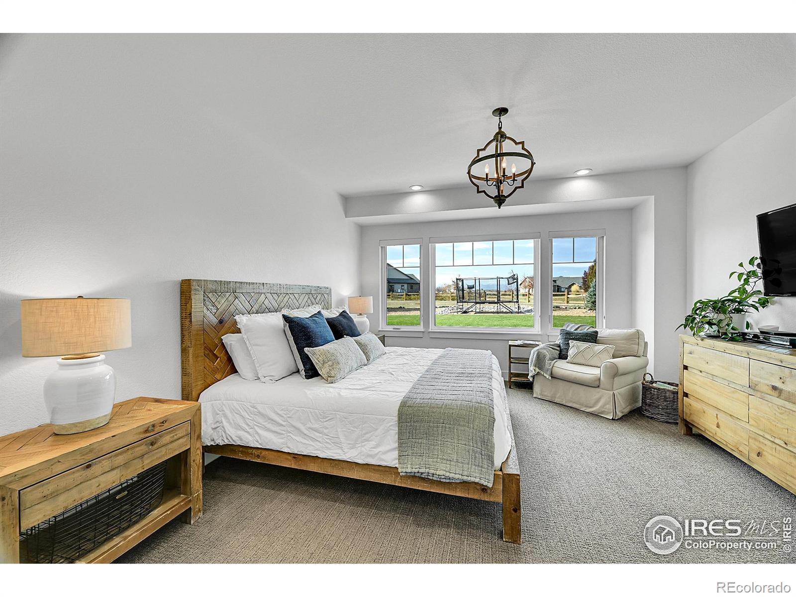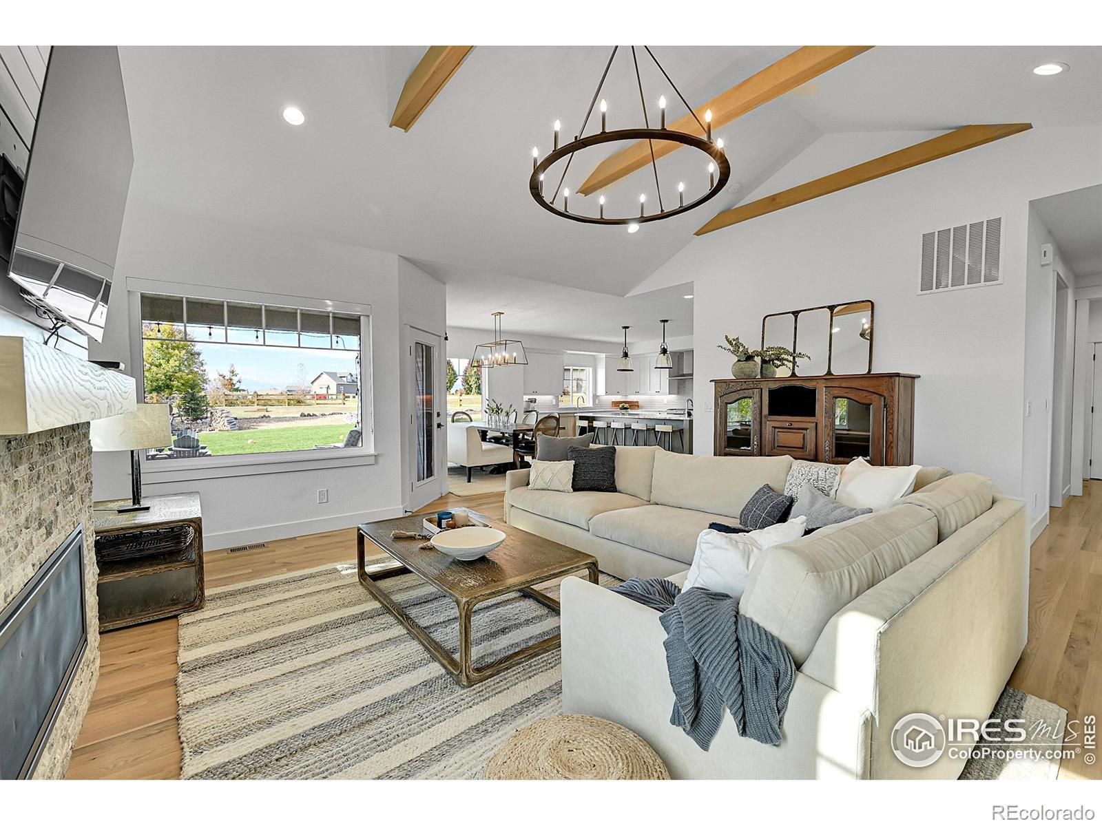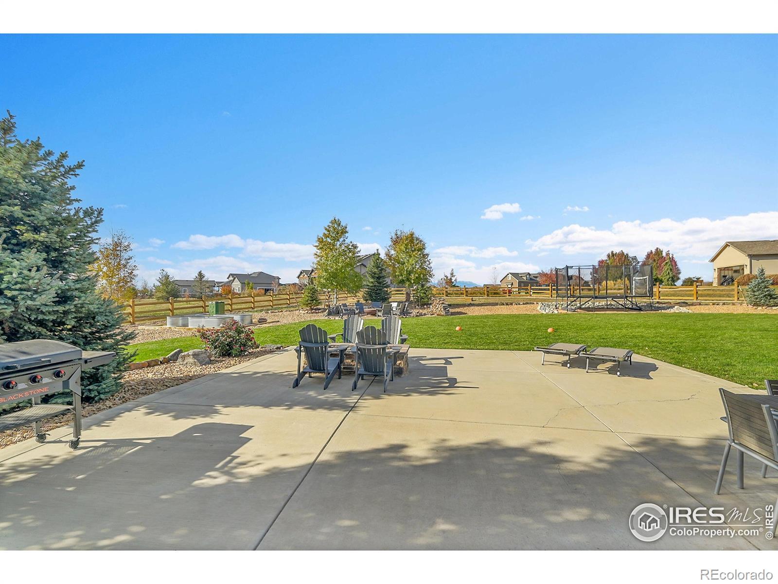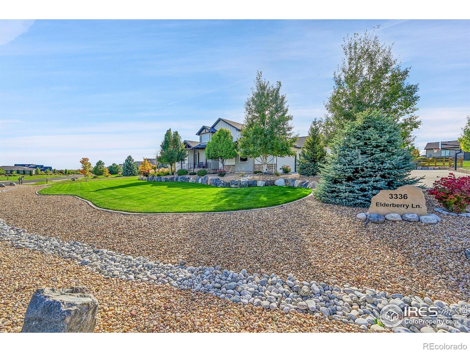 Experience the best of Colorado living in this custom-built retreat in the coveted Vale View community of Mead - where every home is unique, every lot is spacious, and every sunset feels like a painting. Perfectly positioned on a private 1.04-acre corner lot, this property offers the serenity of the foothills with unbeatable convenience - just 30 minutes to Boulder or Fort Collins and 45 minutes to Denver or DIA.From the moment you arrive, the home's meticulous landscaping makes a lasting impression. A curated mix of aspens, evergreens, and natural stone flows seamlessly to a private backyard sanctuary featuring a covered patio, two firepits, bocce ball, basketball court, horseshoes, raised garden beds, and wide-open lawn - all designed for effortless outdoor living and entertaining.Inside, modern elegance meets natural warmth with vaulted wood-beamed ceilings, a sleek linear fireplace, and rich oak floors throughout. The chef's kitchen shines with Bosch appliances, granite countertops, wine refrigerator, walk-in pantry, and a large island framed by windows that fill the home with light. The main-floor primary suite offers resort-level comfort with a five-piece bath, freestanding soaking tub, and generous walk-in closet, while upstairs you'll find two bedrooms, a Jack & Jill bath, and an inviting loft.Downstairs, a fully finished basement adds versatility with a large recreation room, custom media wall, two bedrooms, two full baths, home gym, and ample storage. The three-car garage features epoxy floors, EV charging, and backup battery power, complemented by owned solar panels and high-efficiency systems. With access to private neighborhood lakes and trails, no metro tax, and top-rated schools, this home captures the Colorado lifestyle at its finest.