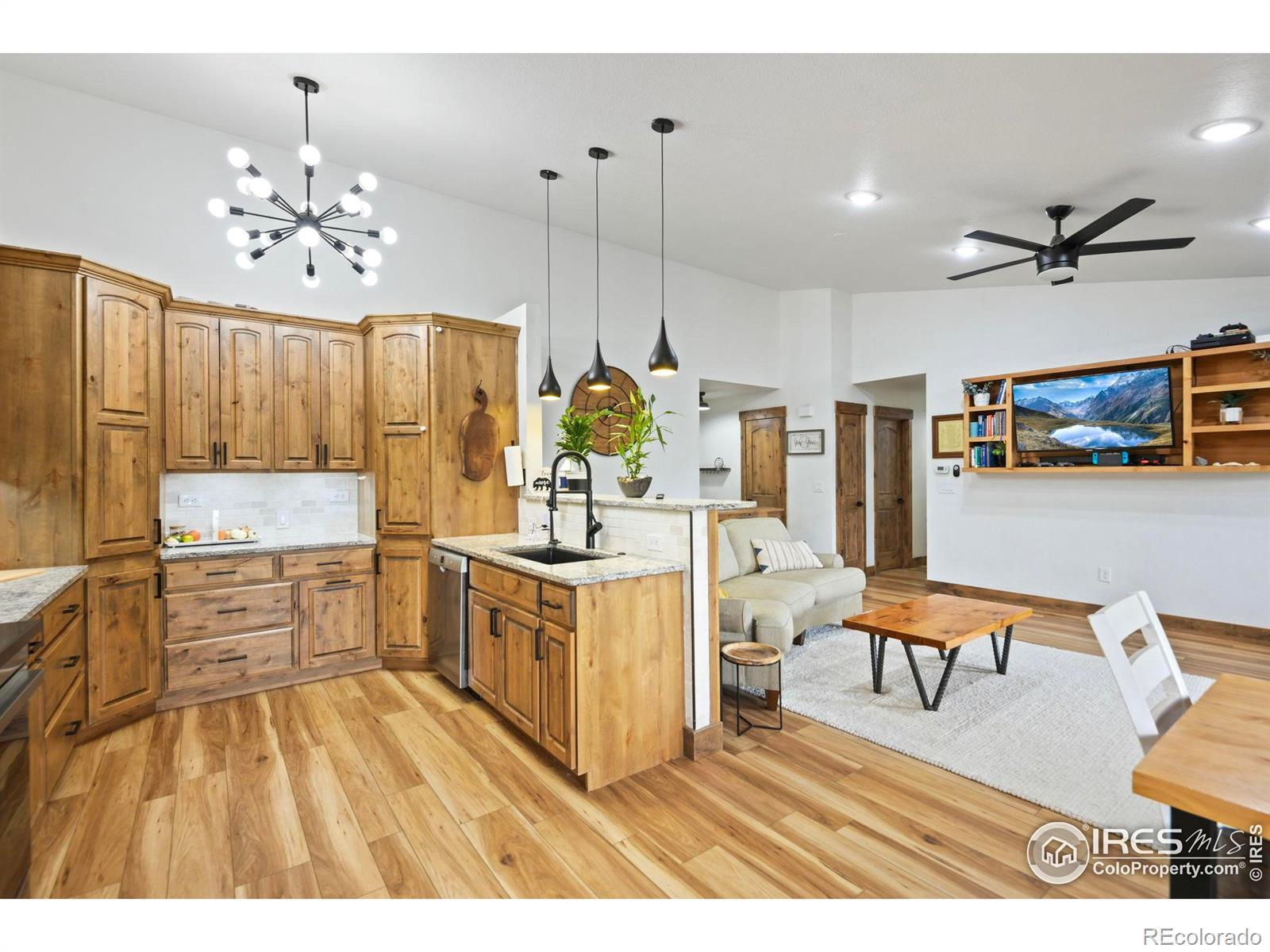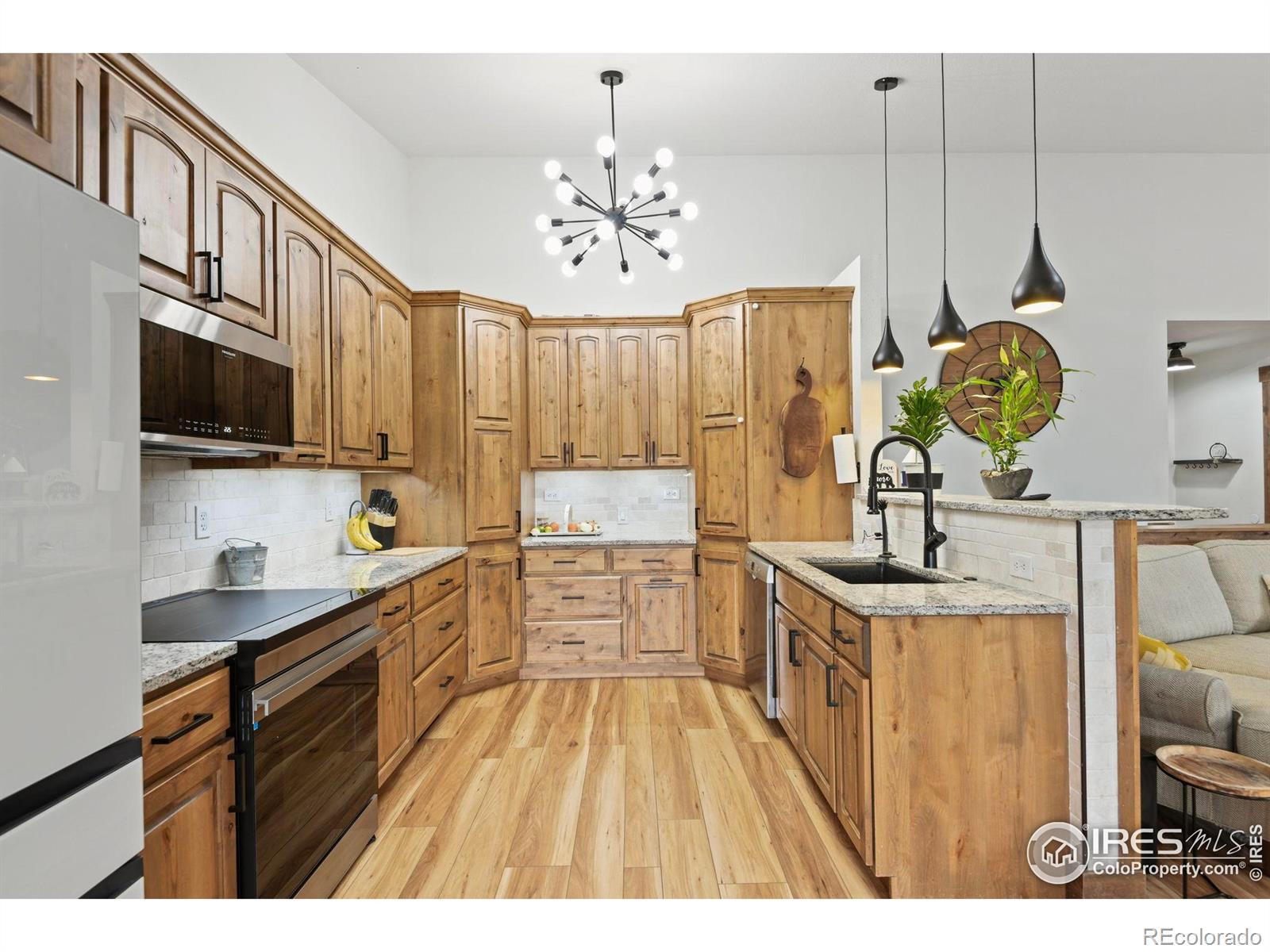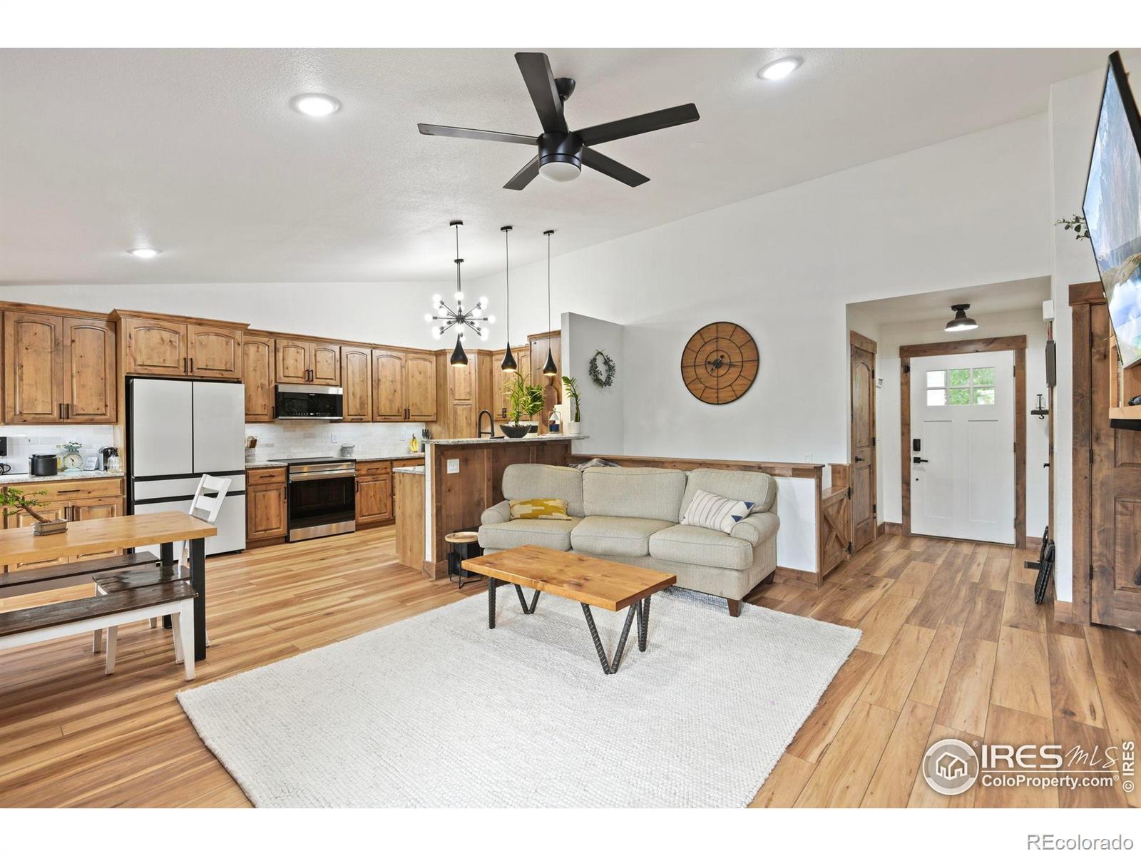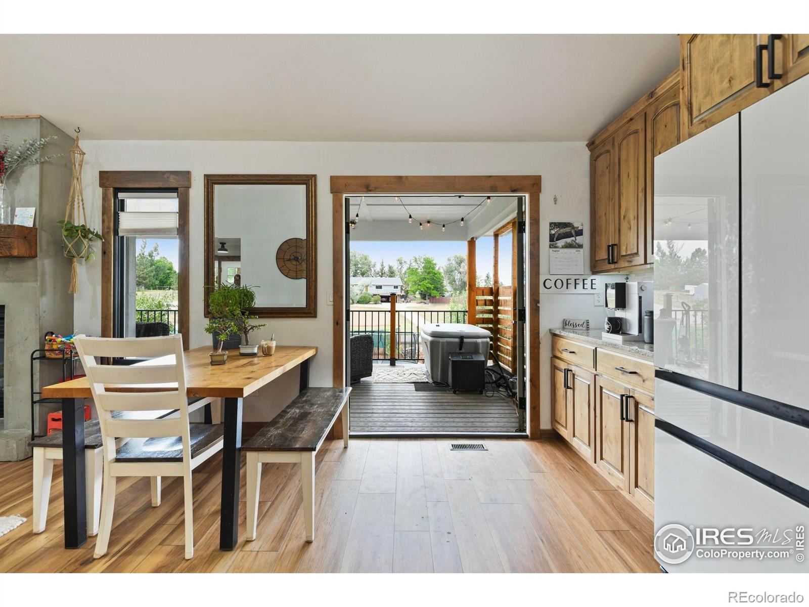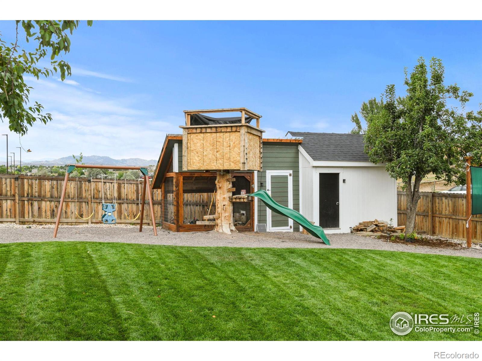 Discover your dream urban retreat! This spacious 5-bedroom, 3-bathroom homestead blends city convenience with sustainable living. Nestled in a vibrant neighborhood conveniently located in south Fort Collins, this property boasts a unique mix of modern comforts and homestead charm.The main level features an open-concept living area, a well-appointed kitchen complete with an induction range, state of art refrigerator and gorgeous knotty alder cabinetry. There are three generous bedrooms, including a primary suite with an en-suite bathroom. The stylish great room features luxury vinyl plank flooring, vaulted ceilings, designer lighting and a cozy gas fireplace. Step outside on to the new spacious deck and enjoy your backyard oasis, complete with a whimsical tree house, thriving grapevines, and productive vegetable gardens-perfect for farm-to-table living.The lower level is a standout feature, offering a fully equipped 2-bedroom rental unit with a separate kitchen, laundry, private entrance, and bathroom. This space has a proven track record as a cash-flowing rental, ideal for generating passive income or accommodating extended family. Additional highlights include a versatile outbuilding for storage, a workshop, or creative projects, and a chicken coop for fresh eggs daily. This property is a rare find for those seeking a sustainable lifestyle without sacrificing urban accessibility. This complete remodel was professionally done by Local Map Construction. Schedule a showing today to experience this one-of-a-kind urban homestead!