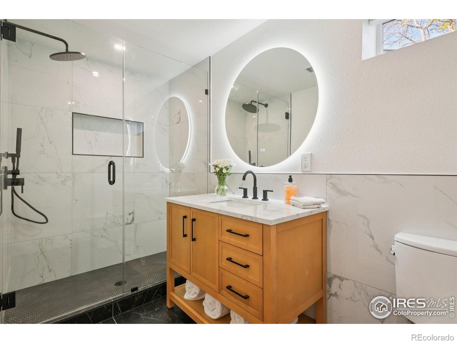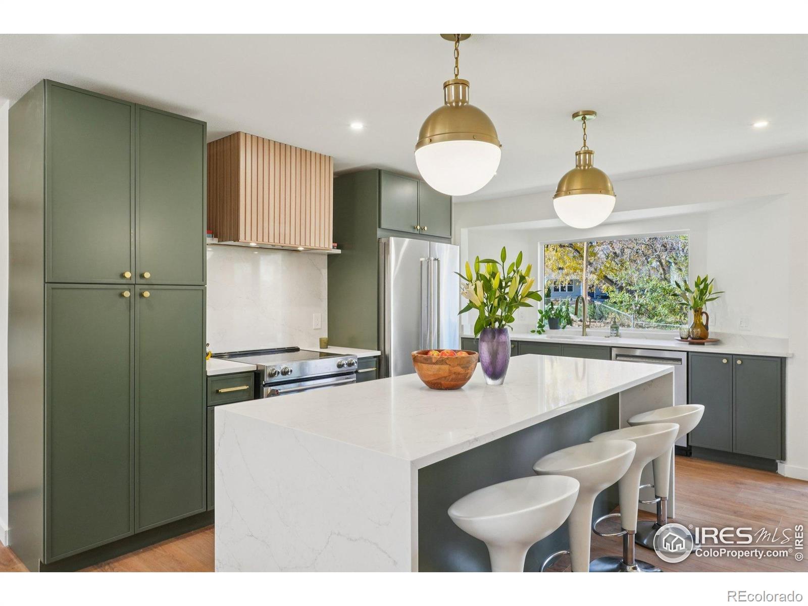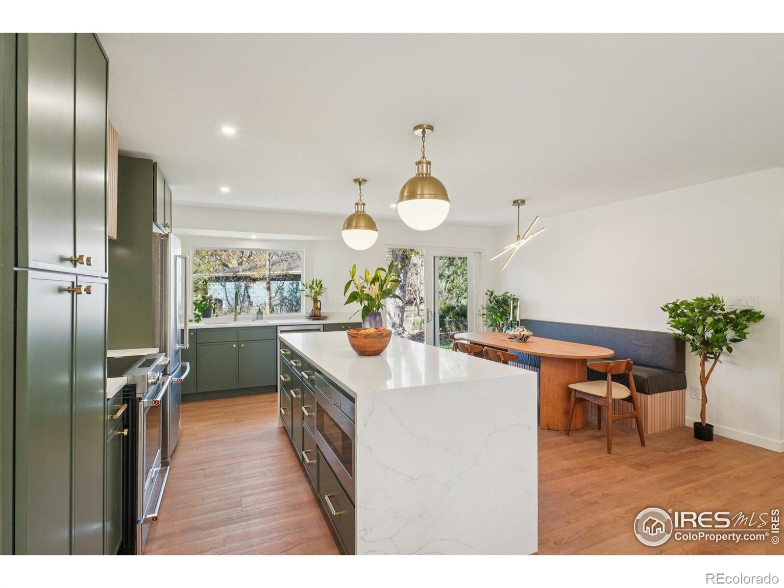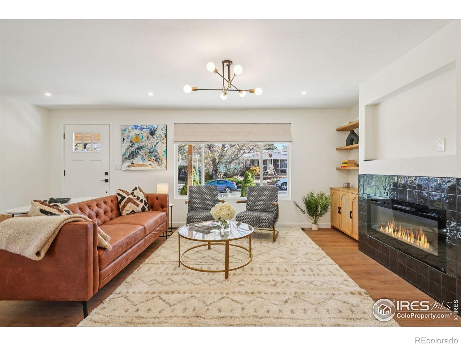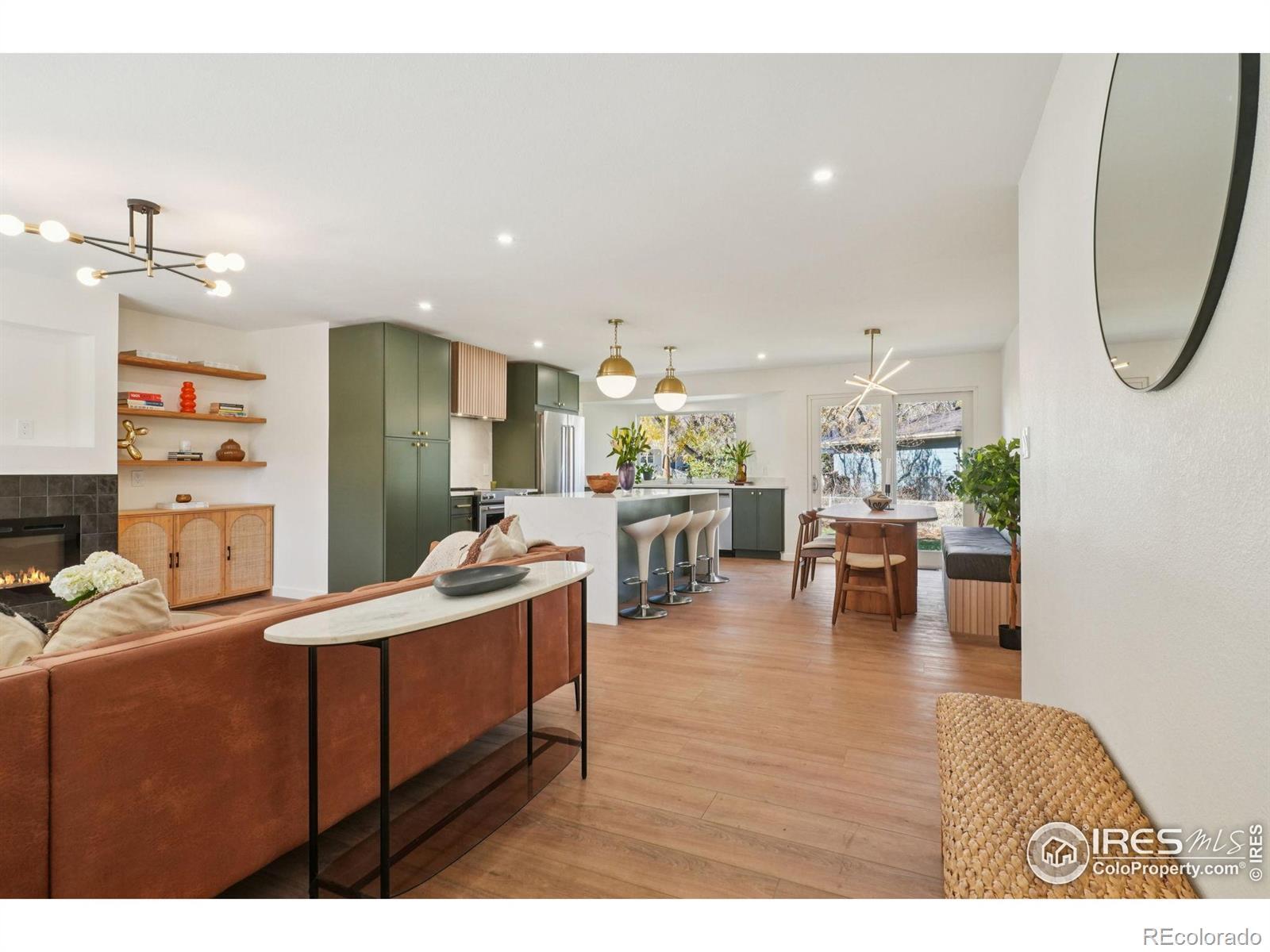 Fully renovated and move-in ready, this stunning 5-bedroom, 3-bath home offers 2,404 square feet of modern living in one of South Boulder's most sought-after neighborhoods. Every detail has been thoughtfully reimagined with style and quality-featuring an open floor plan, all-new flooring, fresh paint, designer lighting, and a showstopping kitchen with a quartz waterfall island, custom cabinetry, built-in banquette, and stainless KitchenAid appliances. The open-plan living room includes a custom-built fireplace and integrated shelving, creating a warm and inviting space for gathering. The main level also features a spacious primary suite with mountain views, a walk-in closet, and a beautifully updated ensuite bath, along with two additional bedrooms, a full bath, and a convenient laundry/mudroom with a brand-new stackable LG washer/dryer. The lower level offers flexible living space with a large family room with a wet bar, a brand-new full bath, two additional bedrooms, and an additional flexi space that can be used as an office, home gym, or guest space. Enjoy mountain views from the newly landscaped backyard, ideal for entertaining or relaxing, complete with a new irrigation system. A one-car garage with an EV charger and fully updated systems-including new HVAC, furnace, heat pump condenser, and heat pump water heater-provide comfort and peace of mind. The exterior has been completely refreshed with all-new windows, doors, James Hardie fiber cement siding, and a modern garage door. Tucked away on a quiet, friendly street beneath the breathtaking Flatirons, this home captures the very best of Boulder living-close to top-rated schools, Viele Park, the South Boulder Rec Center, hiking trails, and the Table Mesa shops and restaurants.