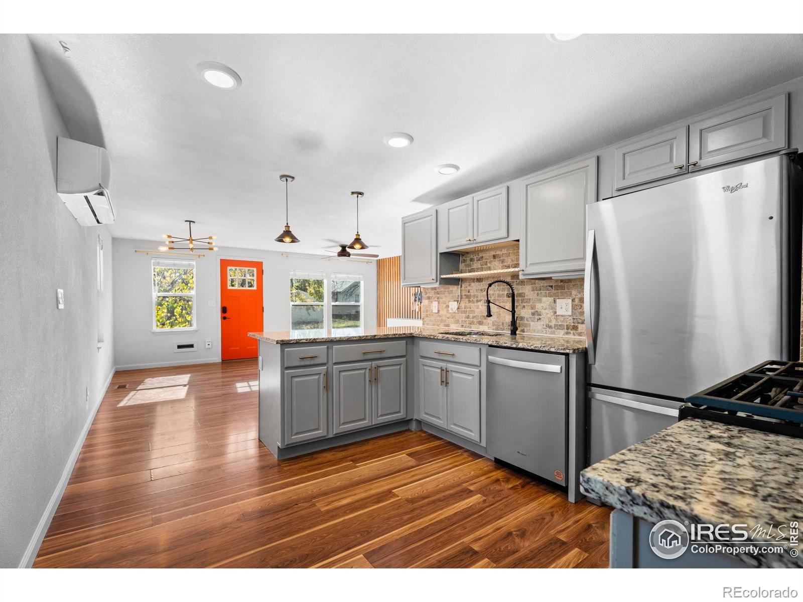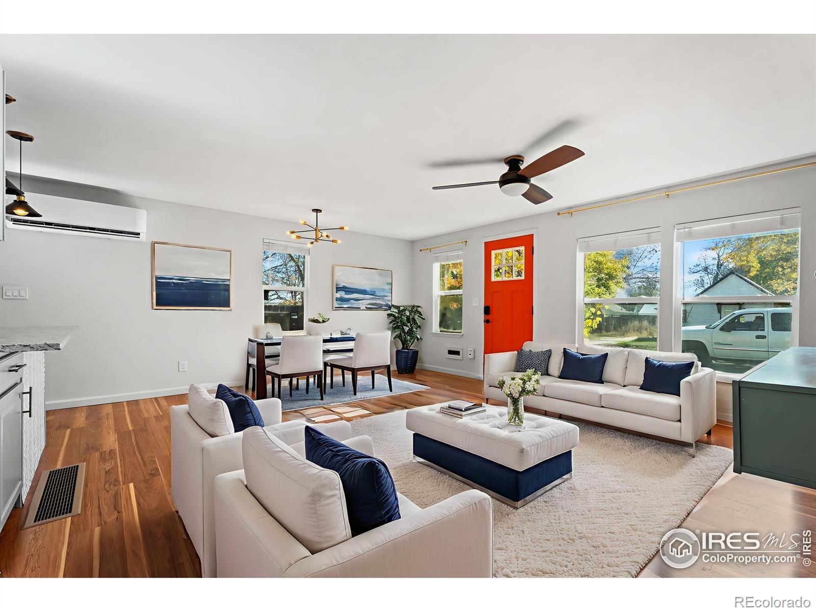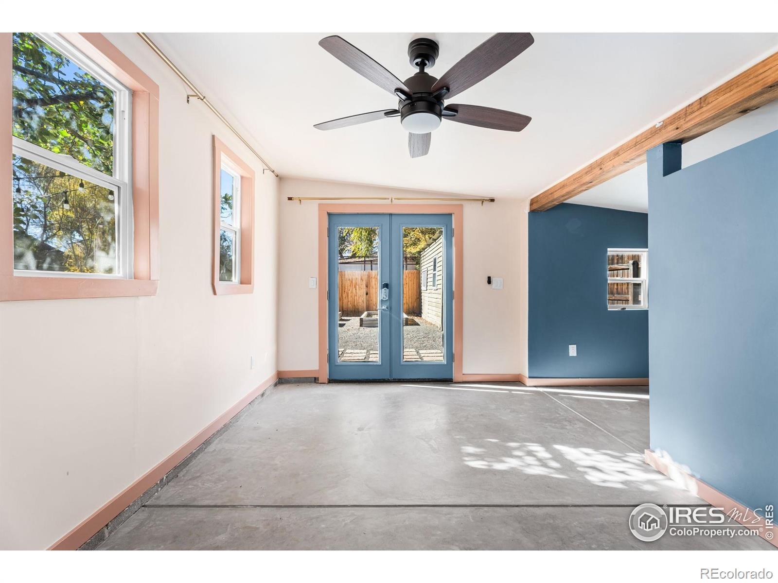 Charming Bungalow in Historic Downtown Loveland. Just minutes from downtown, this beautifully remodeled bungalow perfectly blends vintage character with modern comfort. Inside, an inviting open floor plan features three bedrooms, newer stainless-steel appliances, washer and dryer, hot water heater, updated cabinetry, and granite countertops that combine style and function. Custom finishes, accent walls, and upgraded fixtures make this home truly one of a kind. The outdoor spaces are just as impressive, with multiple outbuildings including a temperature-controlled building for flex space - ideal for guests, a home office, or a recreation room. The property has been completely refreshed with new landscaping and a sprinkler system designed for easy Colorado living and outdoor enjoyment. Relax in the sunroom off the oversized one-car garage, garden in the spacious backyard with alley access, or tinker in the workshop and garden shed - there's a space for every passion. A newly installed solar-powered electric gate provides secure driveway and garage access, enhancing privacy and adding an executive feel to this backyard sanctuary. The garage also features an upgraded electrical system, perfect for hobbies or toys. Mature apple trees and colorful flower beds add to the charm of this generous lot, offering the perfect blend of downtown convenience and relaxed neighborhood living. This home is a must-see!