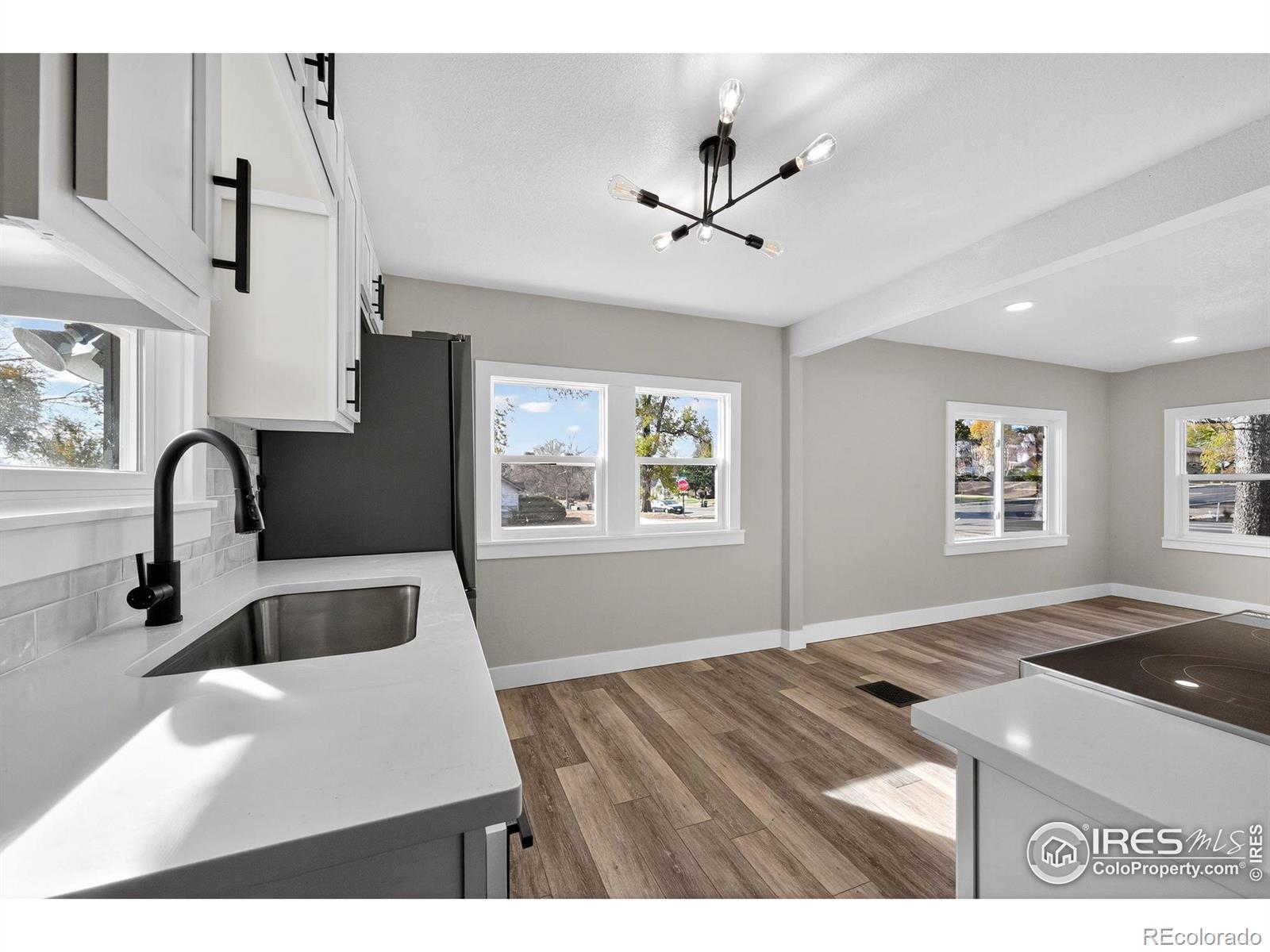 Charming renovated 4-Bedroom home near the University of Northern Colorado. Beautifully updated single-family residence just minutes from campus, this smartly designed 4-bedroom, 2-bath home has been thoughtfully renovated from top to bottom with modern finishes and is ready for move-in. Step inside to discover a bright and open living area featuring luxury vinyl plank flooring throughout the main floor, new carpet, freshly painted, and an abundance of windows that fill the space with natural light. Brand-new open kitchen with quartz countertops, white shaker cabinetry, stainless-steel appliances, and a stylish tiled backsplash. Both bathrooms have been completely upgraded with contemporary fixtures, elegant tile work, and designer lighting. Outside you'll find a private backyard - modest but perfect for relaxed evenings or a grill with friends. A detached garage with a private driveway offers off-street parking for extra convenience. Situated in the Arlington Park neighborhood just a short walk or bike ride to the university, this home puts you close to campus, shopping, downtown, and easy access to highway 85, while still offering a quiet retreat at day's end. Don't miss the opportunity to claim this move-in-ready gem that delivers style, convenience and true modern comfort.