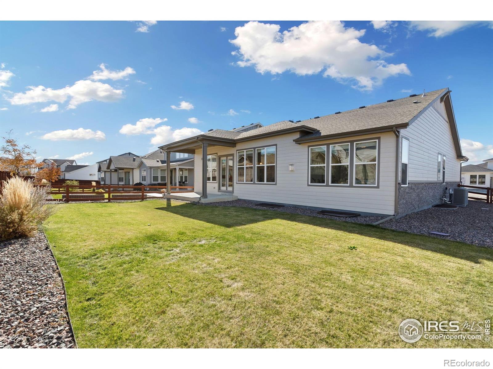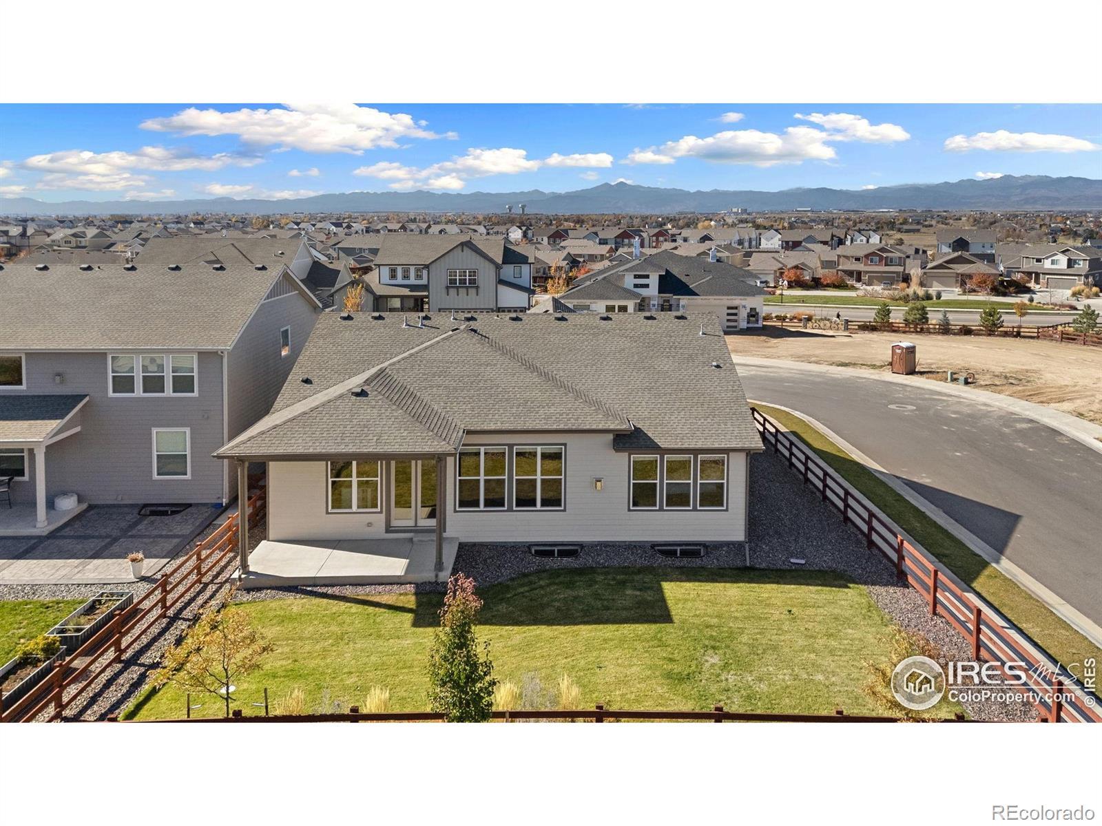 Remarkable ranch-style home with a finished basement, perfectly situated on a corner lot in Raindance's desirable Festival section! Designer touches shine throughout, including engineered hardwood floors in the main living areas and soaring ceilings that create a bright, open feel. The gourmet kitchen is a chef's dream-featuring a large island, KitchenAid appliances, and stunning New Venatino quartz countertops-ideal for cooking, gathering, and entertaining. The space flows seamlessly into the dining area, which opens to a covered back patio with gas grill hookup for effortless indoor-outdoor living. The inviting living room offers a cozy fireplace for warmth and ambiance, making it perfect for relaxing or hosting guests. A bright, front-facing office with mountain views provides an inspiring space for work or study. Retreat to the owner's suite, where the luxurious five-piece, spa-inspired bath features a MAAX Soma soaking tub, walk-in shower, walk-in closet, and New Venatino quartz countertops. The main level also includes two additional bedrooms with walk-in closets and mountain views, plus a full bathroom. The finished basement expands your living space with two more bedrooms, a full bath, a large recreation room, and a walk-behind wet bar-ideal for game nights or hosting guests. The finished three-car tandem garage, complete with a service door to the backyard, adds everyday convenience. The fully fenced backyard invites outdoor entertaining and relaxation. Located close to The Grainhouse, Hoedown Hill, and Raindance National Golf Course, this home truly offers the best of the Raindance lifestyle.