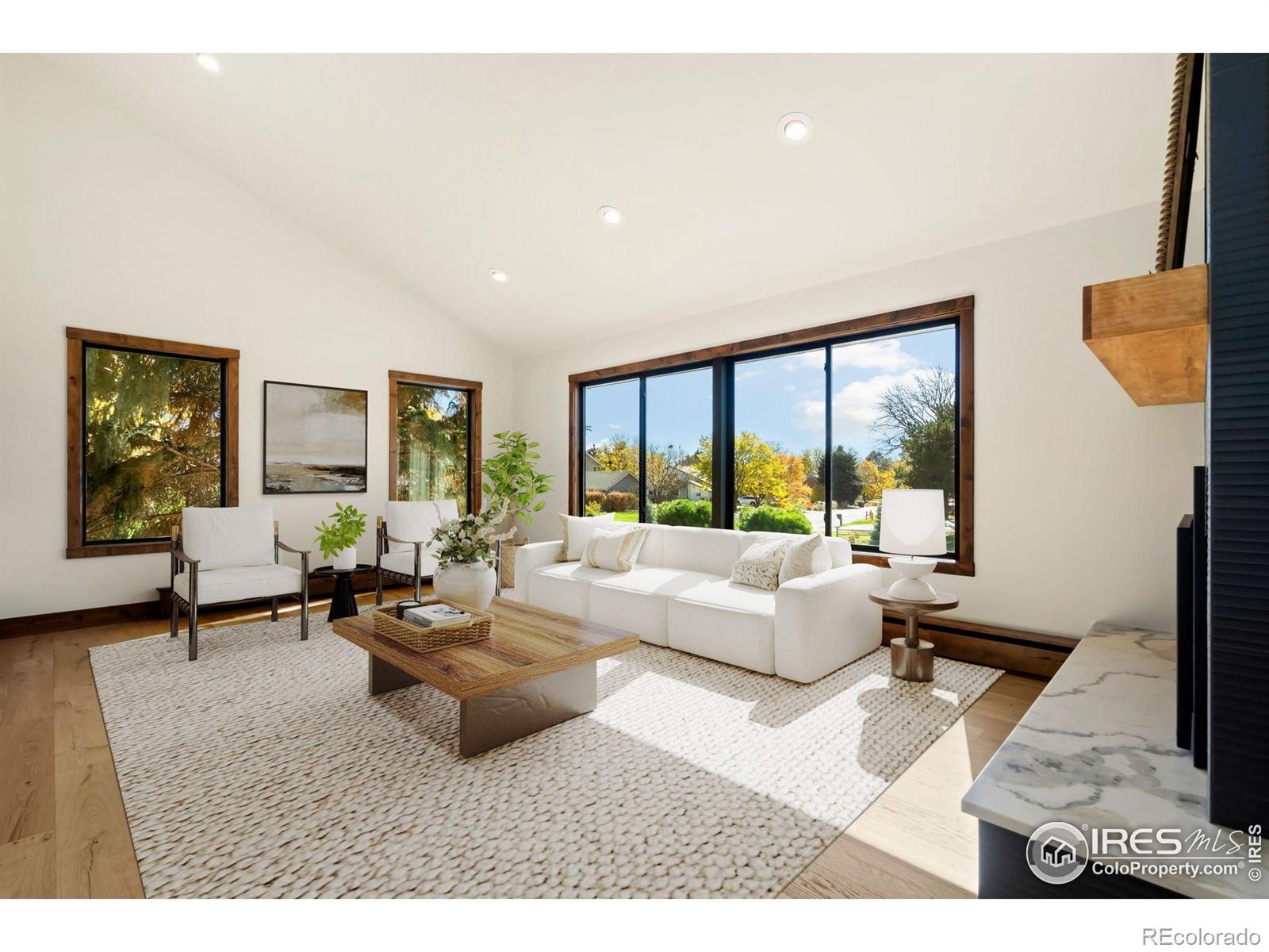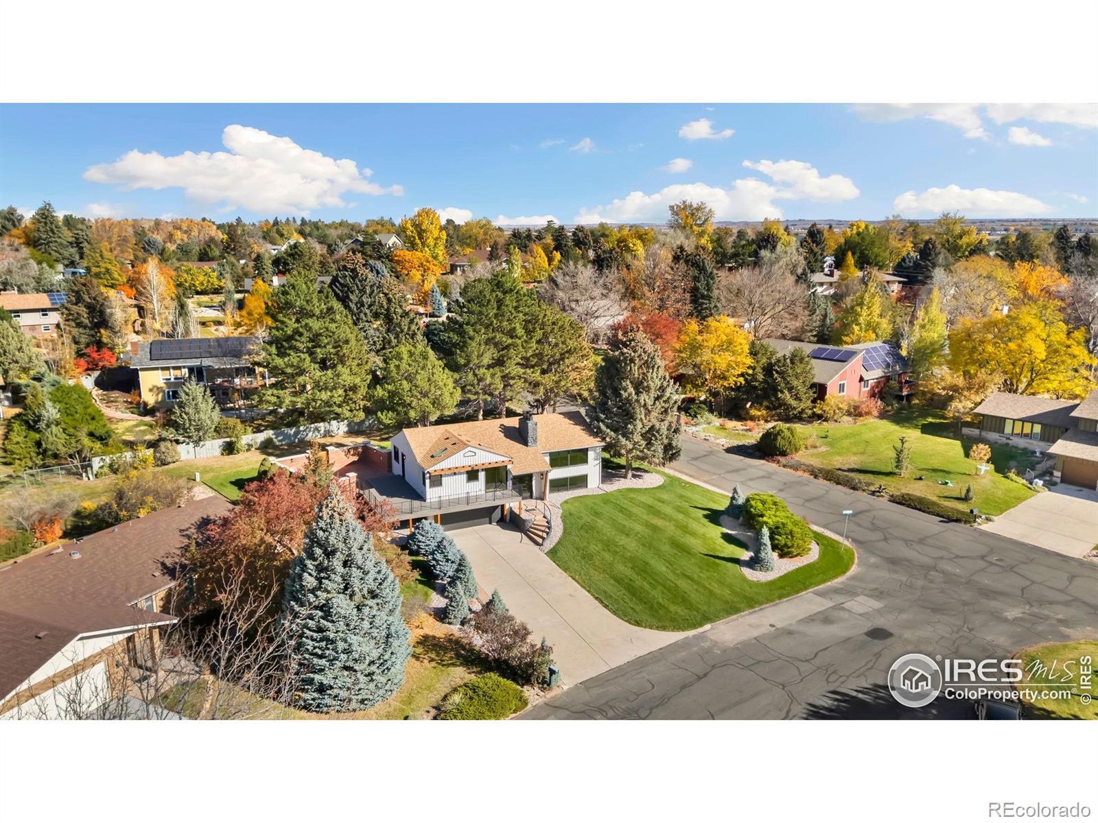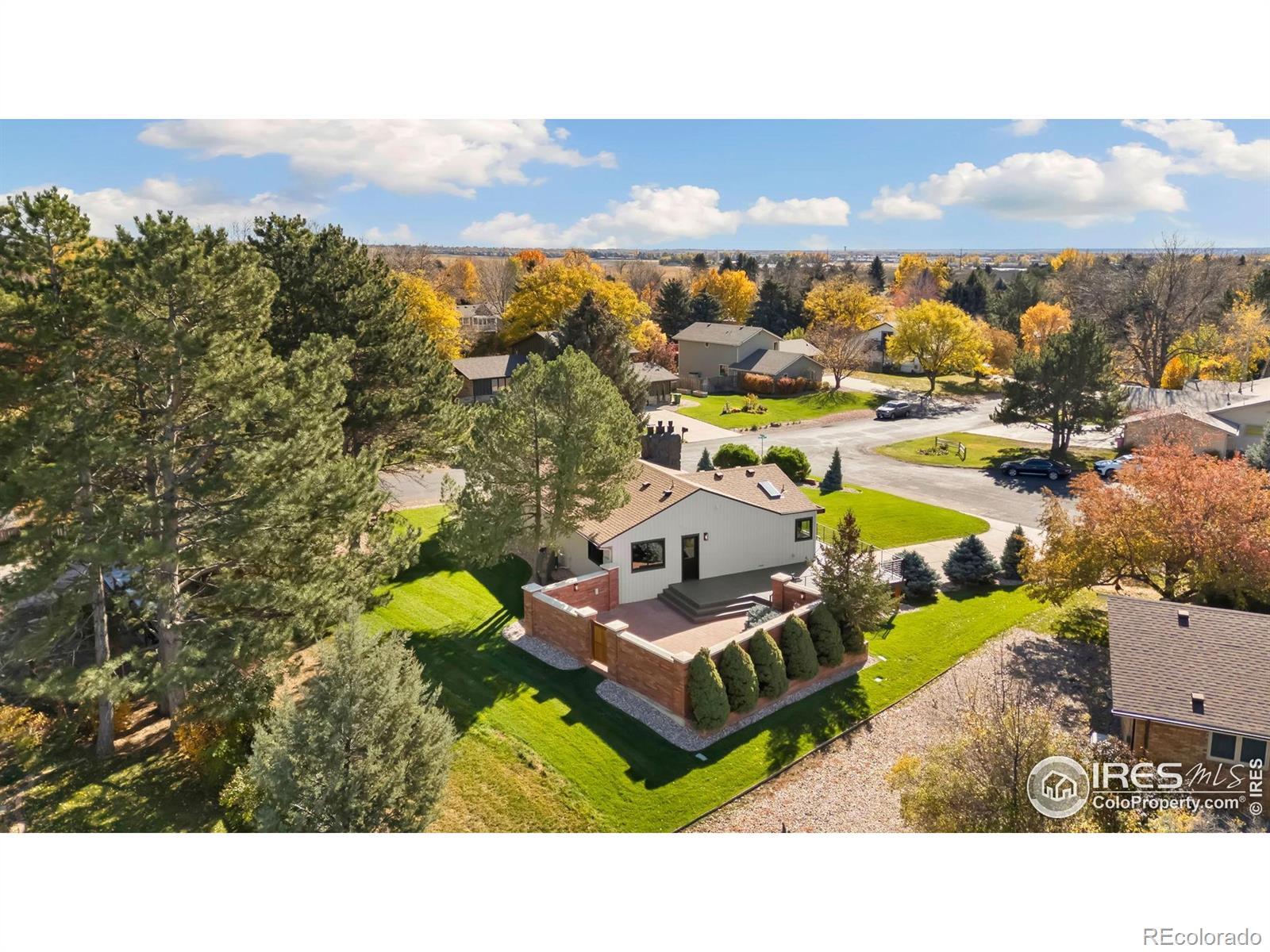 Our designer has done it again! TOTAL TRANSFORMATION IN NEDRAH ACRES! From the moment you step inside, you'll feel the difference in the beautifully updated interior and exterior spaces. The open, modern design with large living spaces is perfect for everyday living and entertaining. Featuring stunning Milarc cabinetry, sleek quartz countertops, high-end Thor appliances, and a fabulous peninsula island with built-in microwave - ideal for culinary creativity. The Primary Suite Retreat is a peaceful sanctuary complete with a spacious walk-in closet and a gorgeous private bathroom. 2 additional generous size bedrooms, each with ample closet space. There is a huge flex space that could also be used as a bedroom with the addition of a wardrobe.Three beautifully updated modern bathrooms feature high-quality finishes and fixtures for a luxurious feel. Enjoy two gas fireplaces that create a warm, inviting ambiance perfect for family gatherings and cozy nights in. A new wrap-around deck and brick-walled courtyard create the ideal setting for private outdoor living and entertaining. Nestled on a large, corner cul-de-sac lot, the home boasts lush new lawn, sprinkler system and beautiful landscaping that enhances its curb appeal. A two-car garage with an additional separate shop area & room for storage. Nedrah Acres - Is a peaceful and serene neighborhood offering a relaxed lifestyle, w/multi-use courts. Super convenient with accessibility to major roads for easy commutes to Fort Collins and the surrounding areas. Just minutes from shopping, dining, and recreational options, including beautiful lakes, parks, and trails, and golf for outdoor enthusiasts. NO METRO TAX.