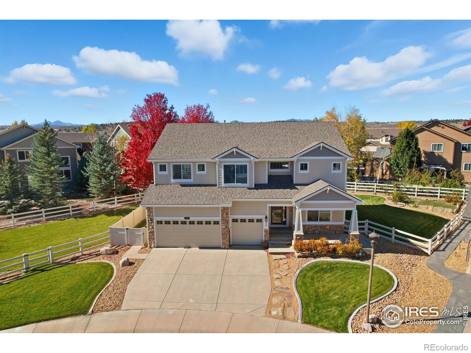 Welcome to this beautifully updated 6-bedroom, 4-bath home perfectly positioned at the end of a quiet cul-de-sac in Loveland's desirable Hunters Run neighborhood. This spacious and thoughtfully designed residence offers nearly 3,800 finished square feet. It has been refreshed throughout with new interior paint, new carpet, and newly refinished hickory hardwood floors on much of the main level. The inviting kitchen features warm knotty alder cabinets, abundant storage, a pantry, stainless steel appliances, a gas cooktop range/oven, and an excellent workspace that flows seamlessly into the open living and dining areas, creating a comfortable setting for everyday living and easy entertaining.Hand-troweled textured walls and quality finishes provide a custom feel throughout the home. The main level includes a bedroom and 3/4 bath-an ideal setup for guests, multigenerational living, or a dedicated office. Upstairs, you'll find four generously sized bedrooms, including a spacious primary suite with an attached bath, dual sinks, soaking tub, and a walk-in closet with convenient washer and dryer hook-ups.The finished basement features impressive 9-foot ceilings and offers an expansive rec room, an additional bedroom, and a full bath, creating a flexible space for movie nights, hobbies, fitness, or a private retreat. A central vacuum system adds convenience to daily upkeep, and the wrap-around yard provides space to play, garden, or unwind outdoors. The 3-car garage delivers ample parking and storage options for vehicles, gear, and equipment.This home also benefits from no metro district, keeping ownership costs lower, and includes an American Home Shield home warranty for added confidence and peace of mind. Located close to parks, schools, shopping, and Loveland's scenic bike path trails, this home offers exceptional value, quality, and comfort. Don't miss your opportunity to make 3365 Wray Ct in Loveland your next Colorado home.