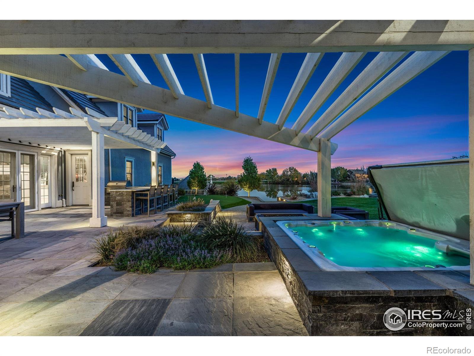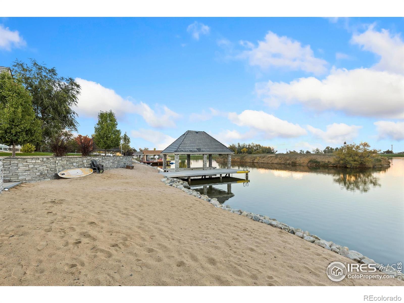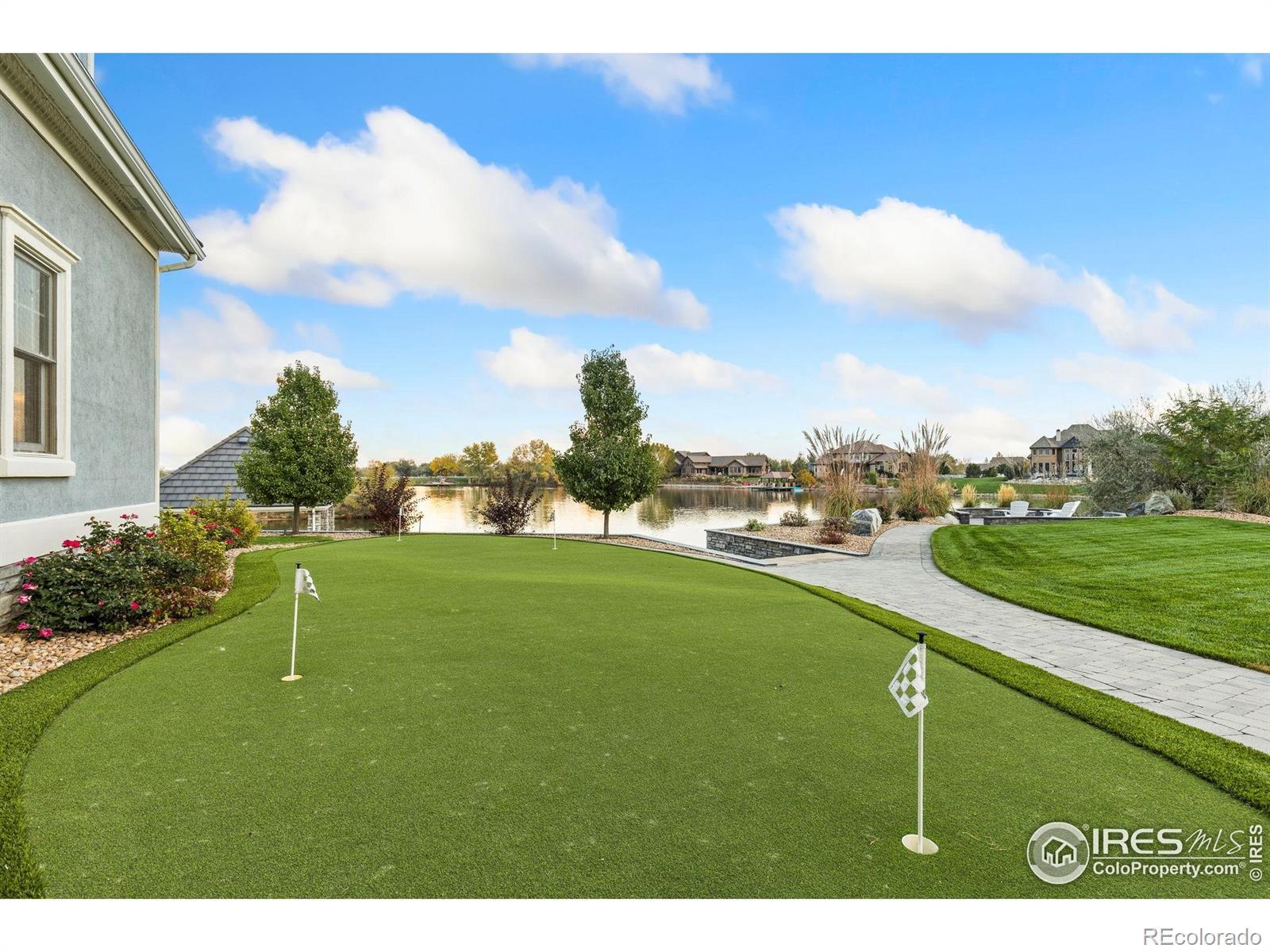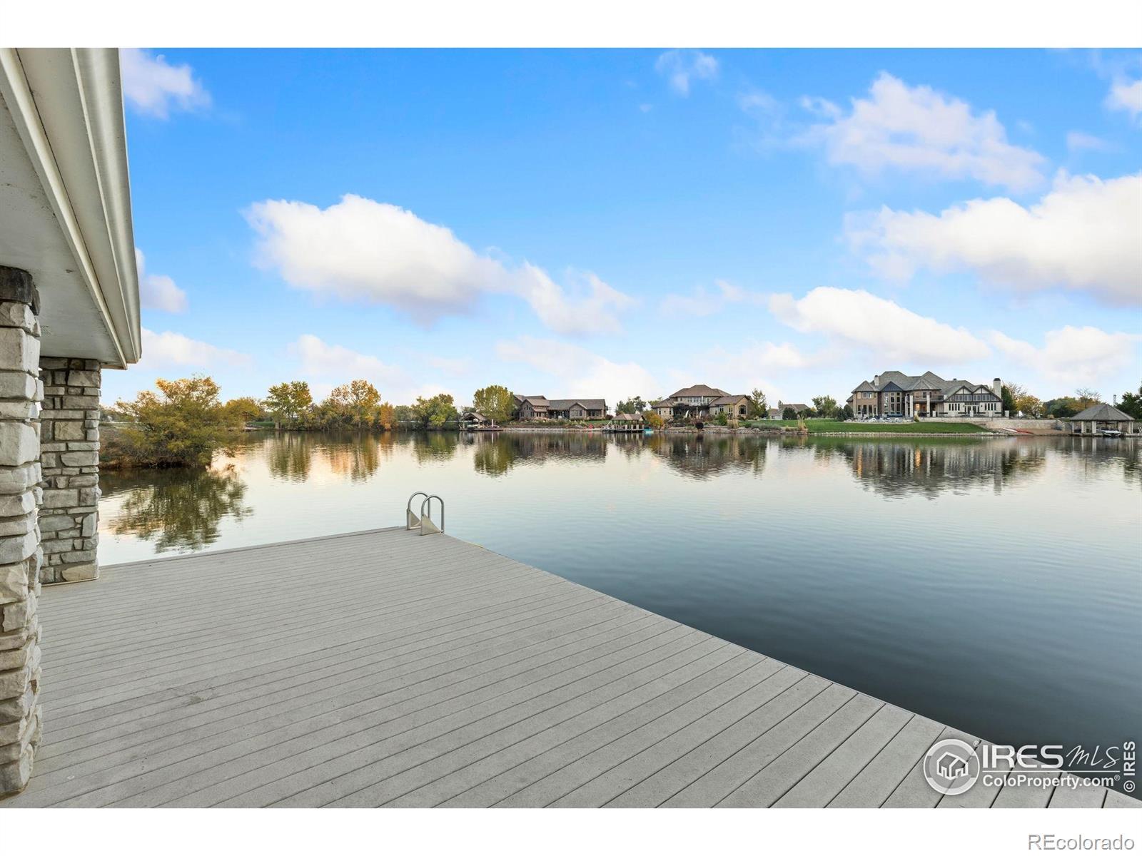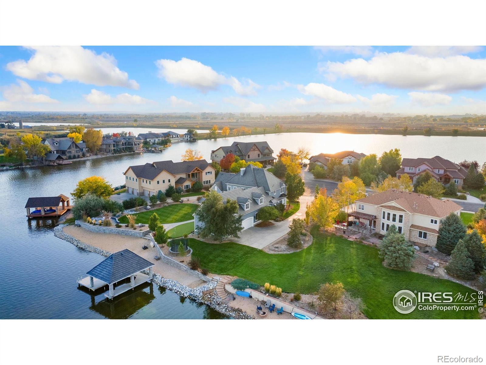 Welcome to your private oasis at 9904 Harbor Drive, Longmont, CO 80504. This exceptional lakefront residence is in a quiet cul-de-sac within a gated neighborhood, offering unparalleled access to a private lake and breathtaking mountain views. Step directly from your backyard onto the water for endless recreation, including water skiing, wakeboarding, paddle boarding, kayaking, swimming, and fishing right from your private swim beach. The shoreline was recently reinforced with cement to prevent erosion. The outdoor space, with a freshly painted exterior, is an entertainer's dream, including a private boat house with a boat lift. The expansive back patio features a full outdoor kitchen with a built-in Coyote grill, outdoor refrigerator, and a hose bib with hot and cold water. Unwind with mountain views and sunsets from the two fire pits-one wood-burning and one gas-or the built-in hot tub and a dedicated putting green. The heart of the home is the upgraded chef's kitchen, designed for culinary excellence with a 60-inch Wolf range and a Sub-Zero refrigerator. A spacious walk-in pantry offers ample storage, and the open floorplan connects the kitchen to the living and dining areas. Retreat to the luxurious primary suite, a sanctuary with a spacious walk-in closet and a spa-like five-piece bathroom. The upstairs level offers robust functionality with three additional bedrooms, a dedicated full gym, and a spacious playroom that could be converted into a theater room. Further practicality comes with a large 4-car garage and a long private driveway, offering abundant space for vehicles and guests.